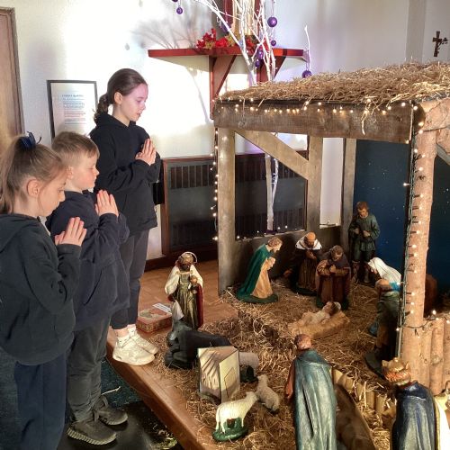 This morning after Mass, we stayed behind to say a prayer at the Crib.