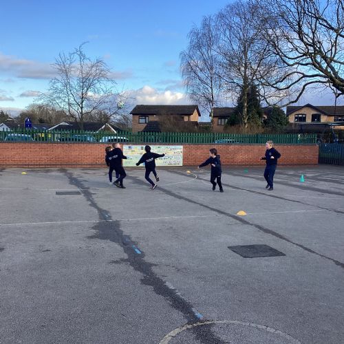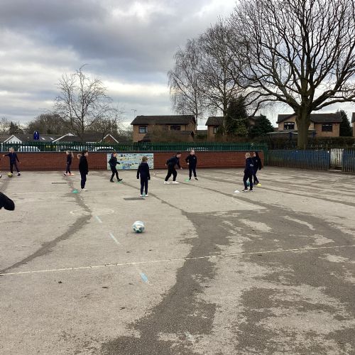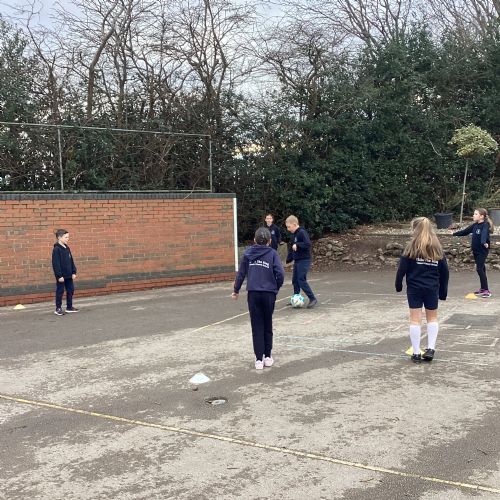 This afternoon, Fintan, a past pupil, led our football session.  He taught us a new warming up game.