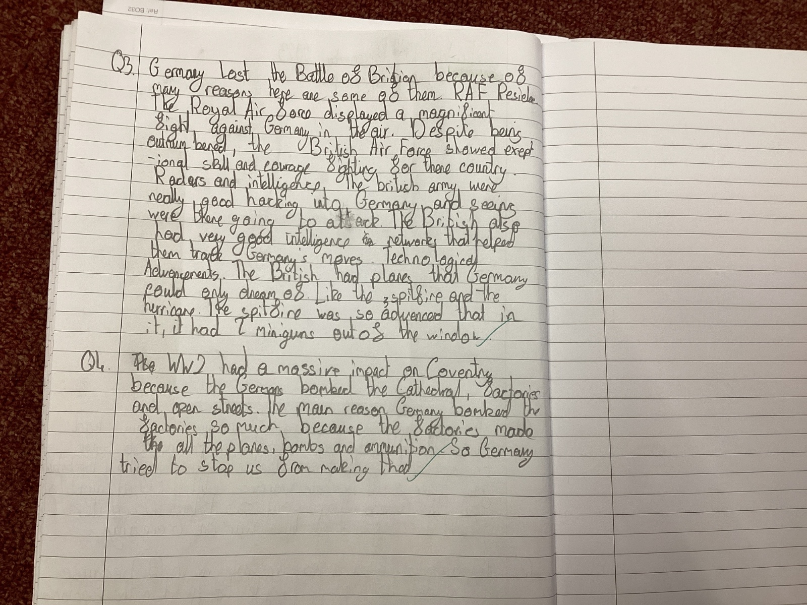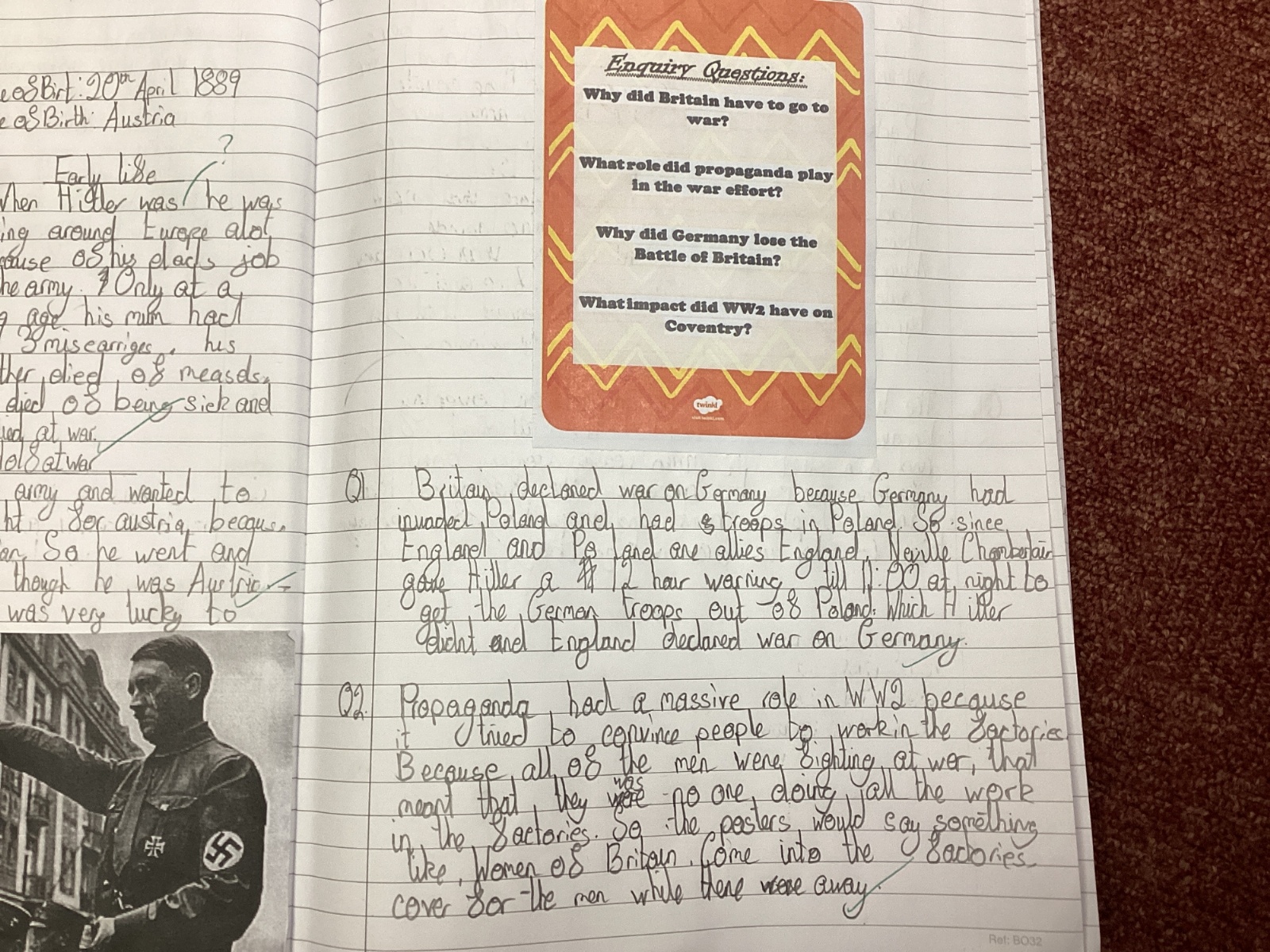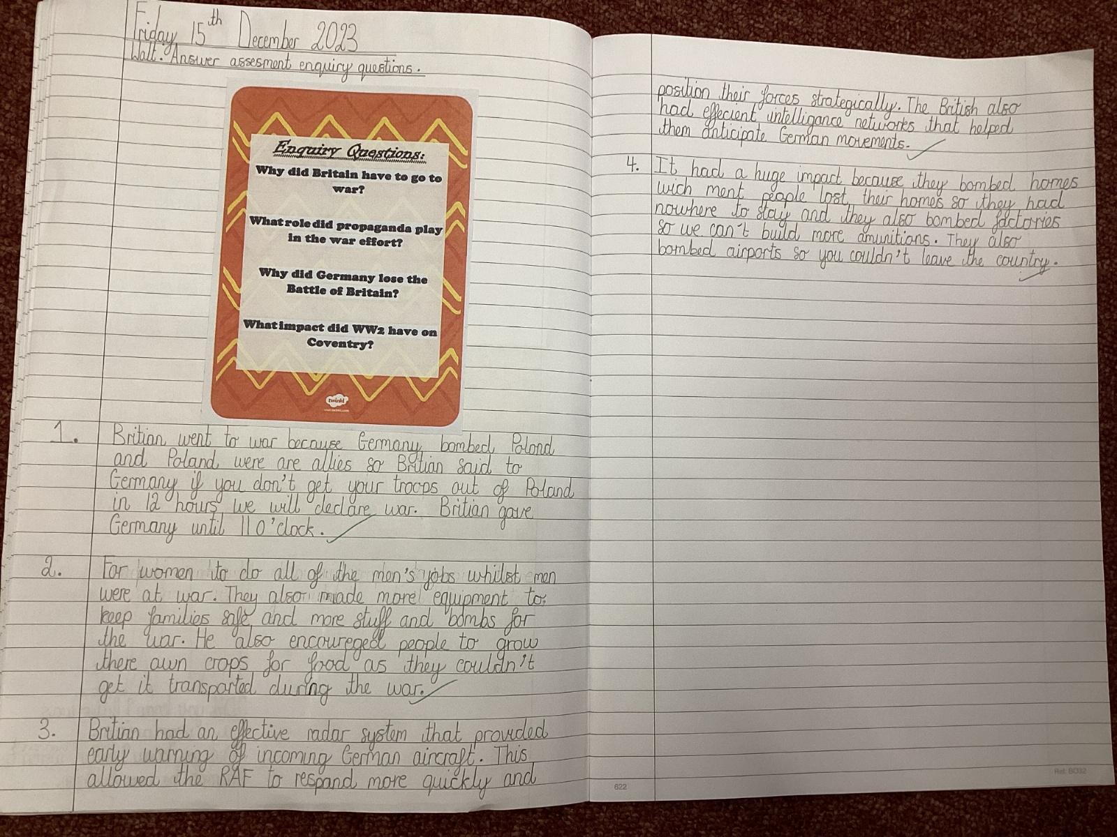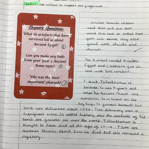At the end of our topics we answer some enquiry questions on what we have learnt. Here is some of our learning examples...