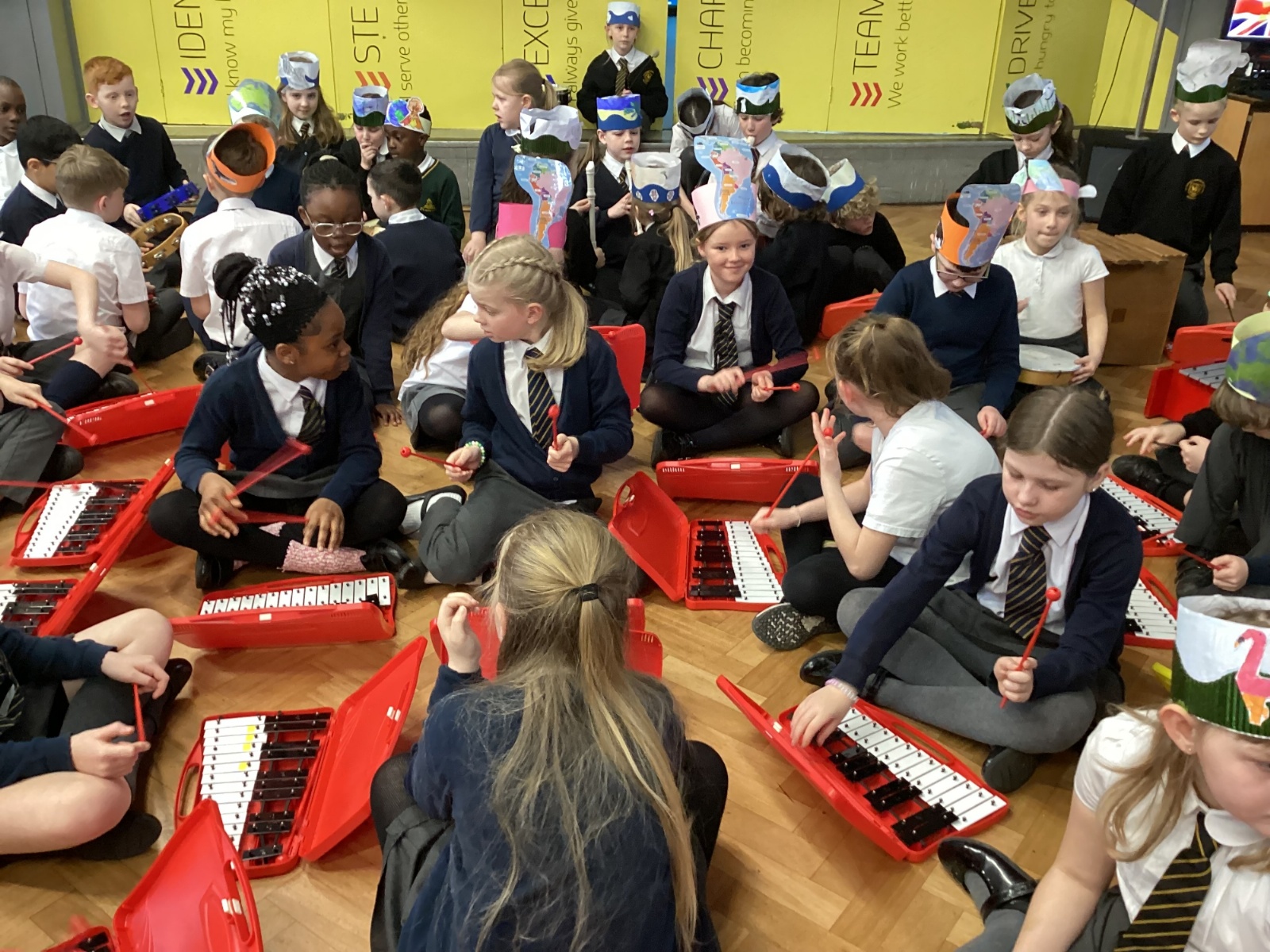 This morning, we all got on a coach and went to Saint John's for our Mousike Ensemble morning.  We sang and played instruments with the other school.  Our ditty was all about the continents. We were brilliant!