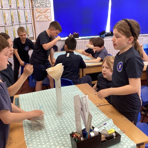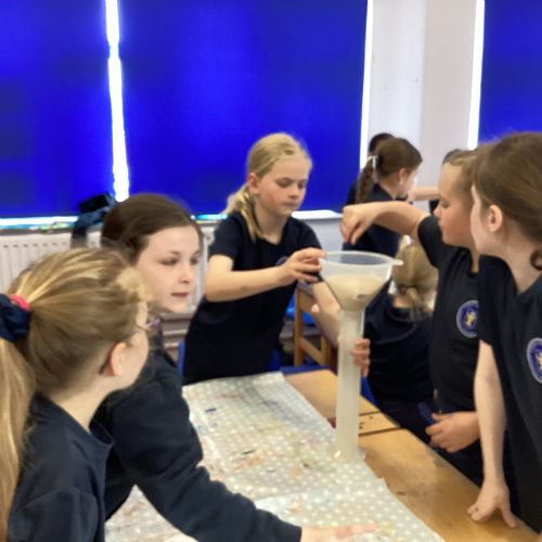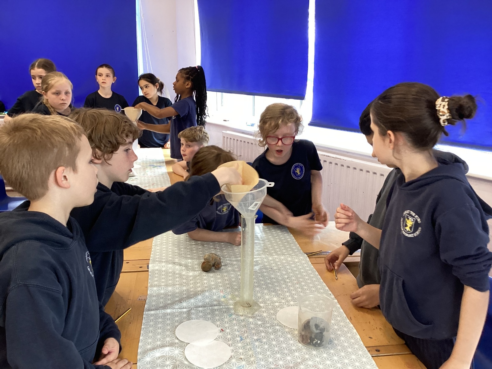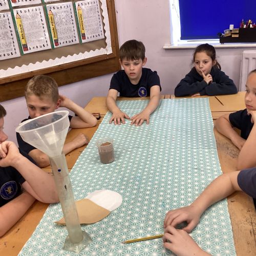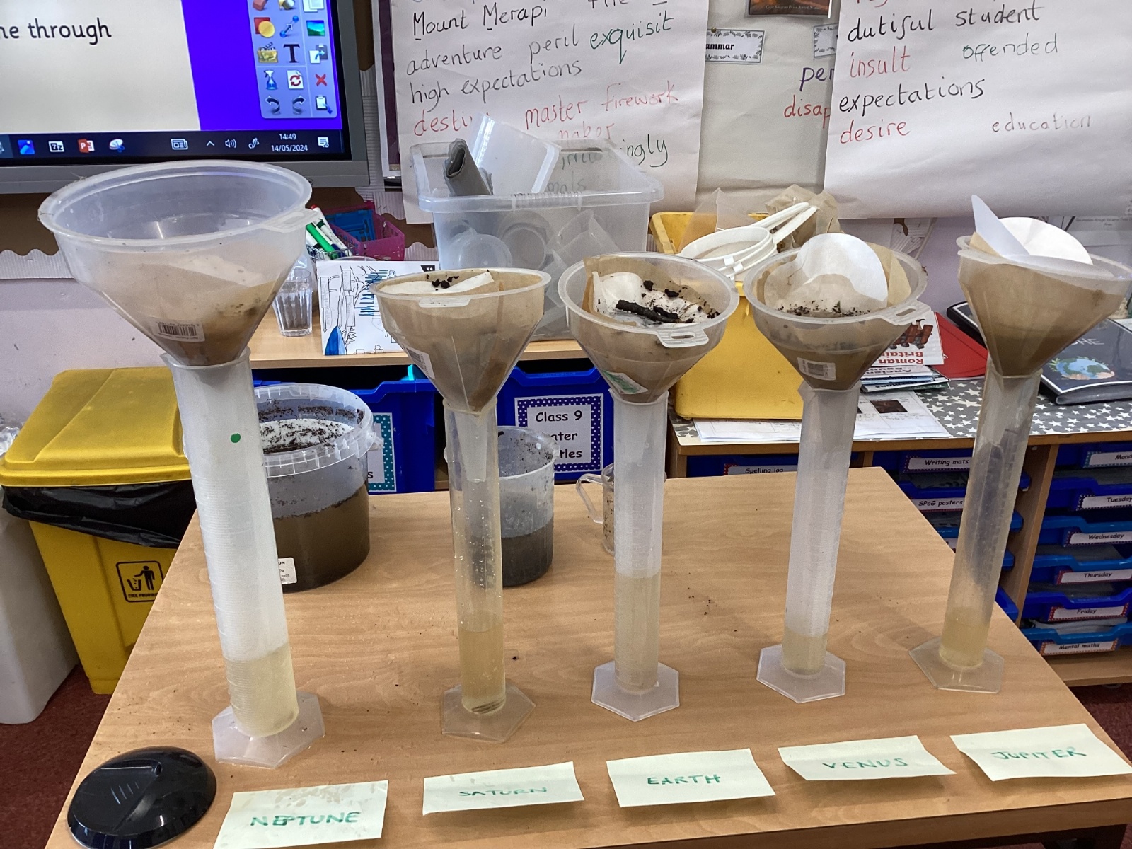 This afternoon, we set up experiments to see how we can clean dirty water.  We gathered our materials and set up our experiment.  Our water was much cleaner!
