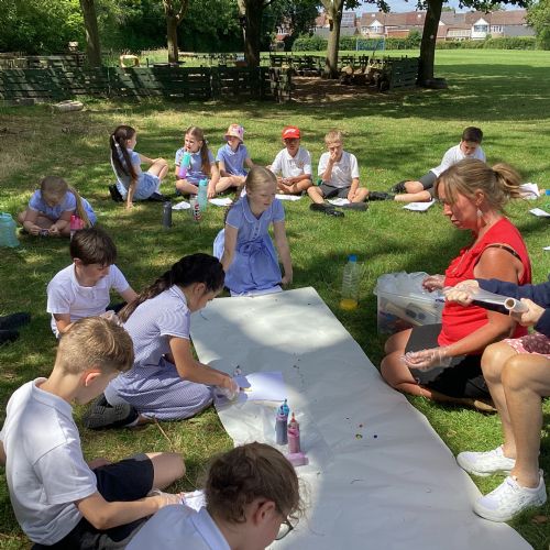 Year 4 had a super time tie dying on the field. Lots of different colour blends and techniques. Next step sewing! Wish us luck.