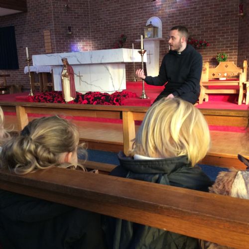 Nursery visited the church to find out about Fr Benedict's role within our community. We practised making the sign of the cross using holy water.