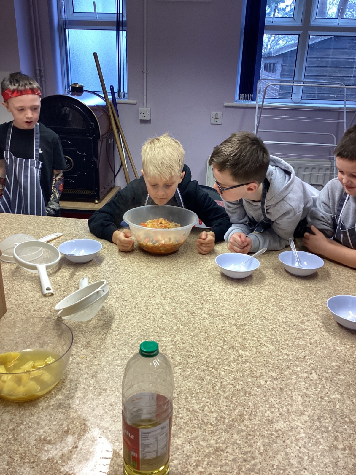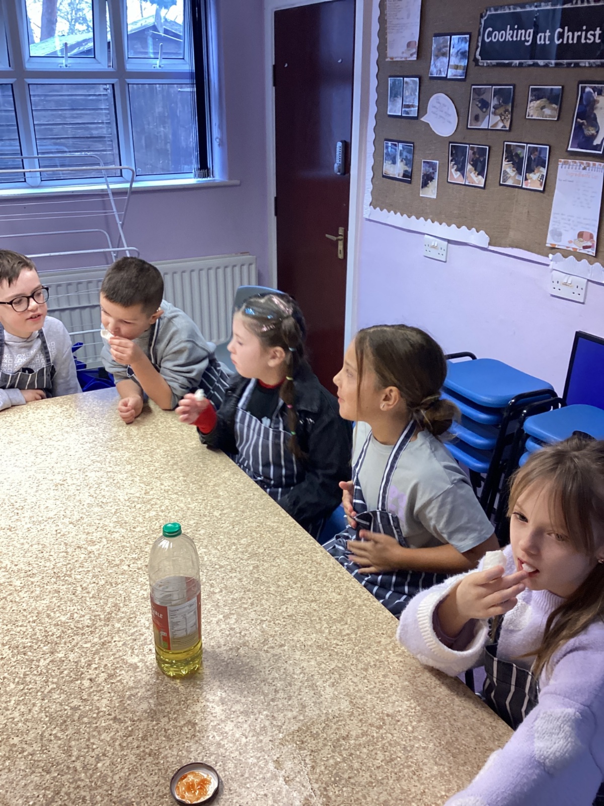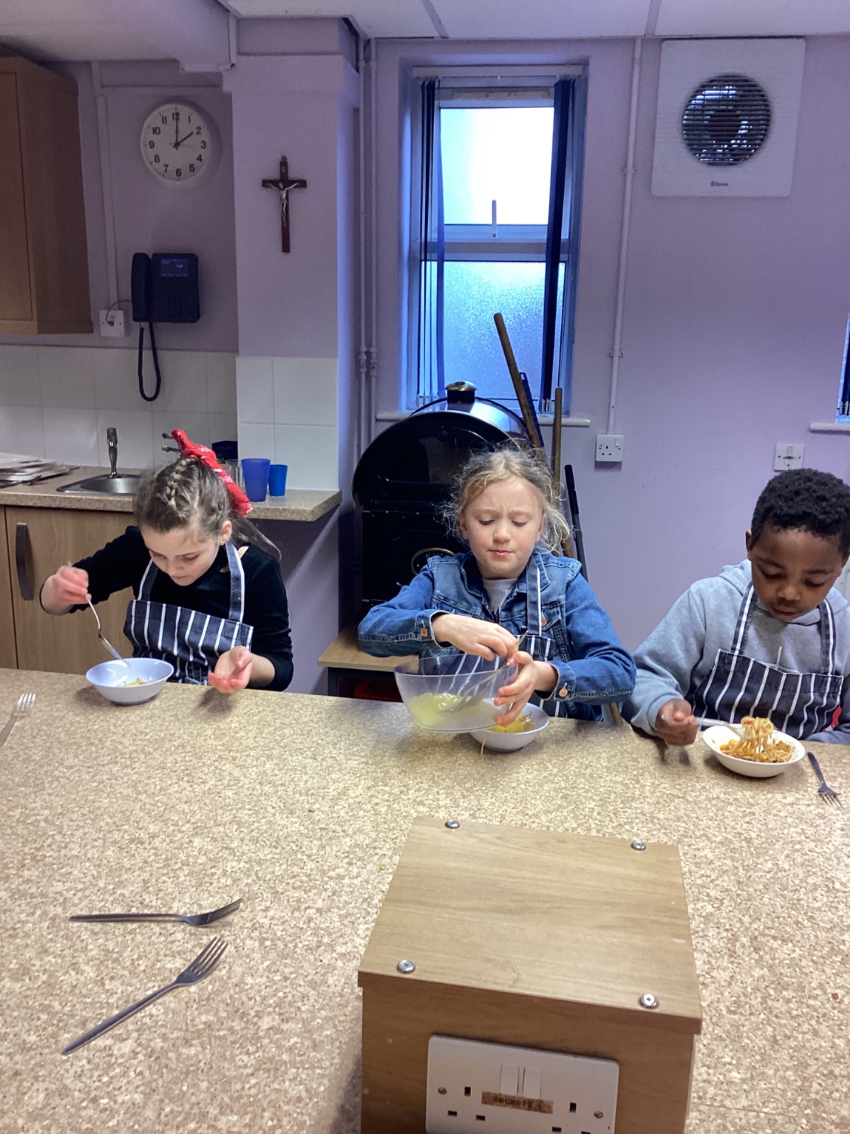 Today we completed orienteering in forest school, cooked a vegetable stir-fry in cooking and created artwork based on the birth, death and ascension of Jesus Christ.