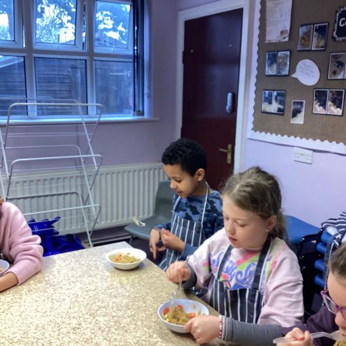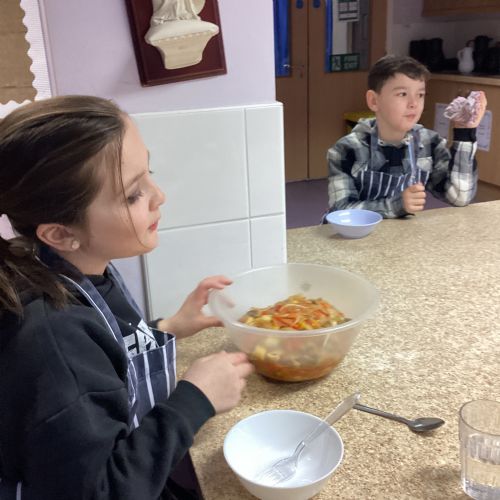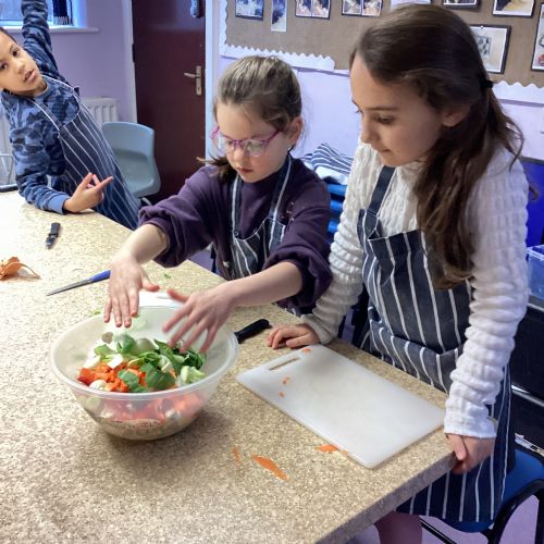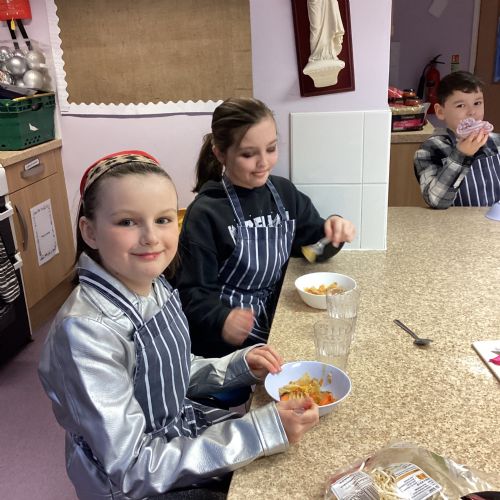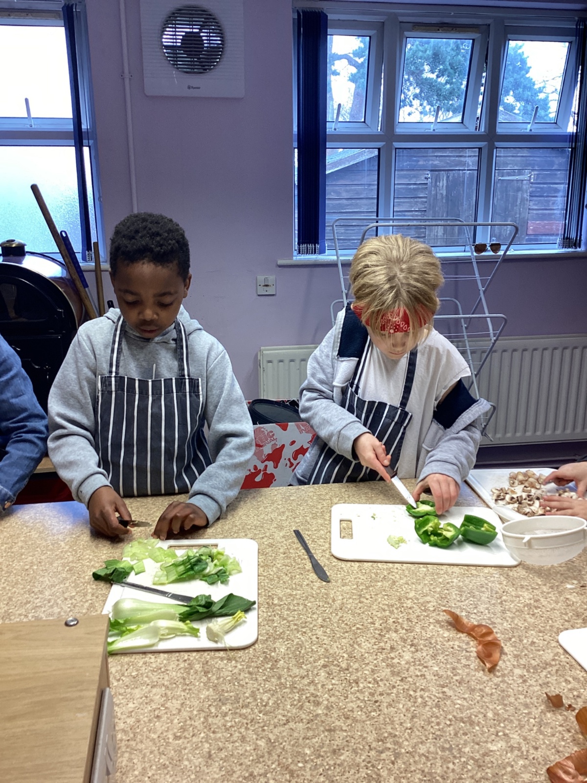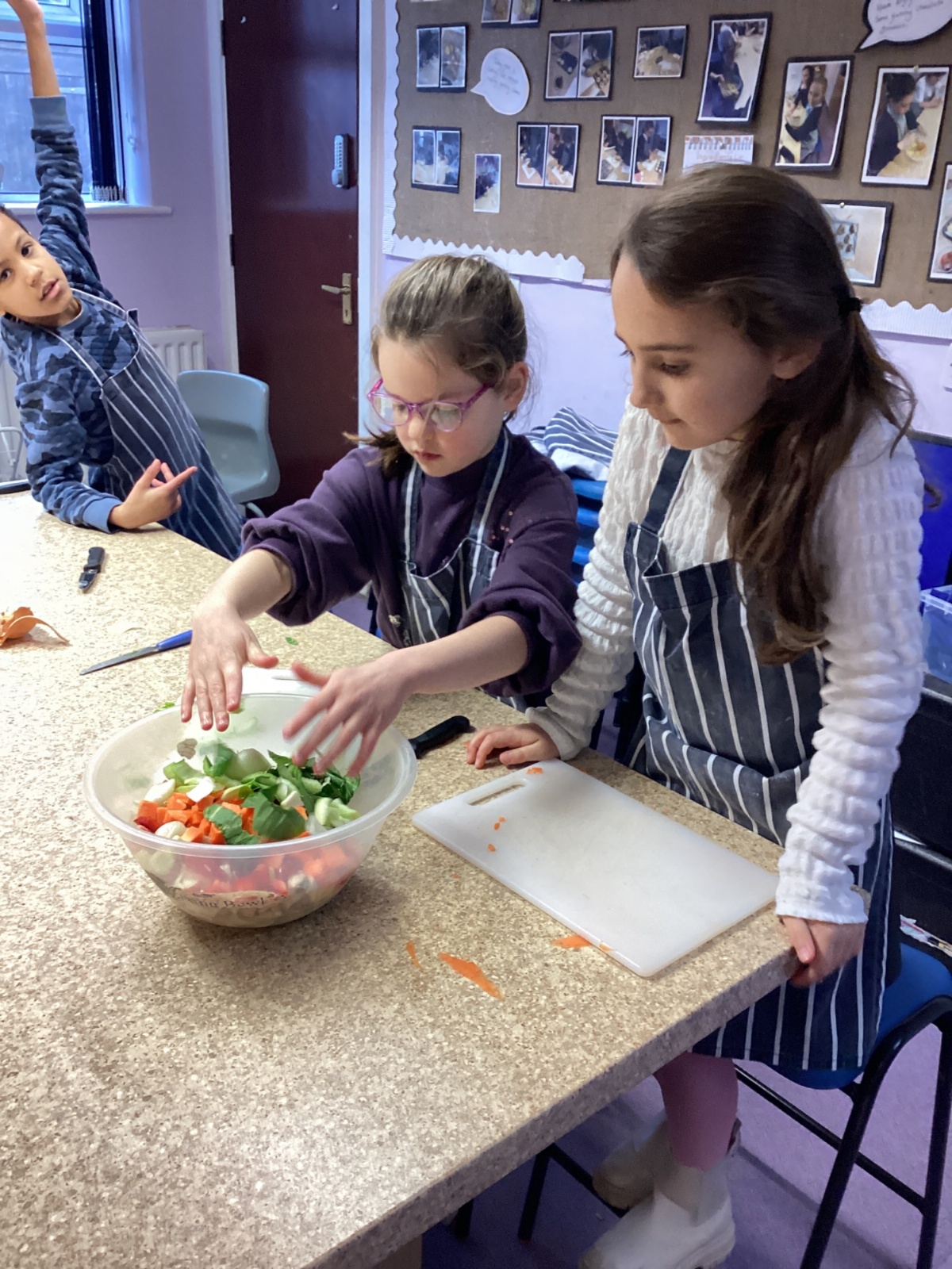 Today we completed orienteering in forest school, cooked a vegetable stir-fry in cooking and created artwork based on the birth, death and ascension of Jesus Christ.