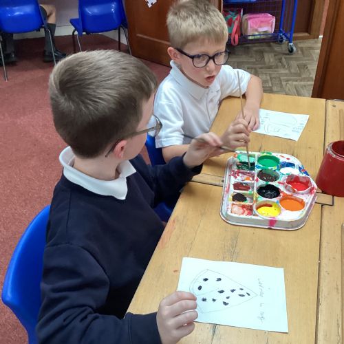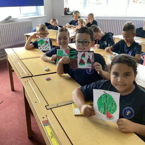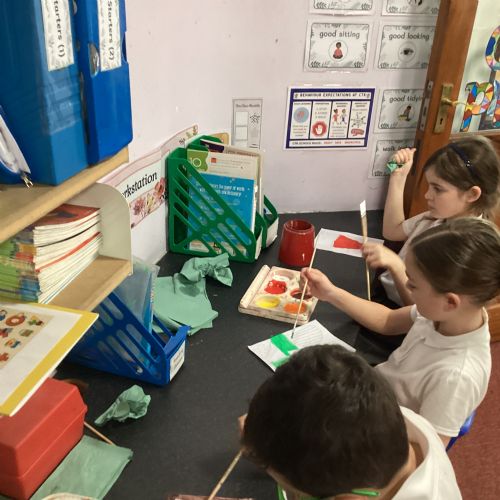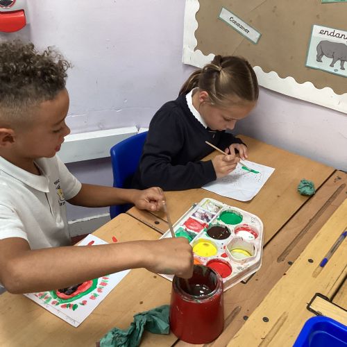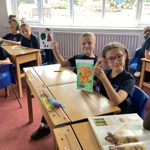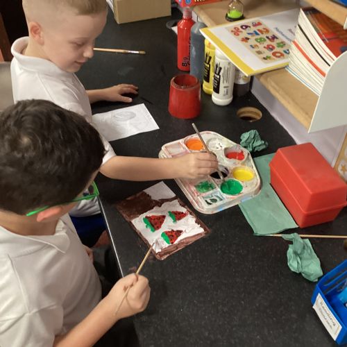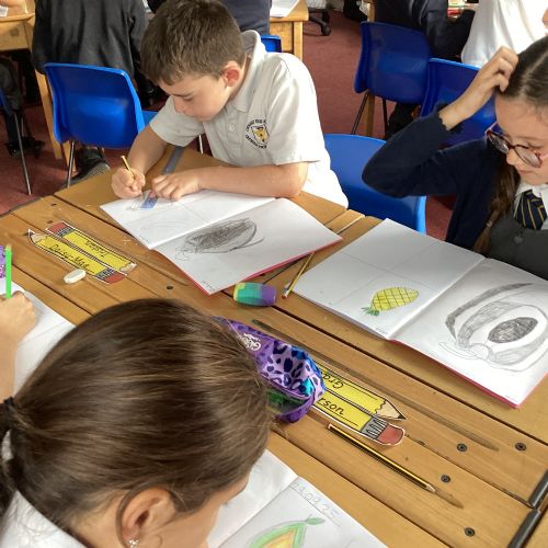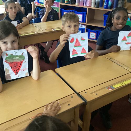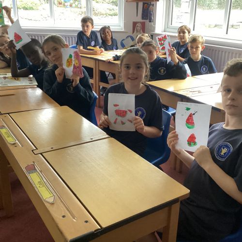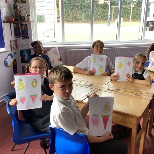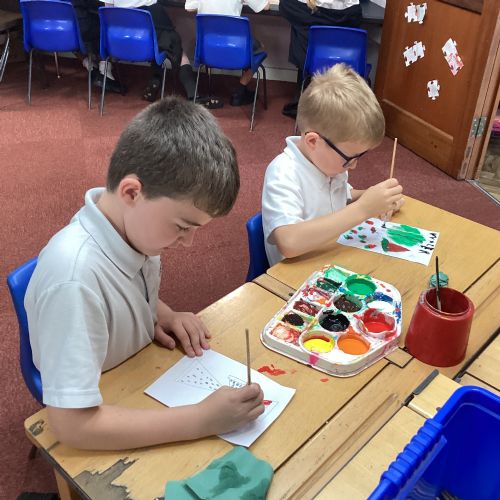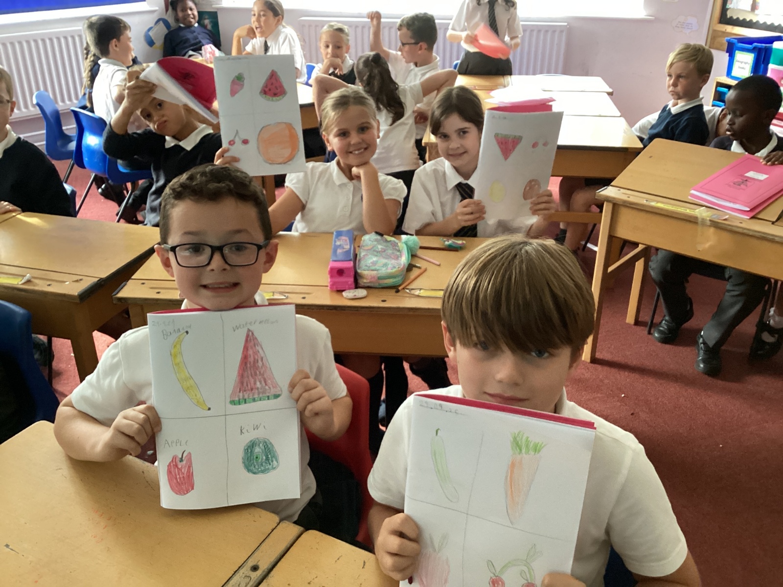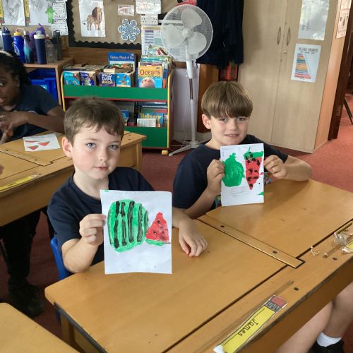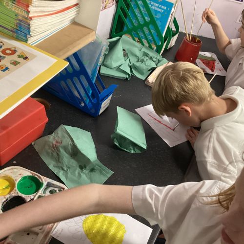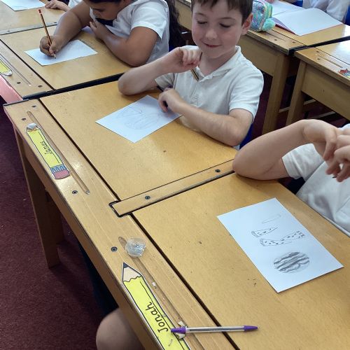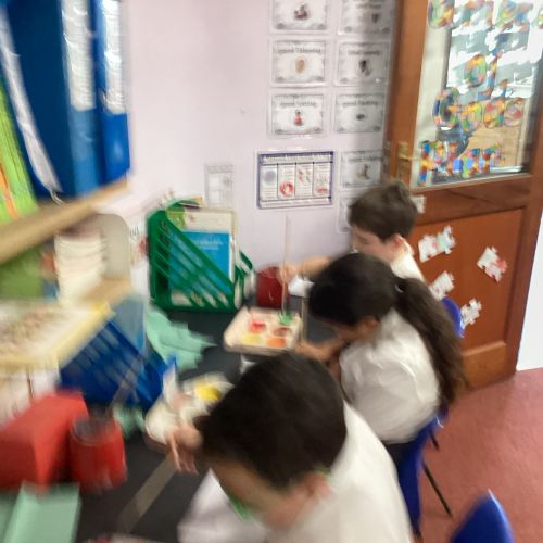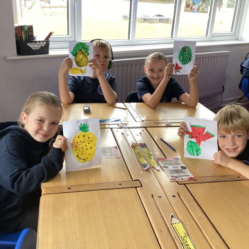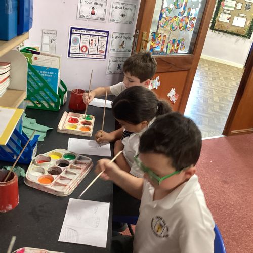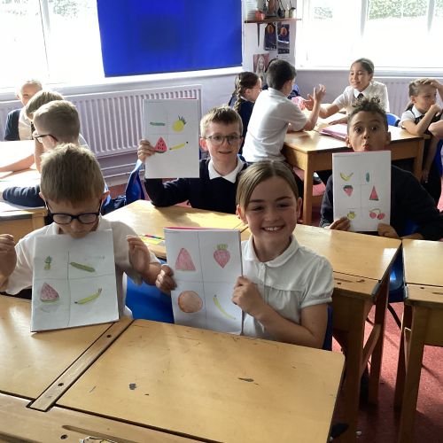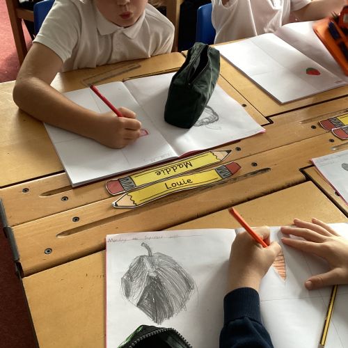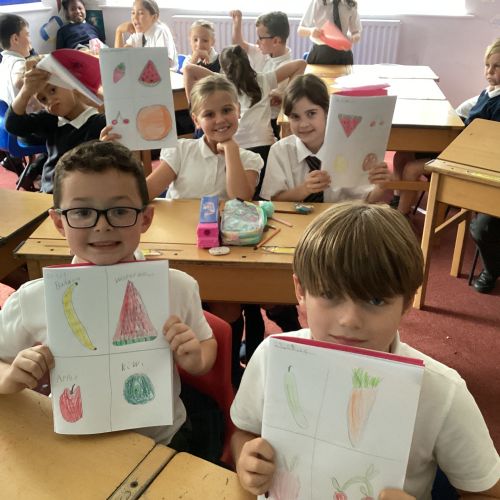 Today we drew then painted our pictures of vegetables.