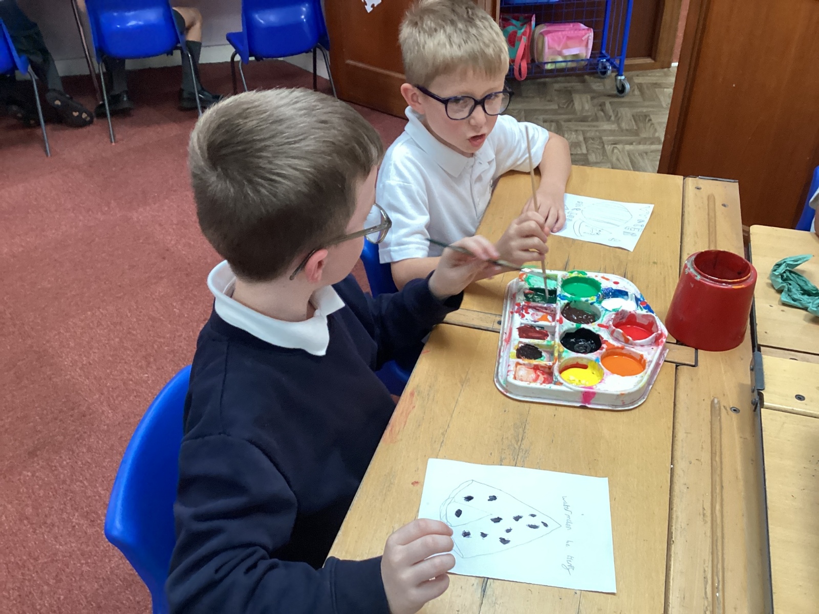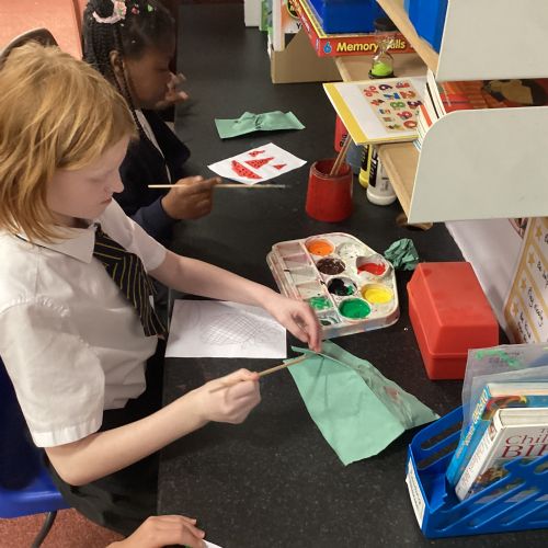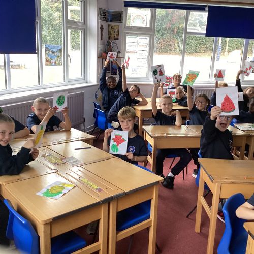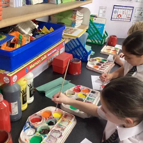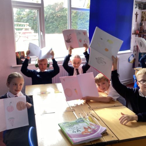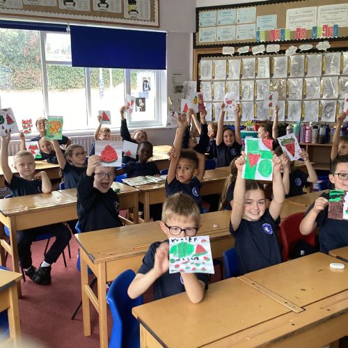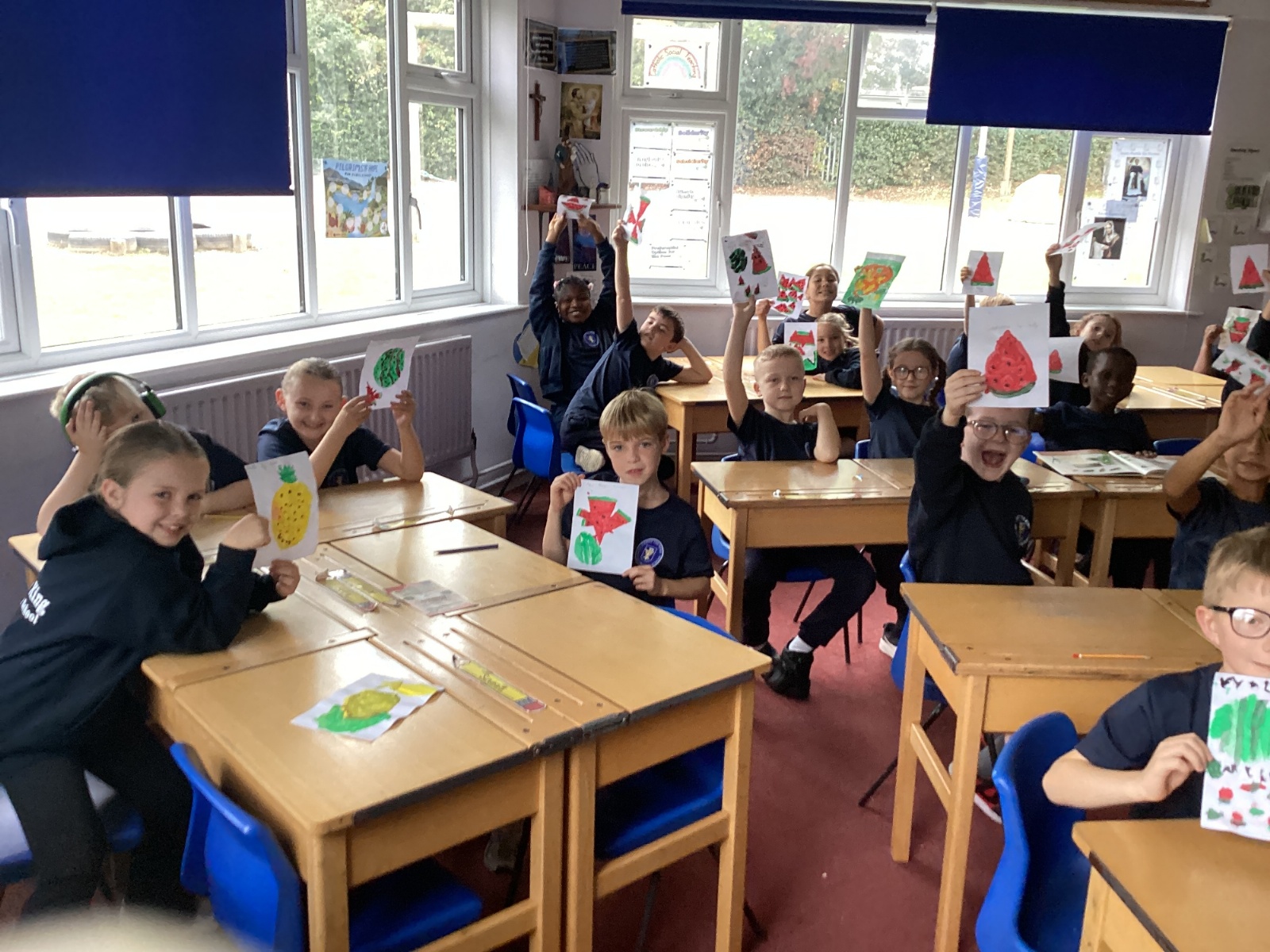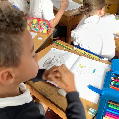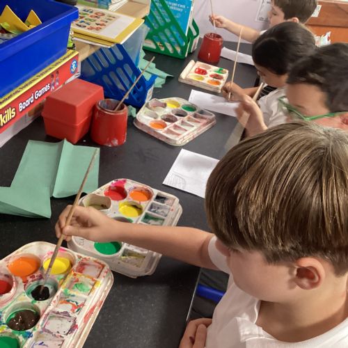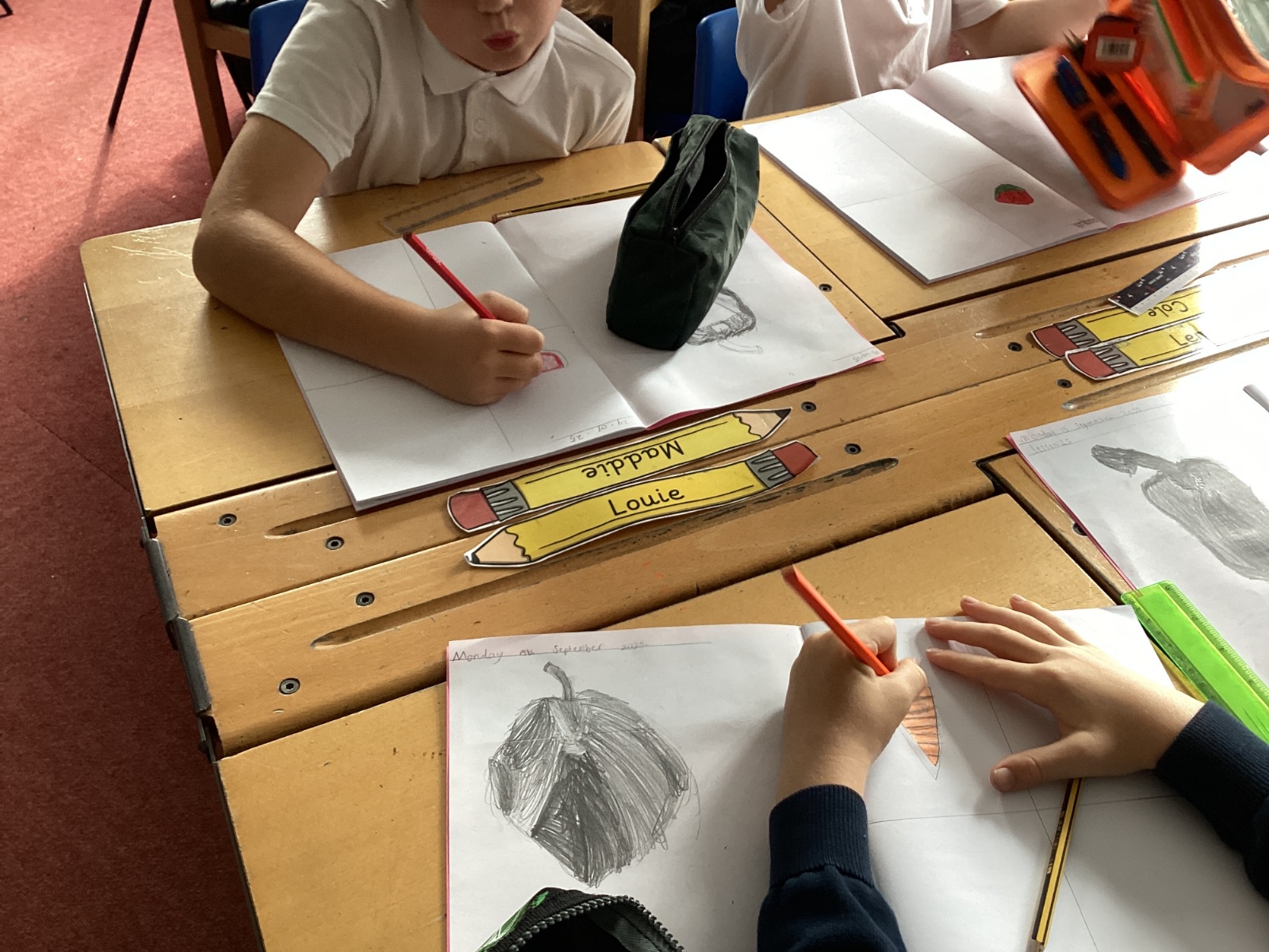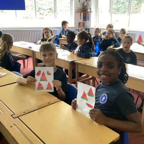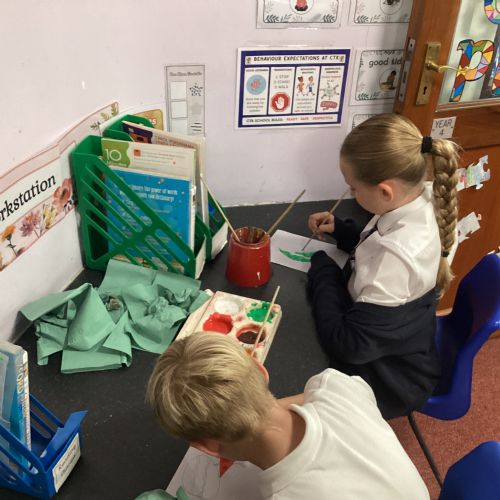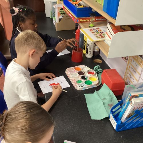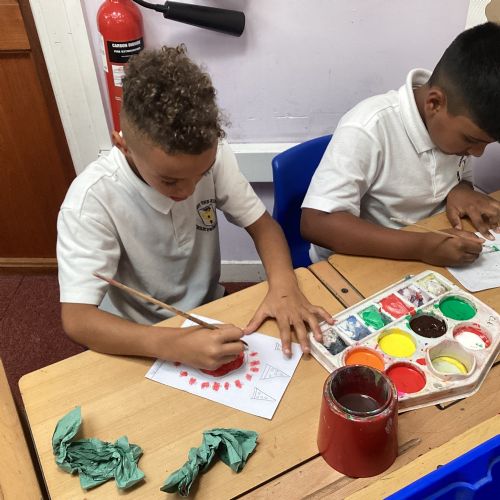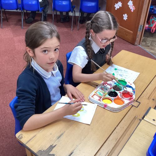 Today we drew then painted our pictures of vegetables.