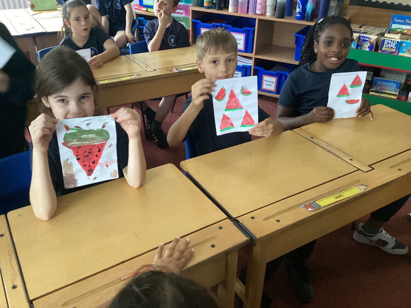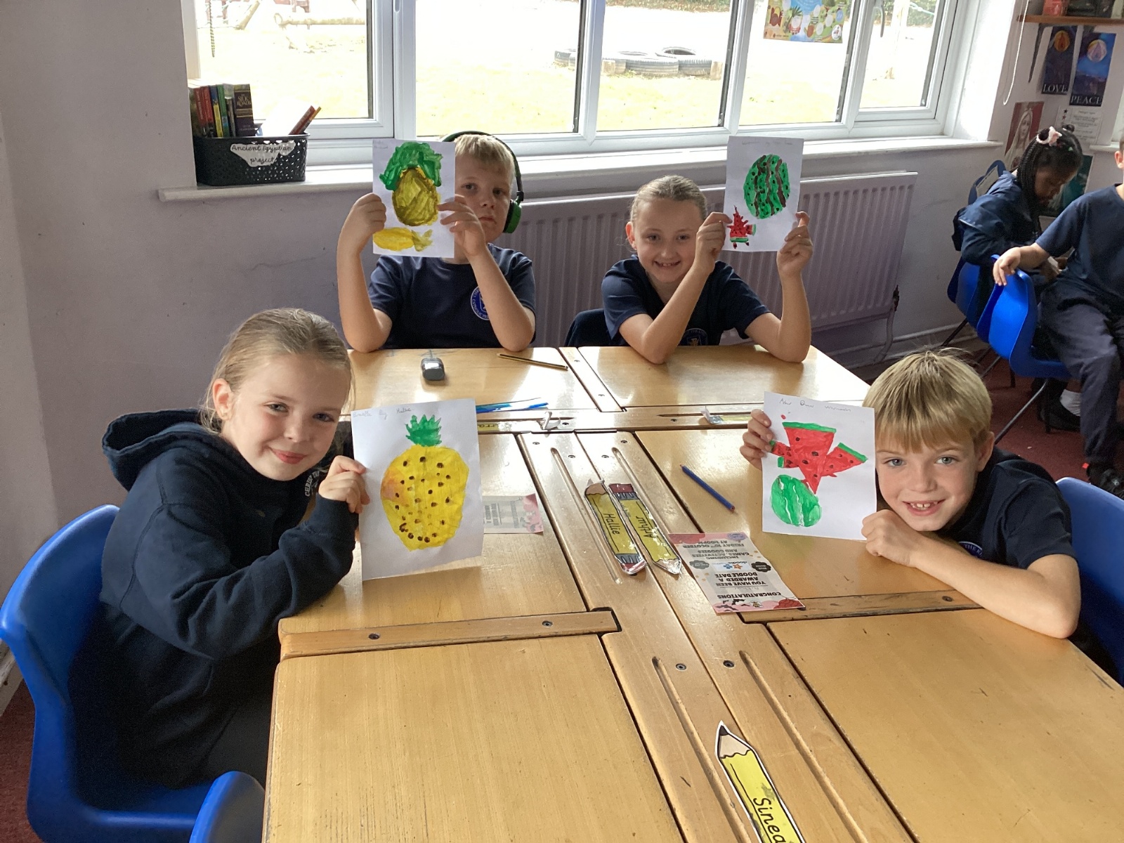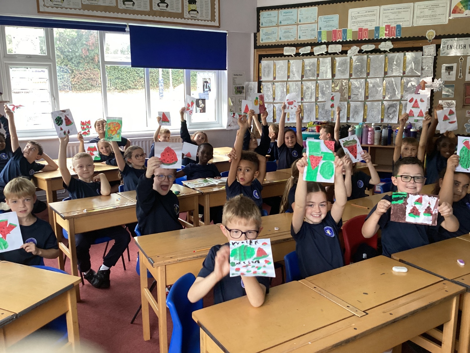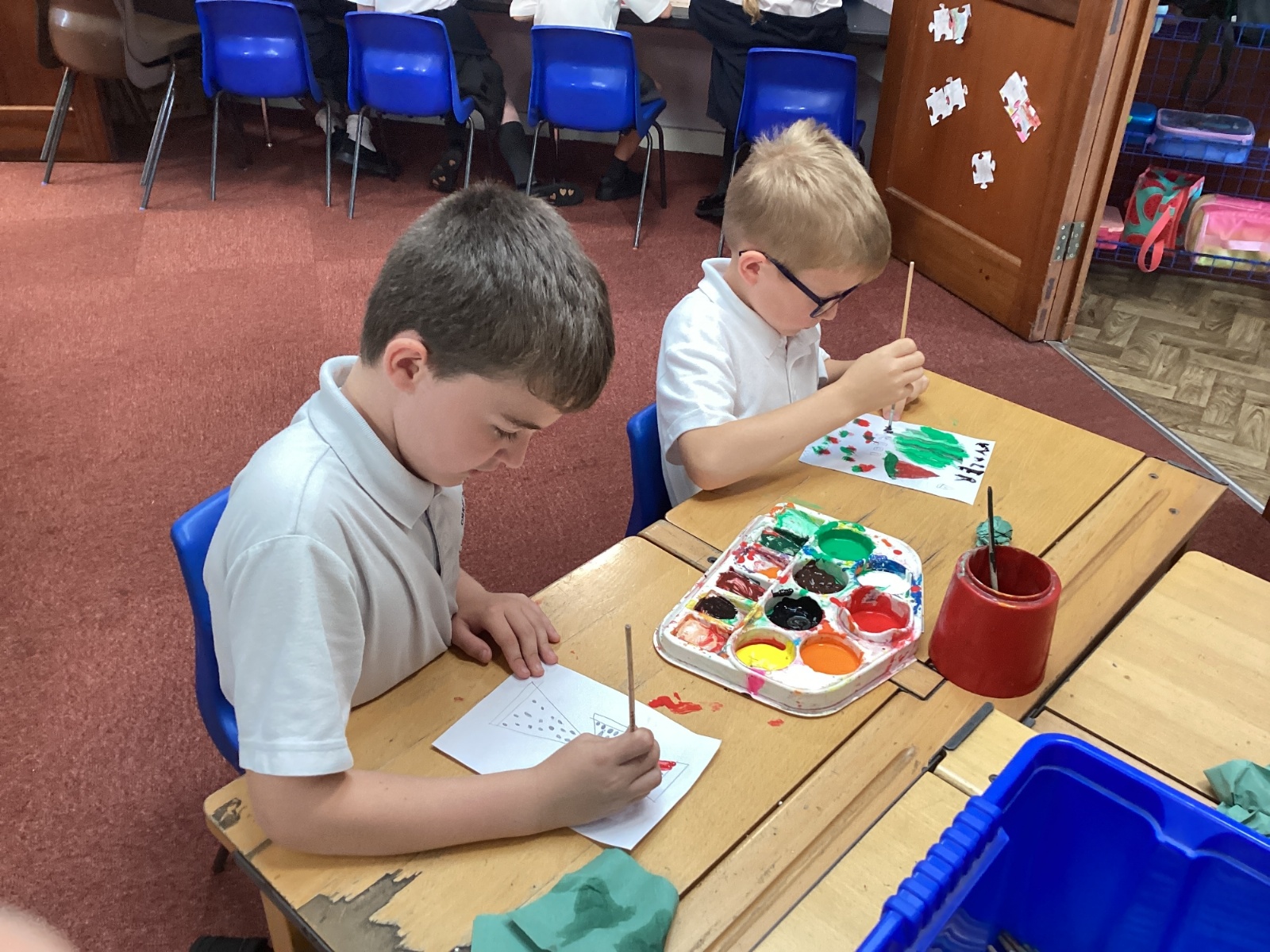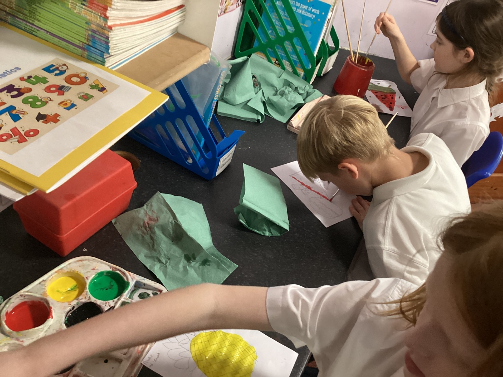 Today we drew then painted our pictures of vegetables.