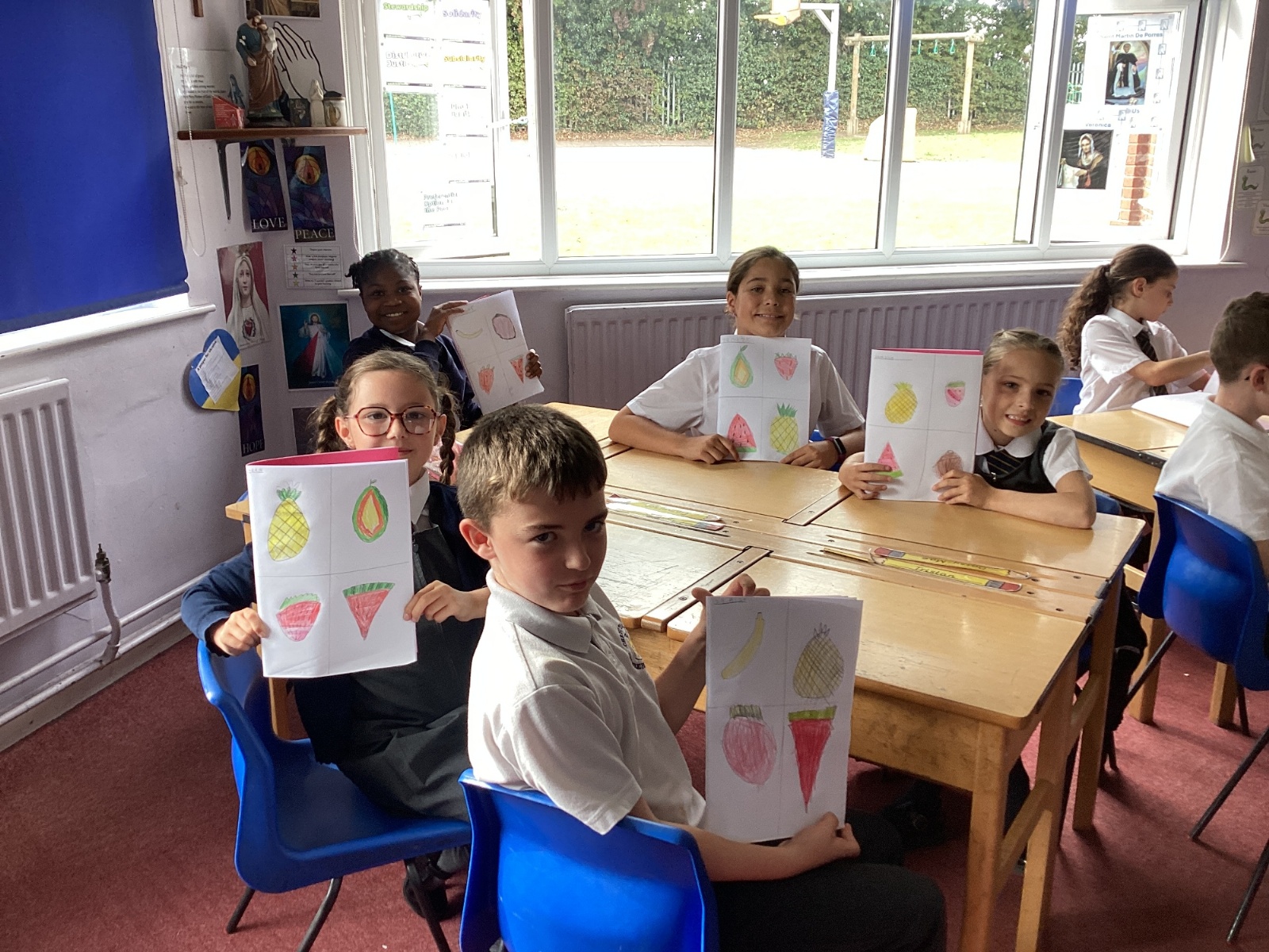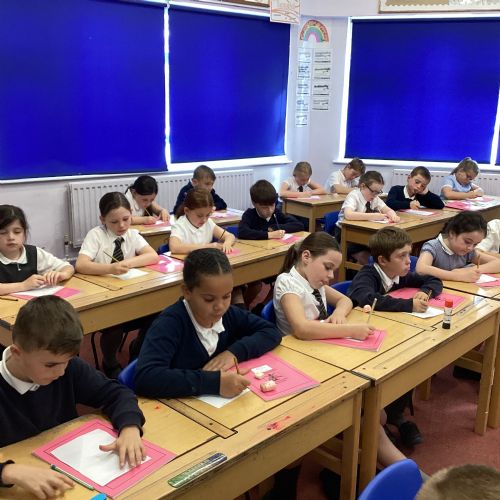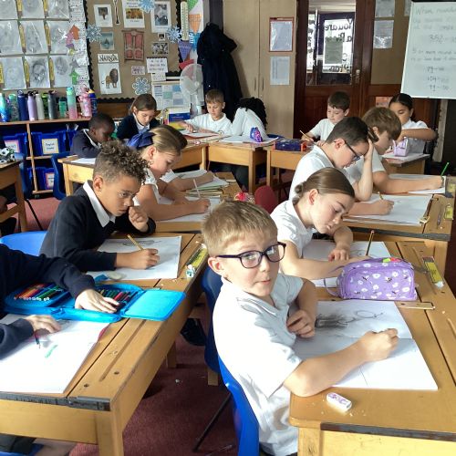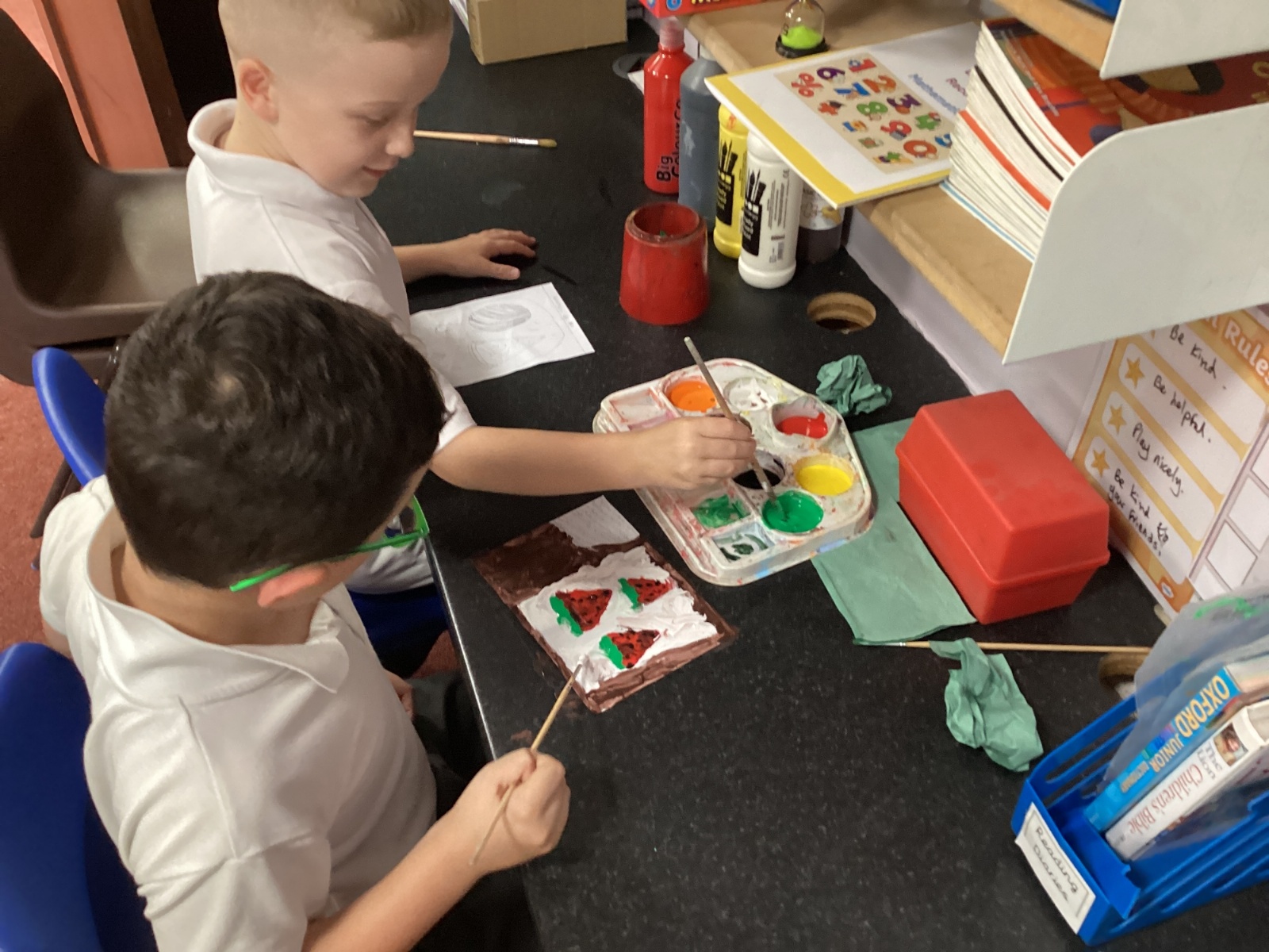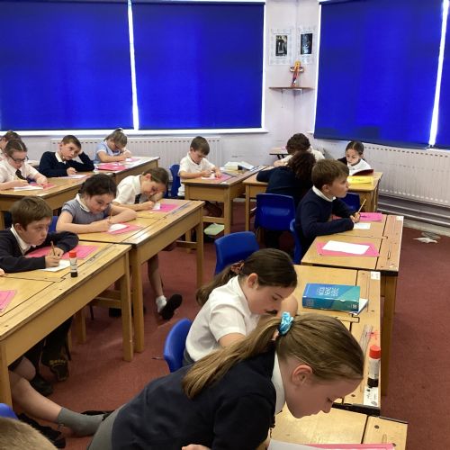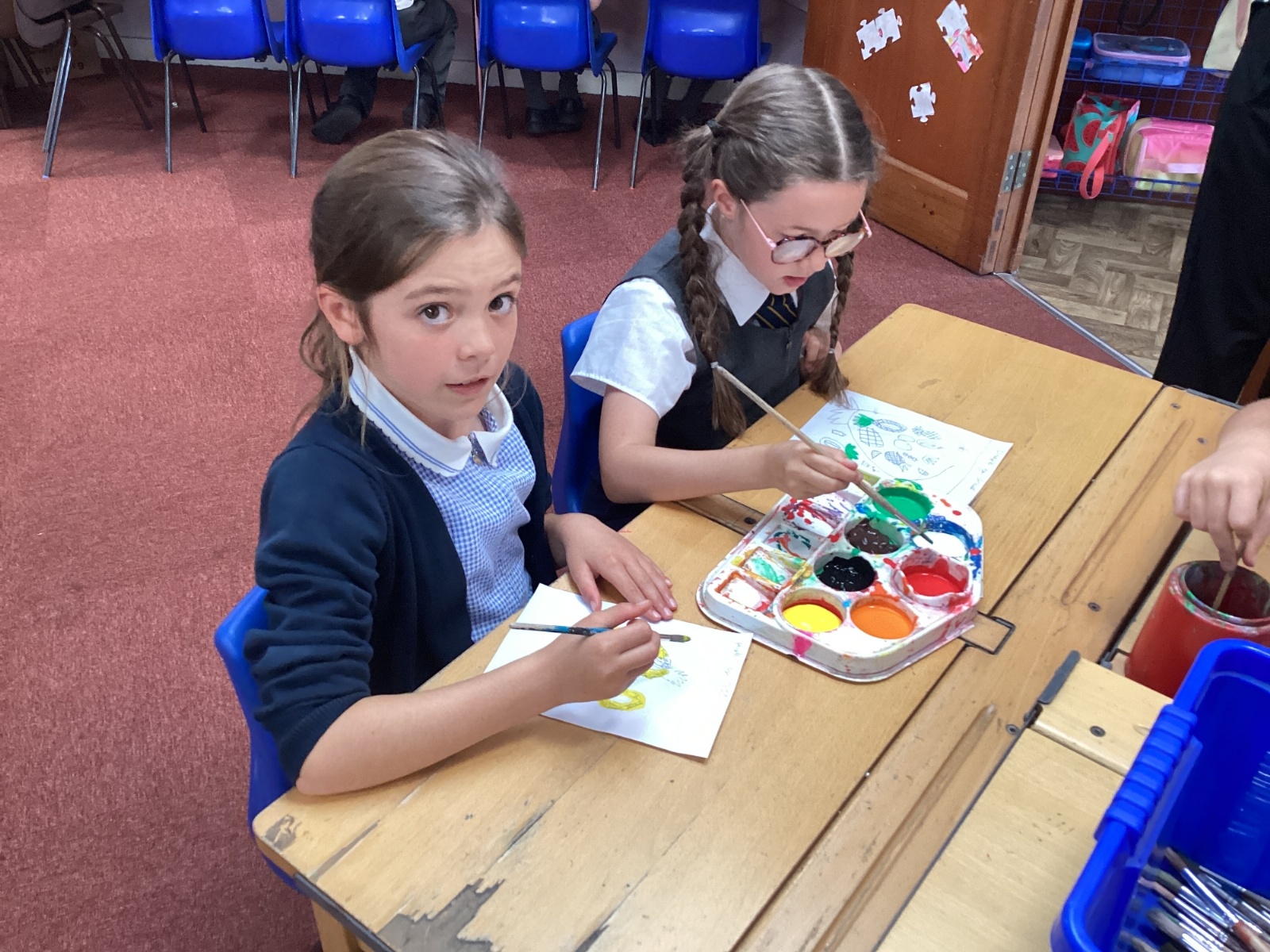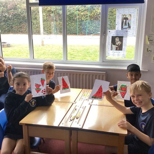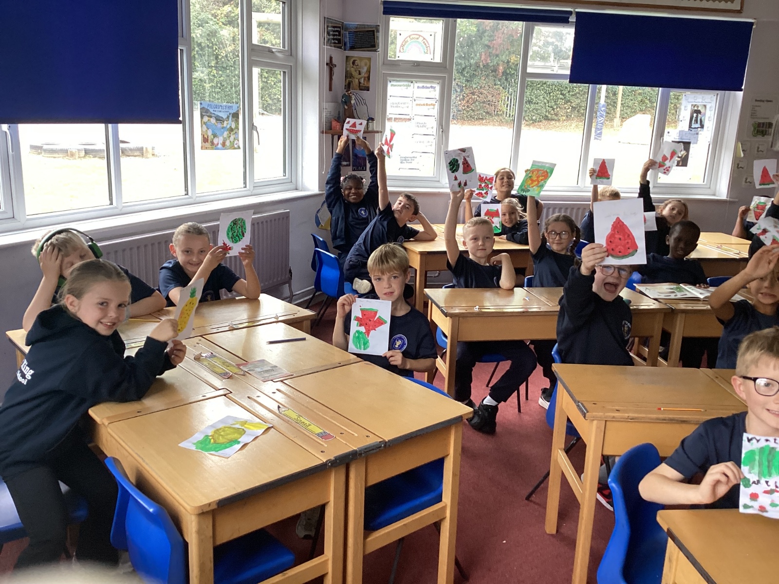 Today we drew then painted our pictures of vegetables.