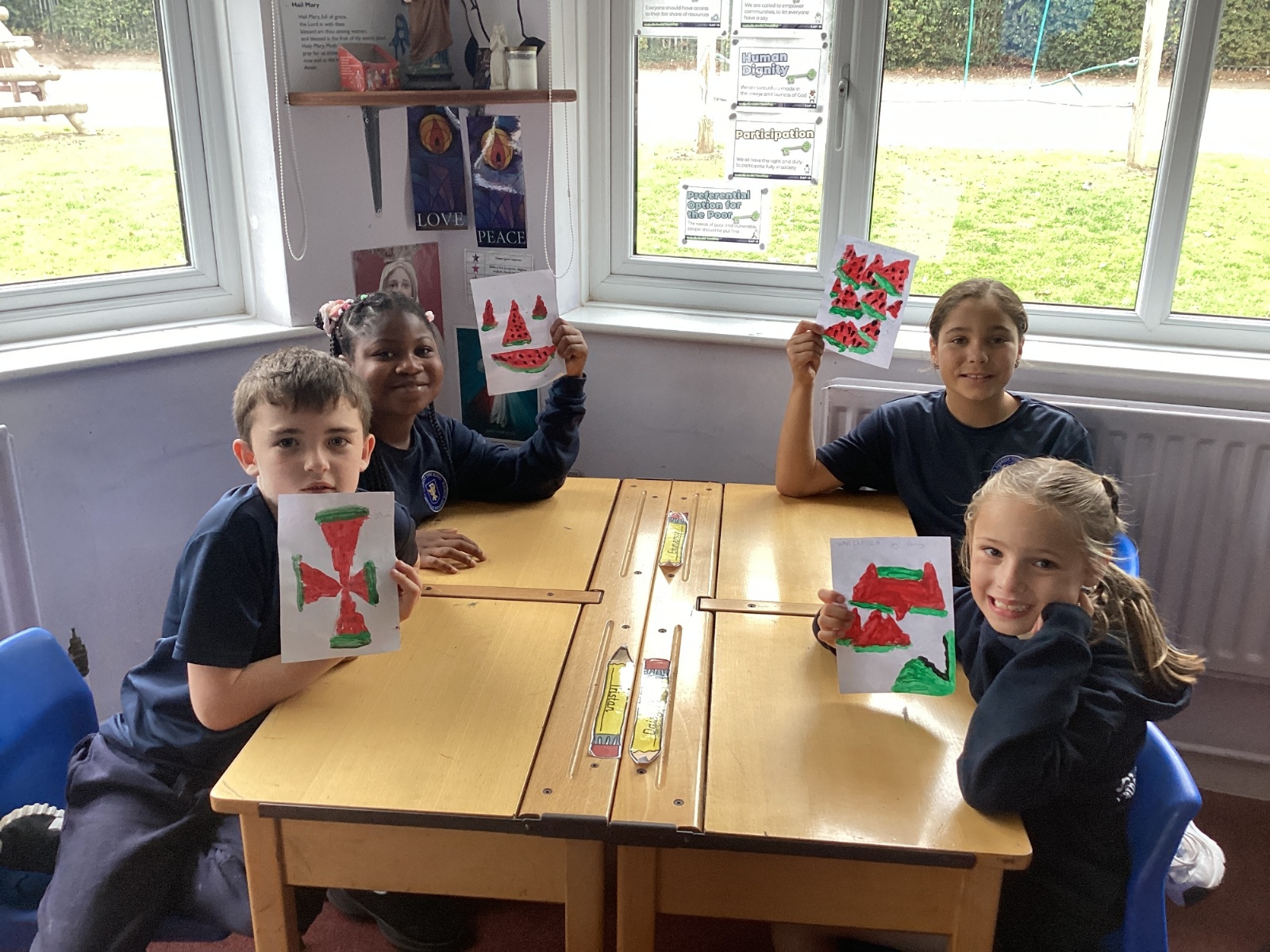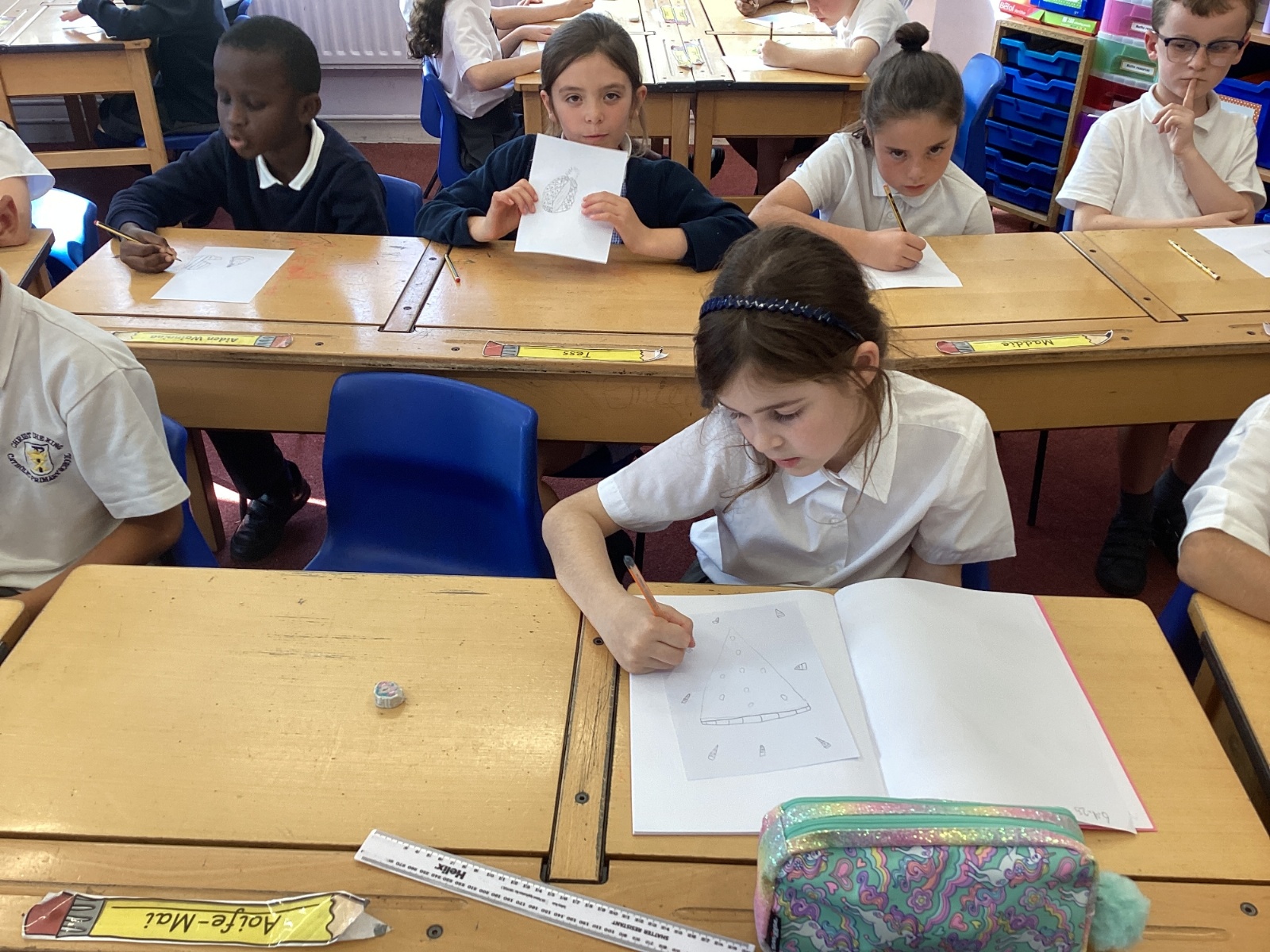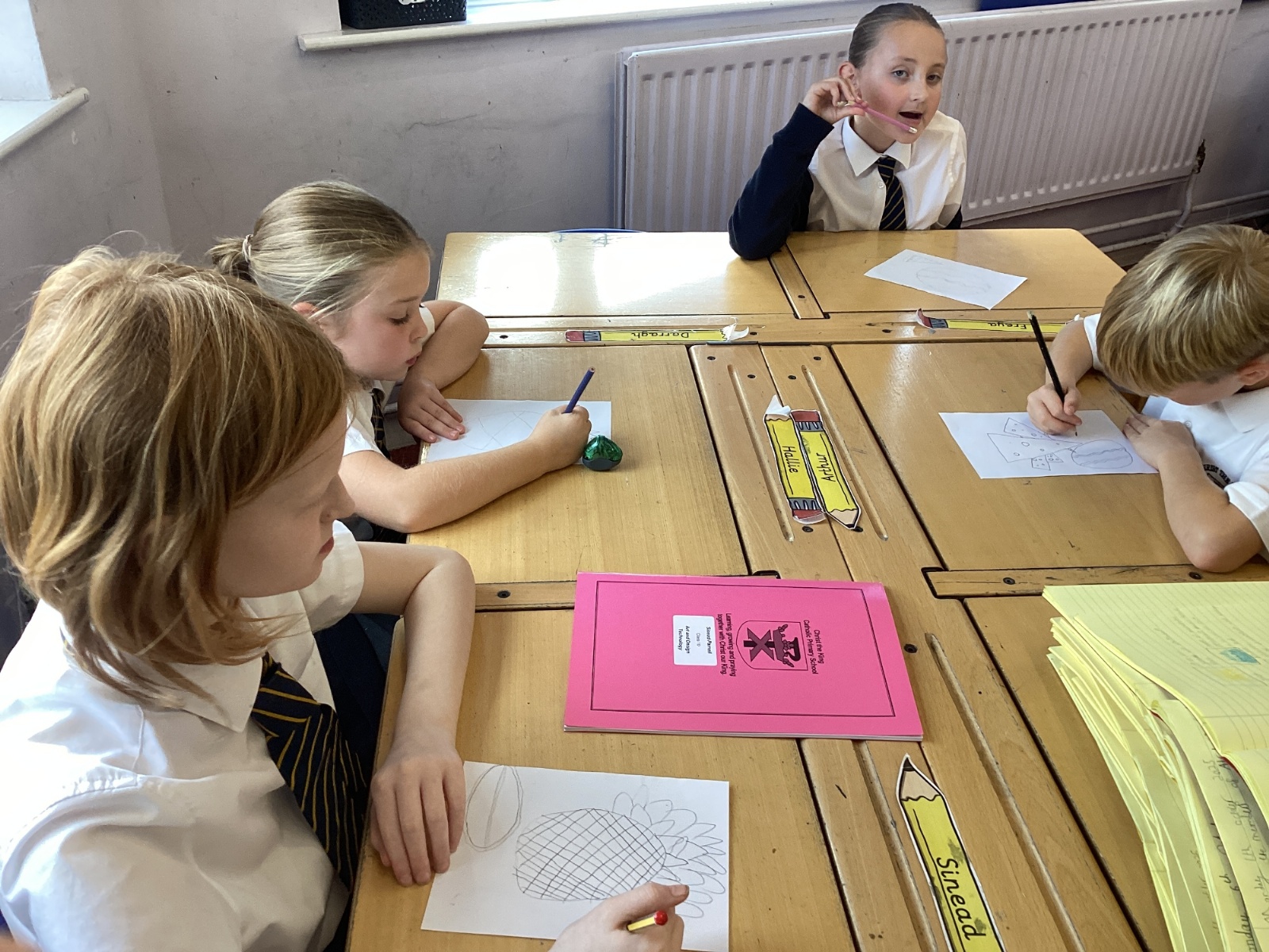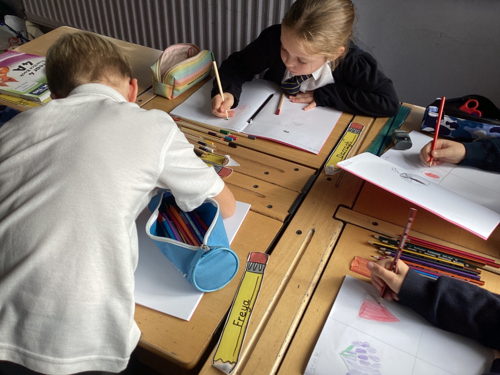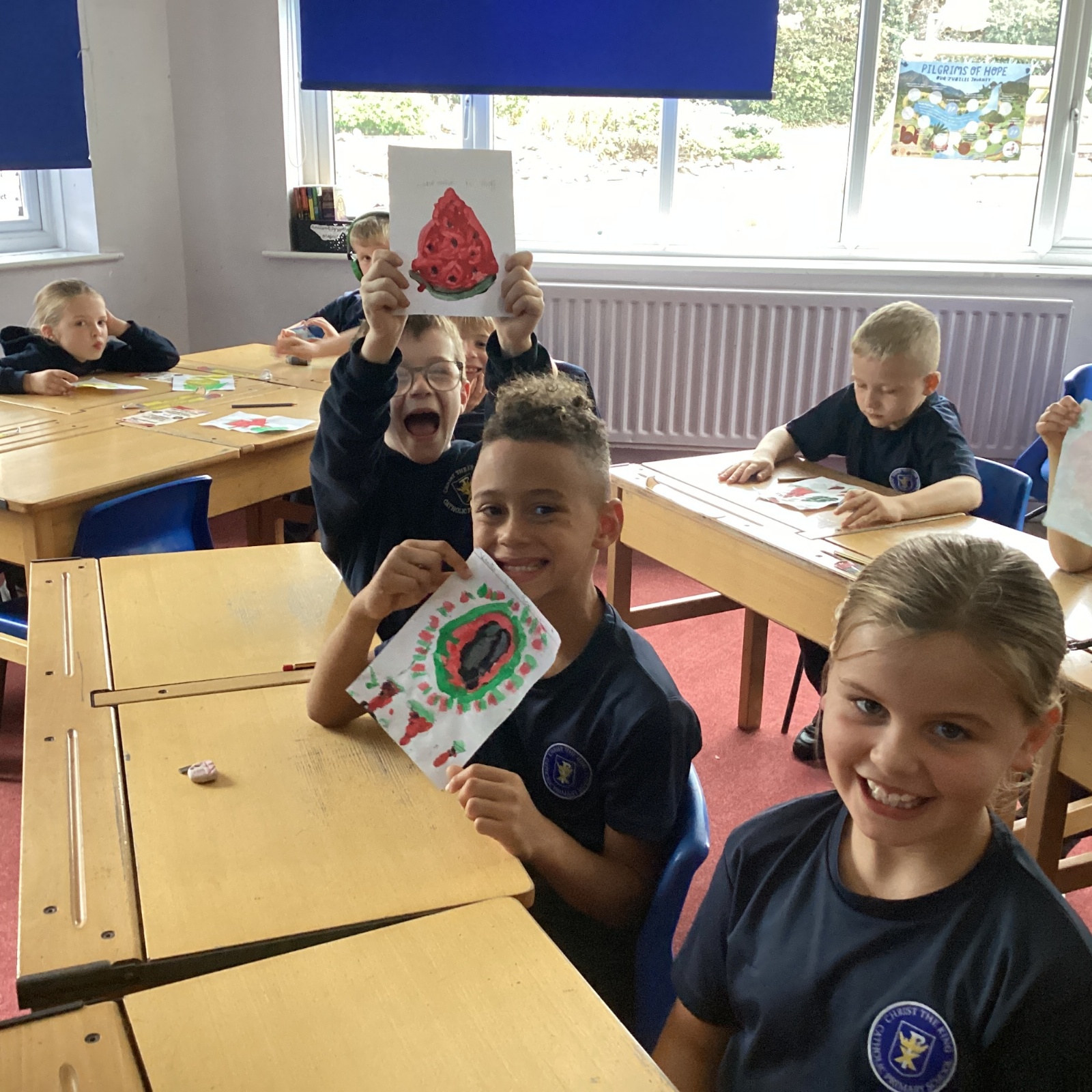 Today we drew then painted our pictures of vegetables.
