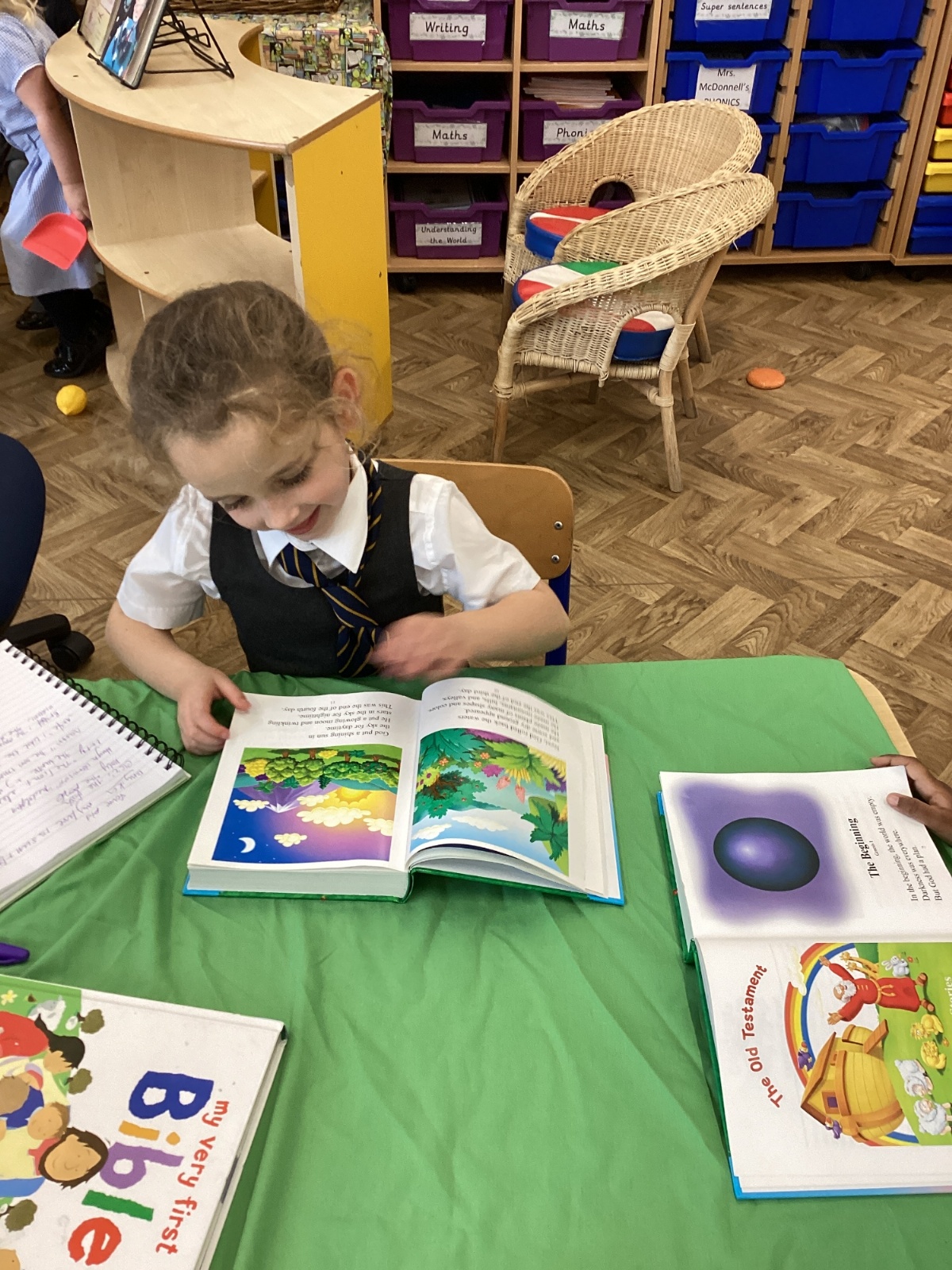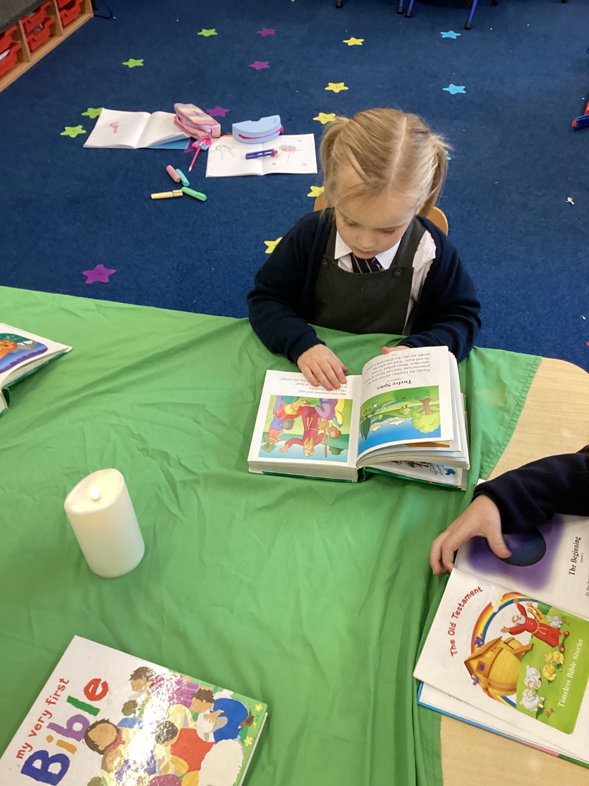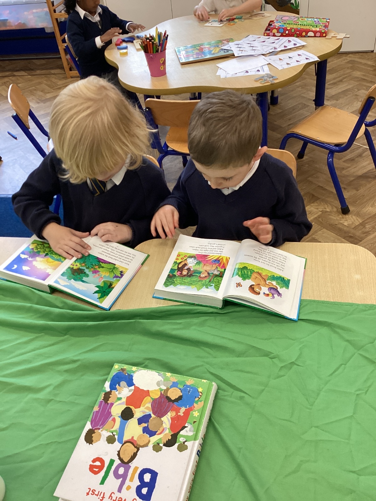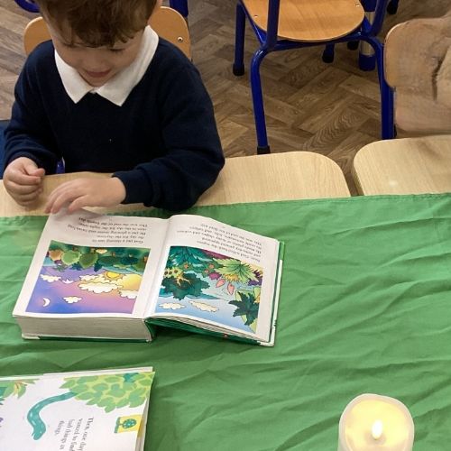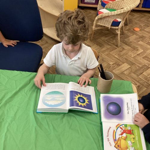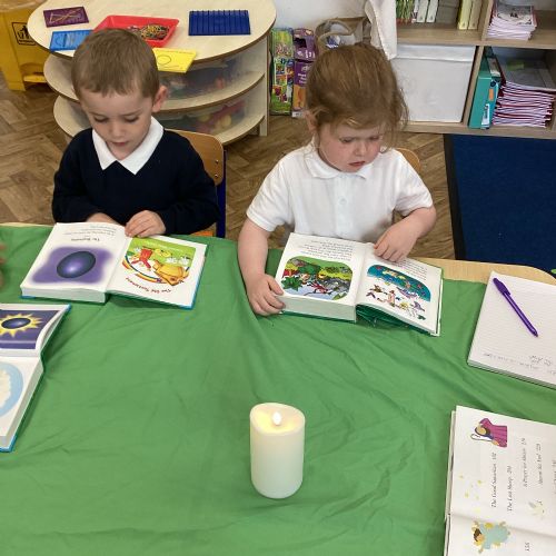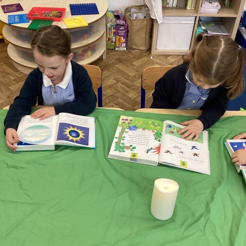 We talked about God's special book, the Bible and we looked at images from the story of Creation. We talked about how it is everyone's job to look after our planet and learned a song about Stewardship.