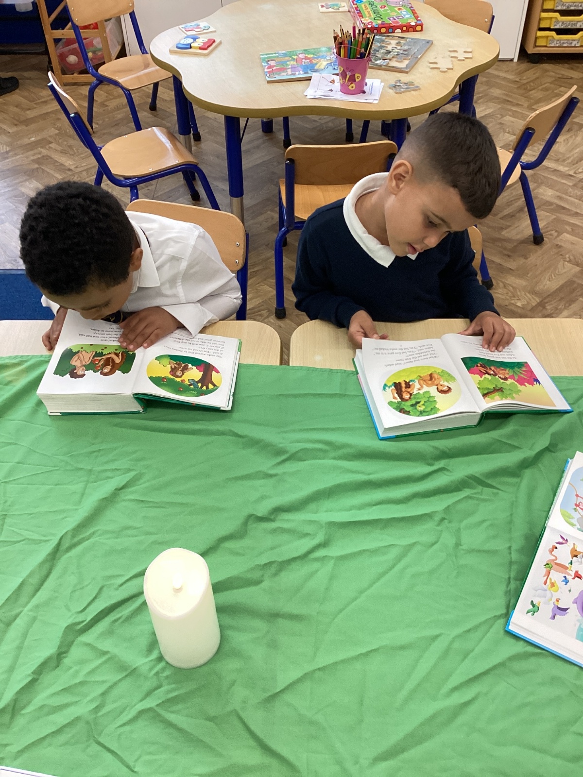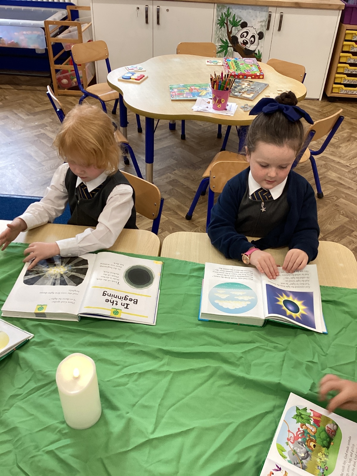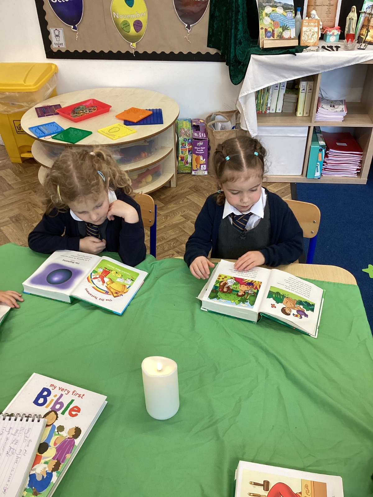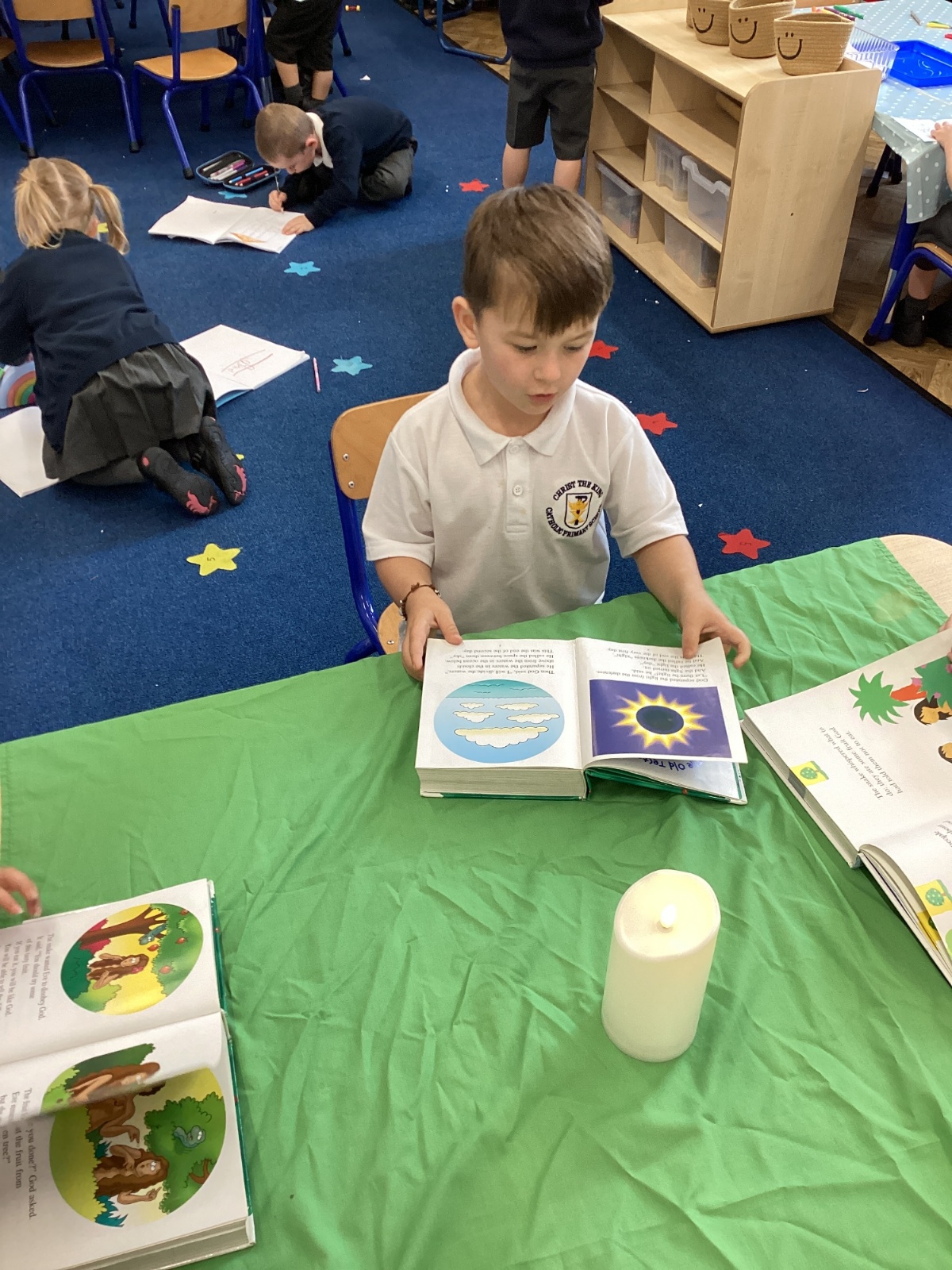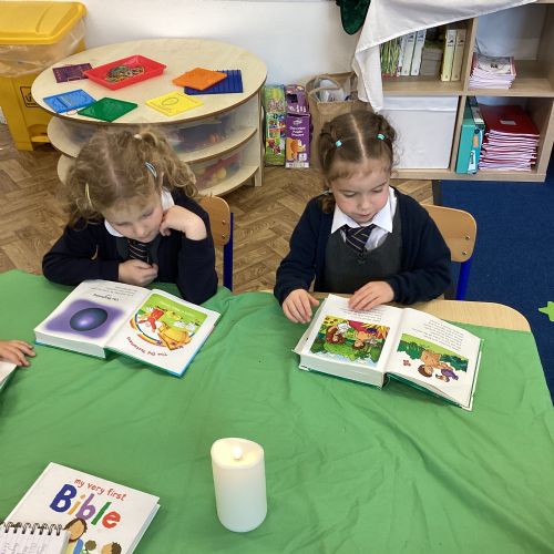 We talked about God's special book, the Bible and we looked at images from the story of Creation. We talked about how it is everyone's job to look after our planet and learned a song about Stewardship.
