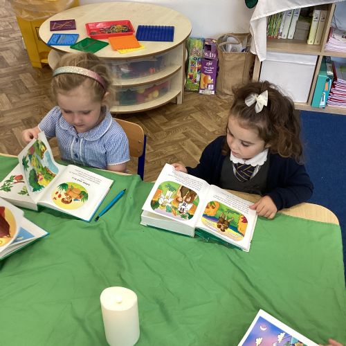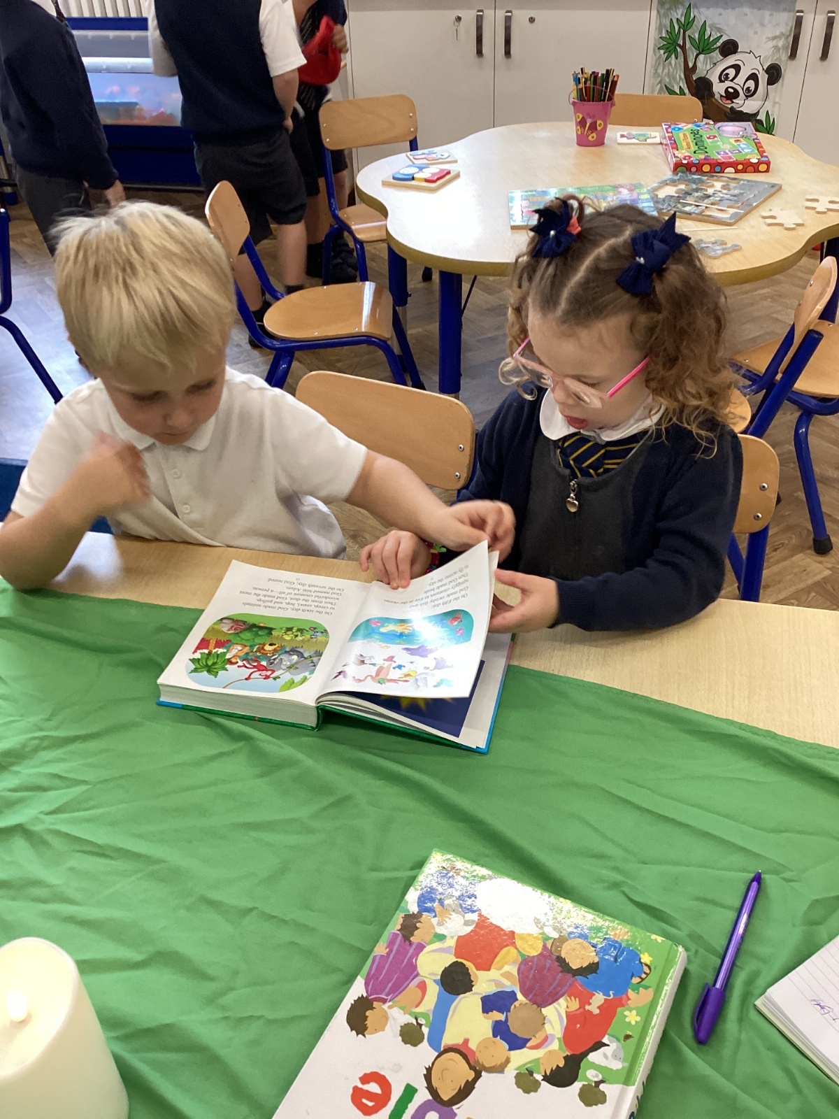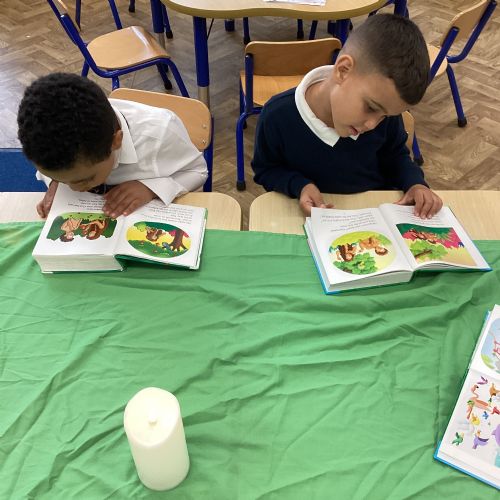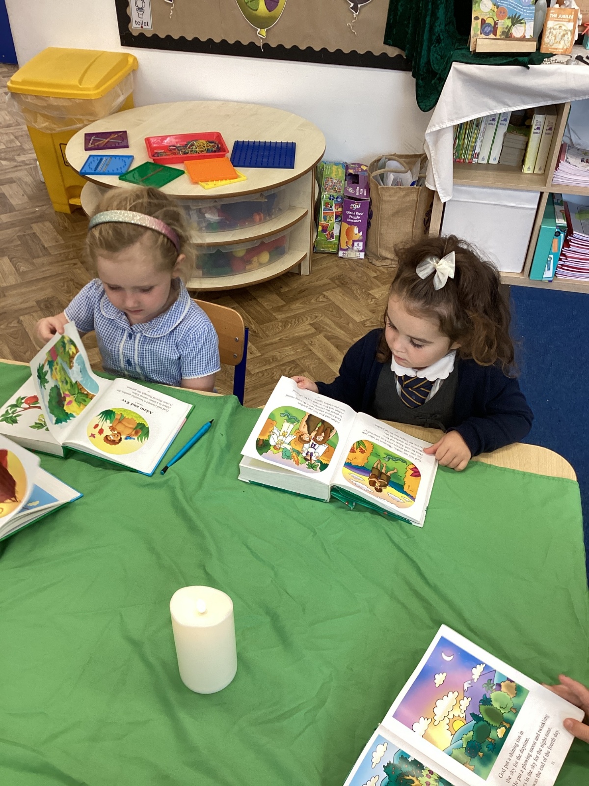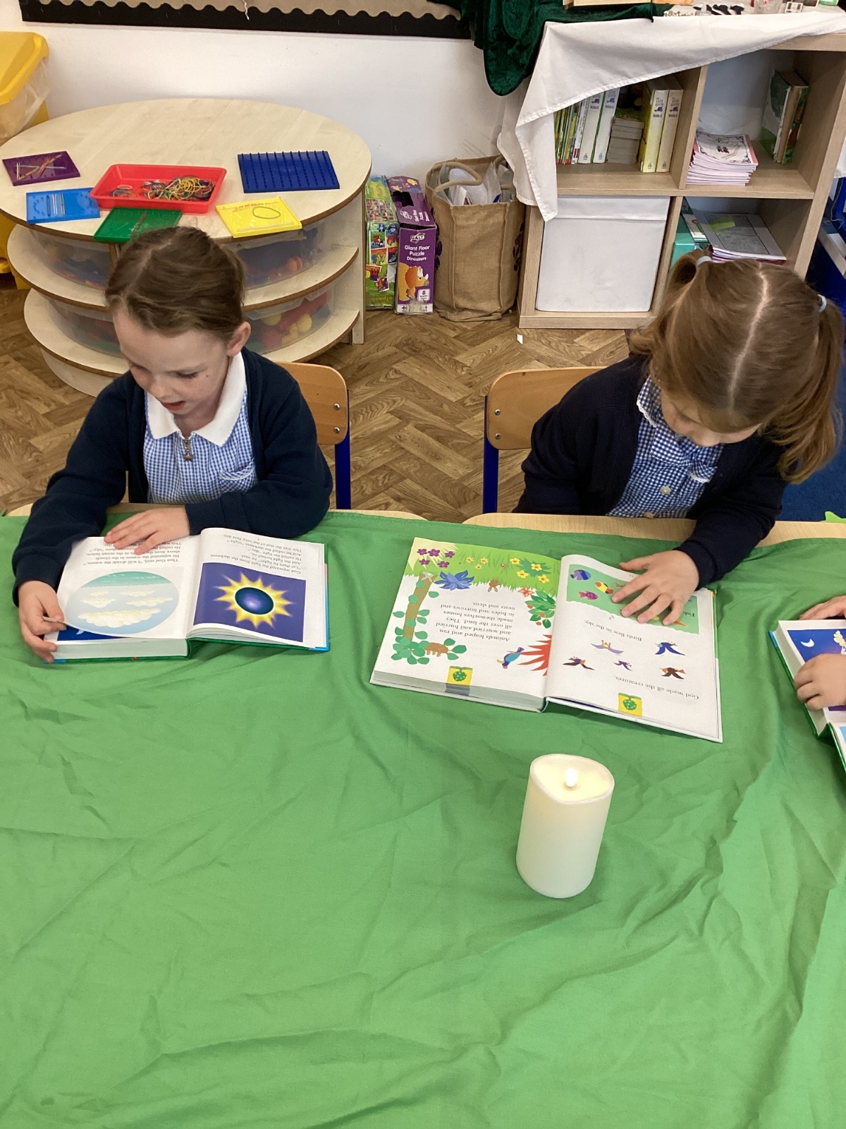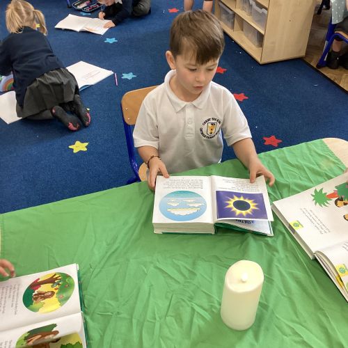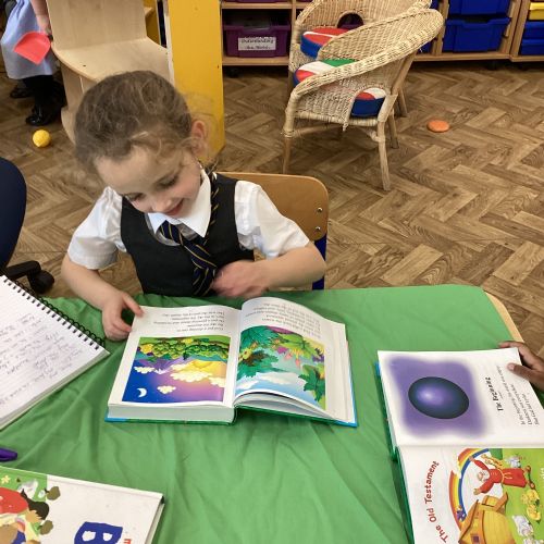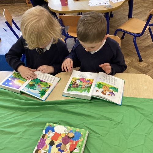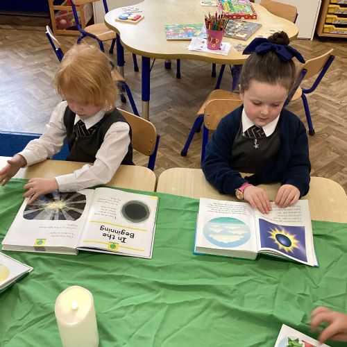 We talked about God's special book, the Bible and we looked at images from the story of Creation. We talked about how it is everyone's job to look after our planet and learned a song about Stewardship.