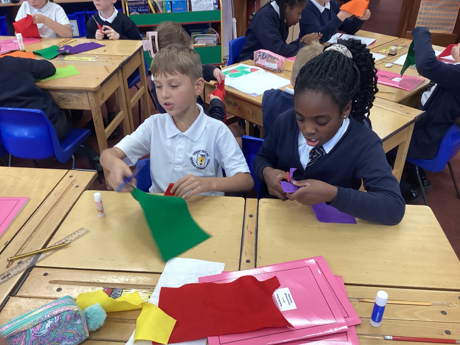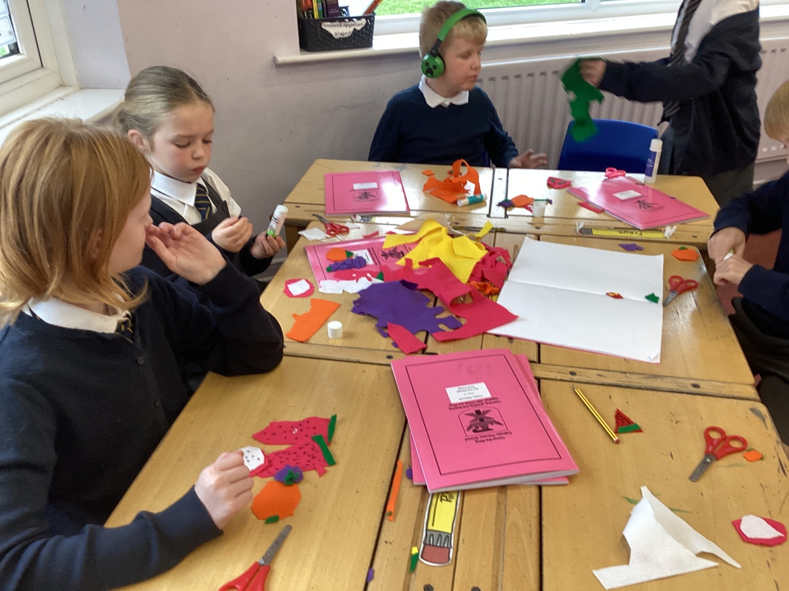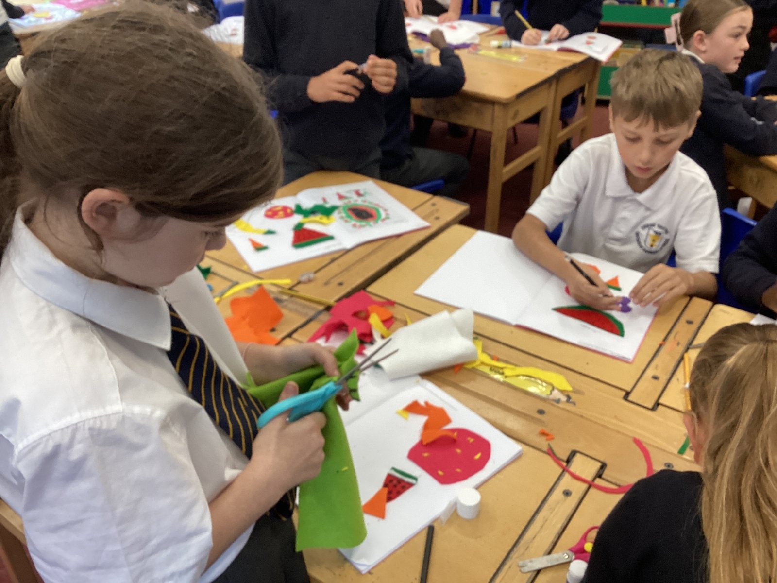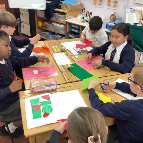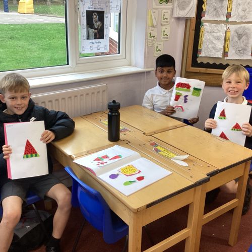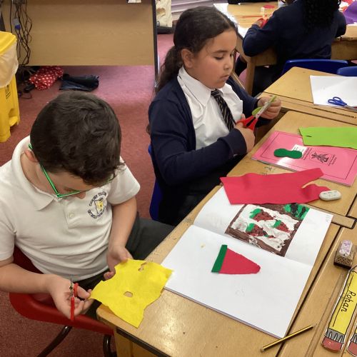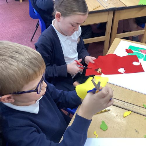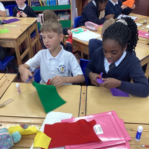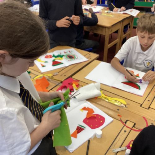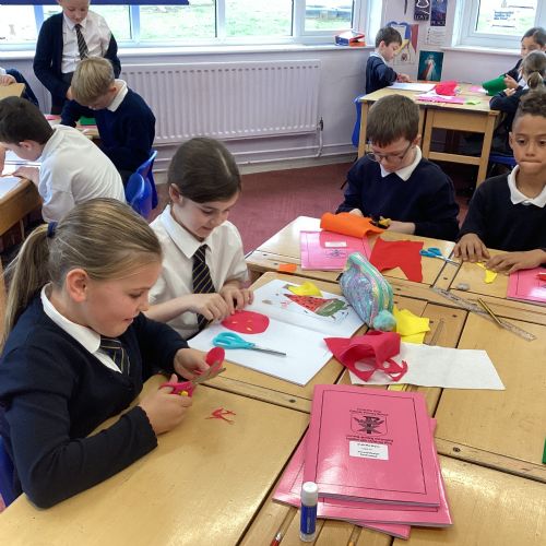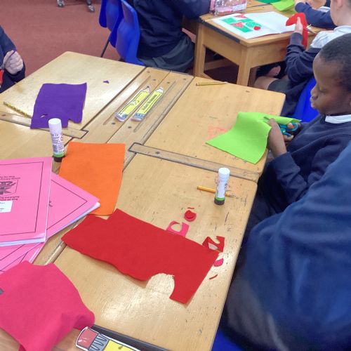 This afternoon, we created some fantastic fabric art inspired by the artist Michael Brennan.