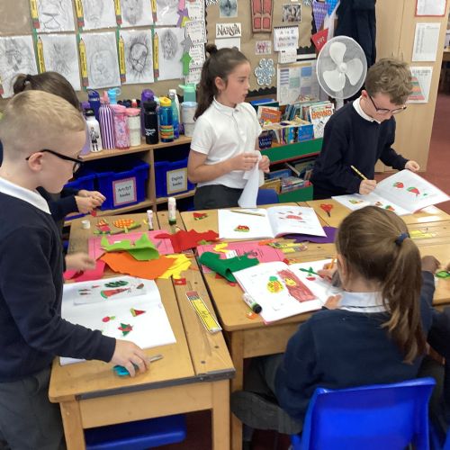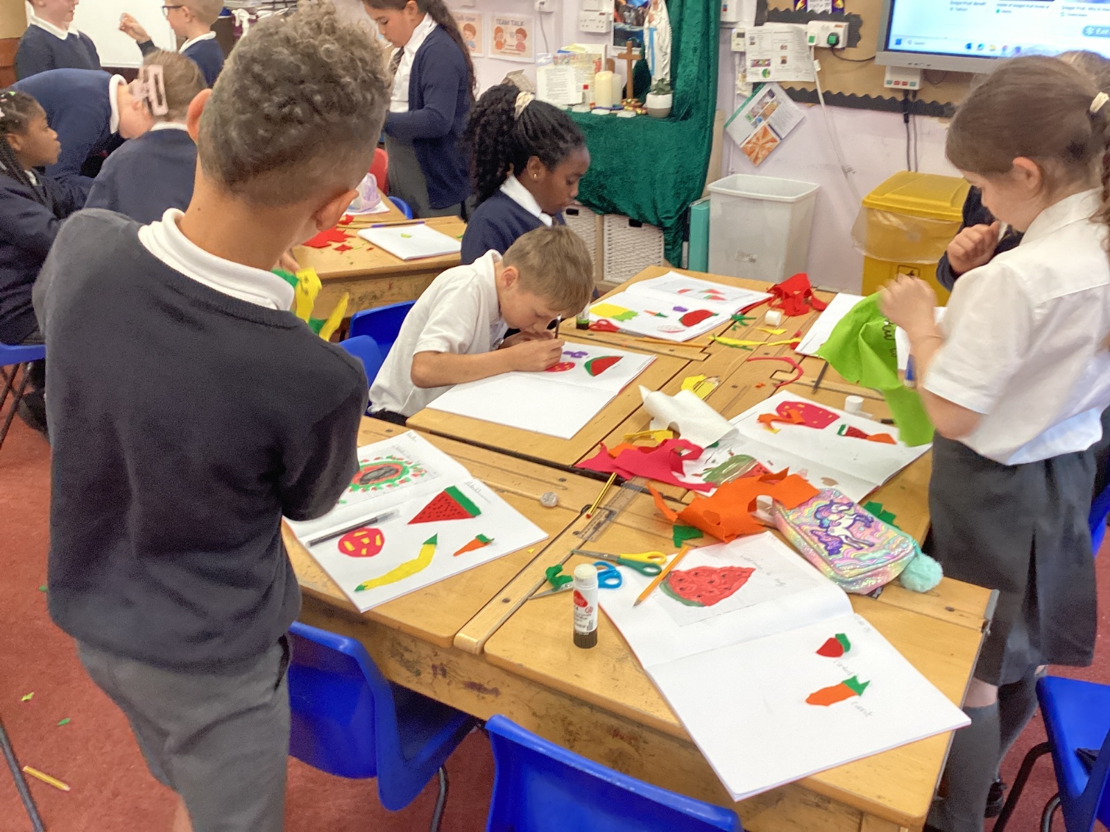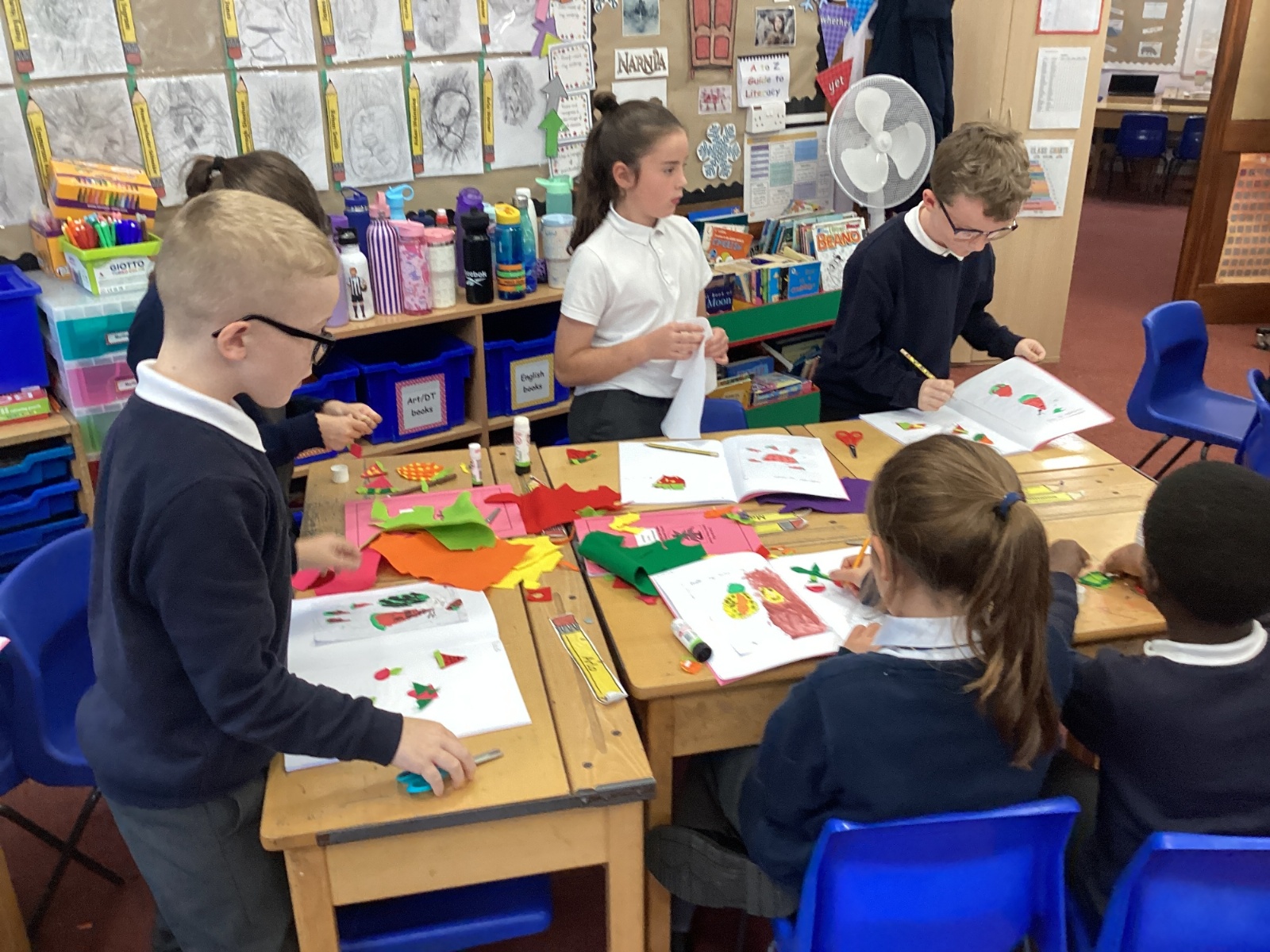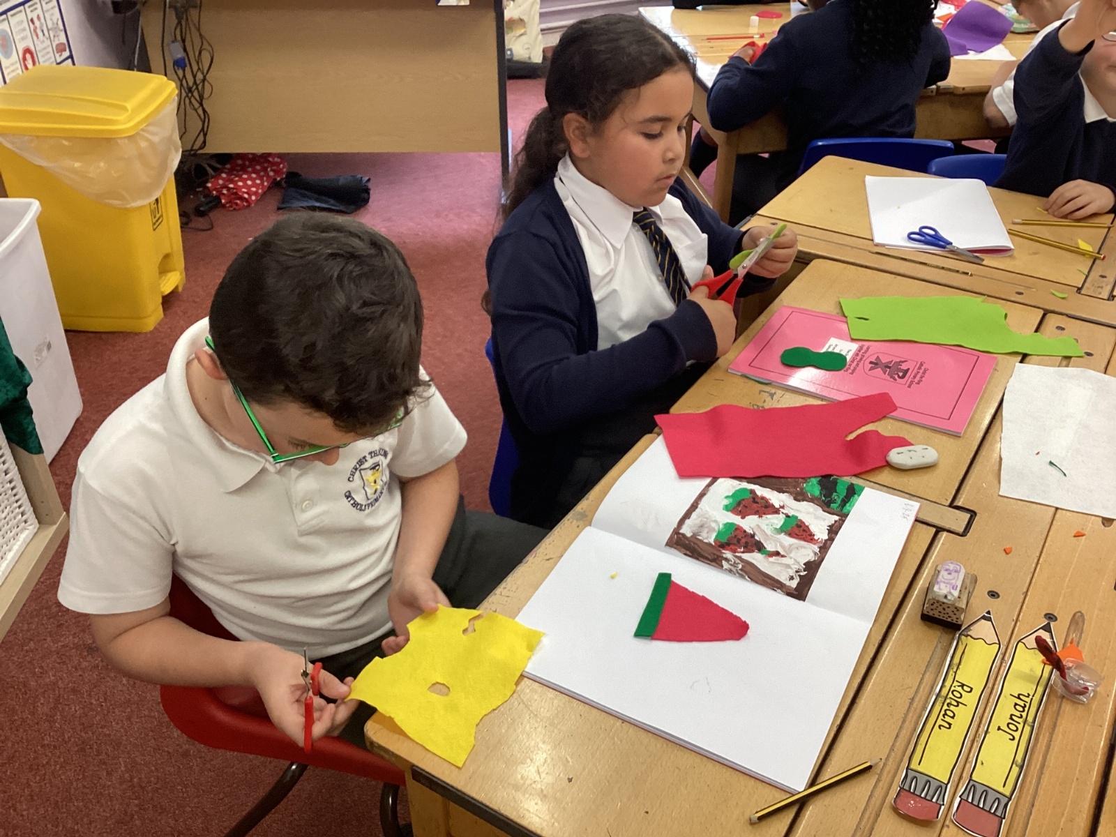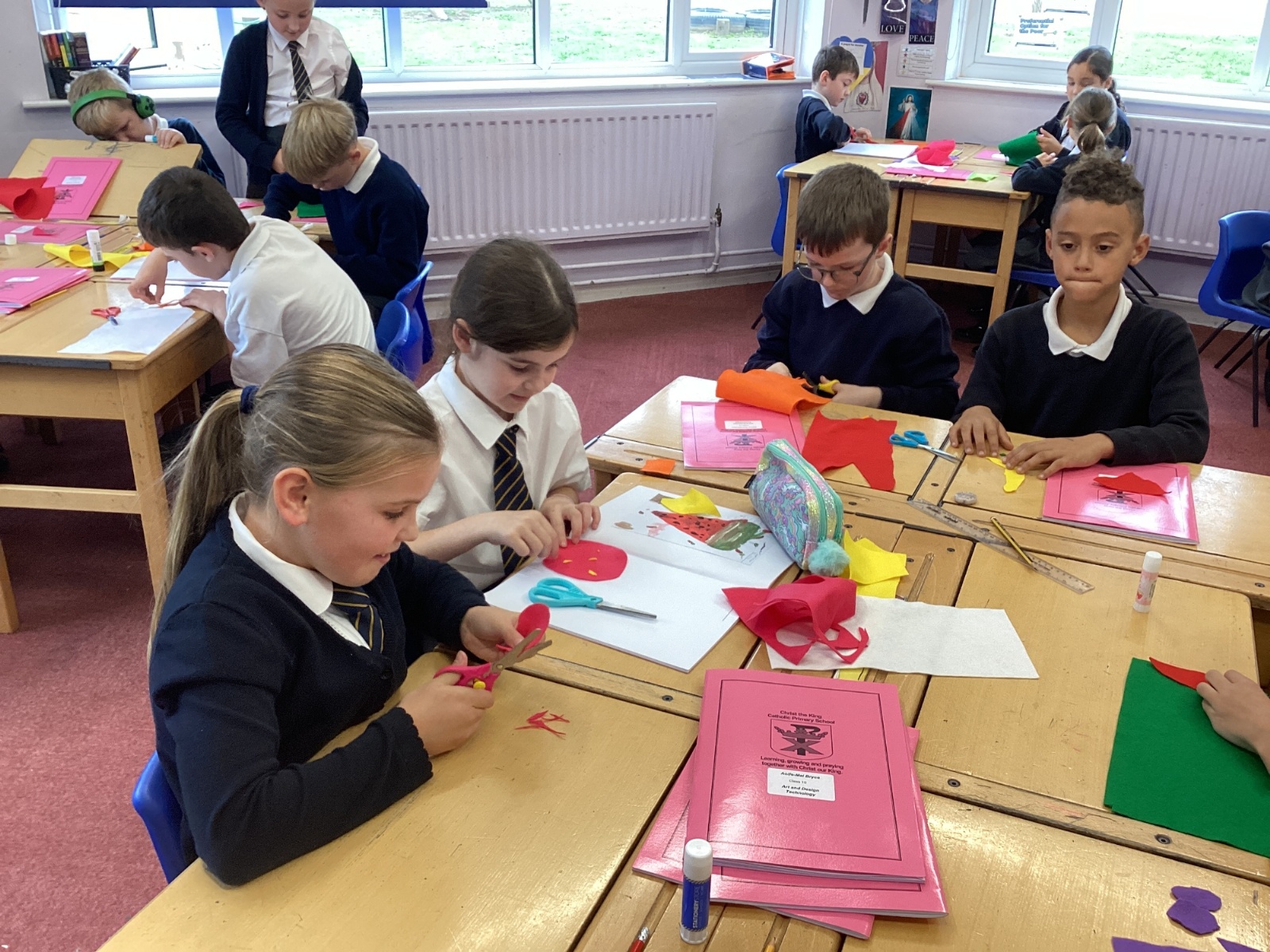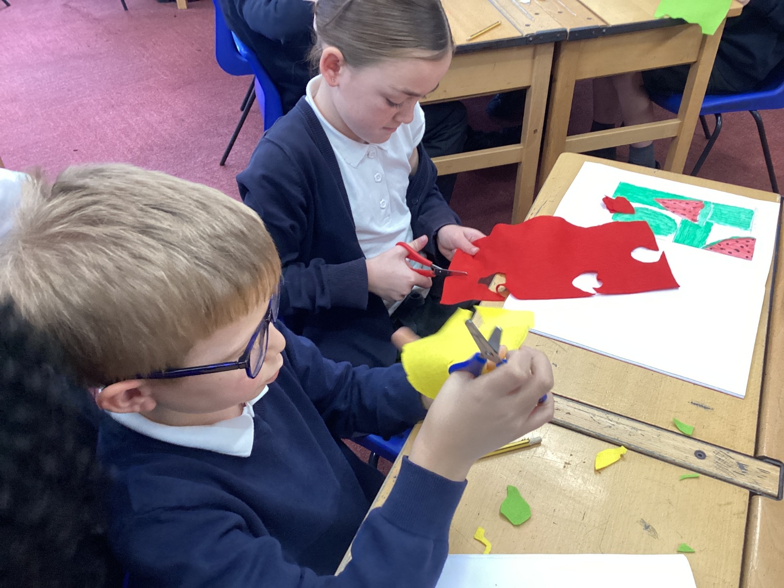 This afternoon, we created some fantastic fabric art inspired by the artist Michael Brennan.