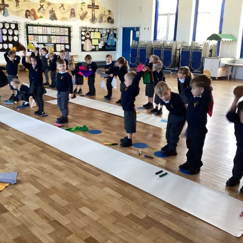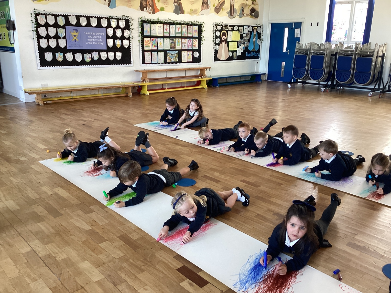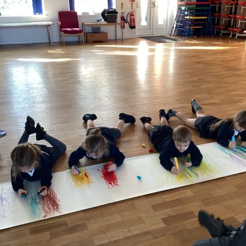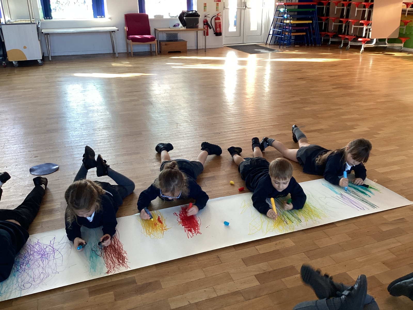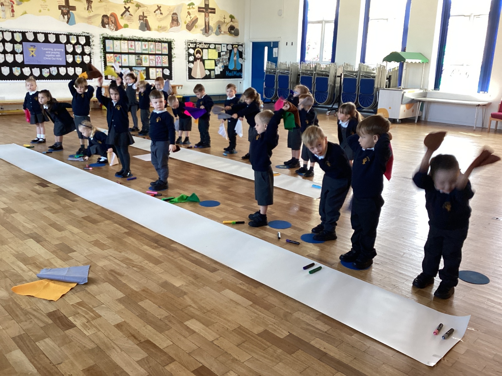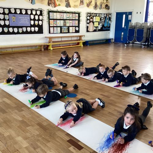 The children have enjoyed taking part in squiggle whilst you wiggle. Using our flipper flappers in both hands while making movements with our arms up and down and side to side. This helps with writing the letters i,l,t. Once we have danced we make these movements on paper holding a pen in both hands.