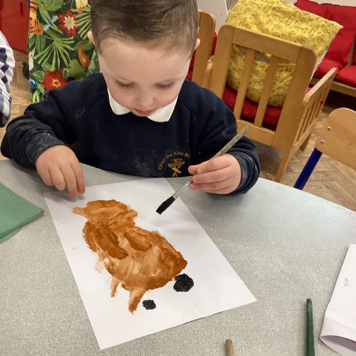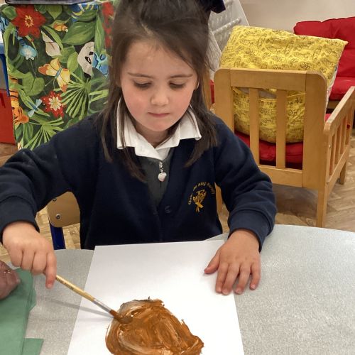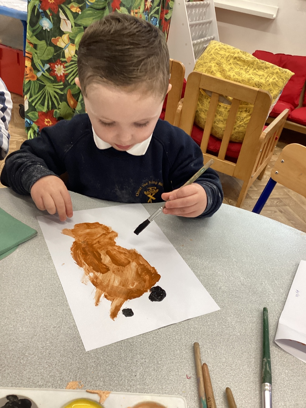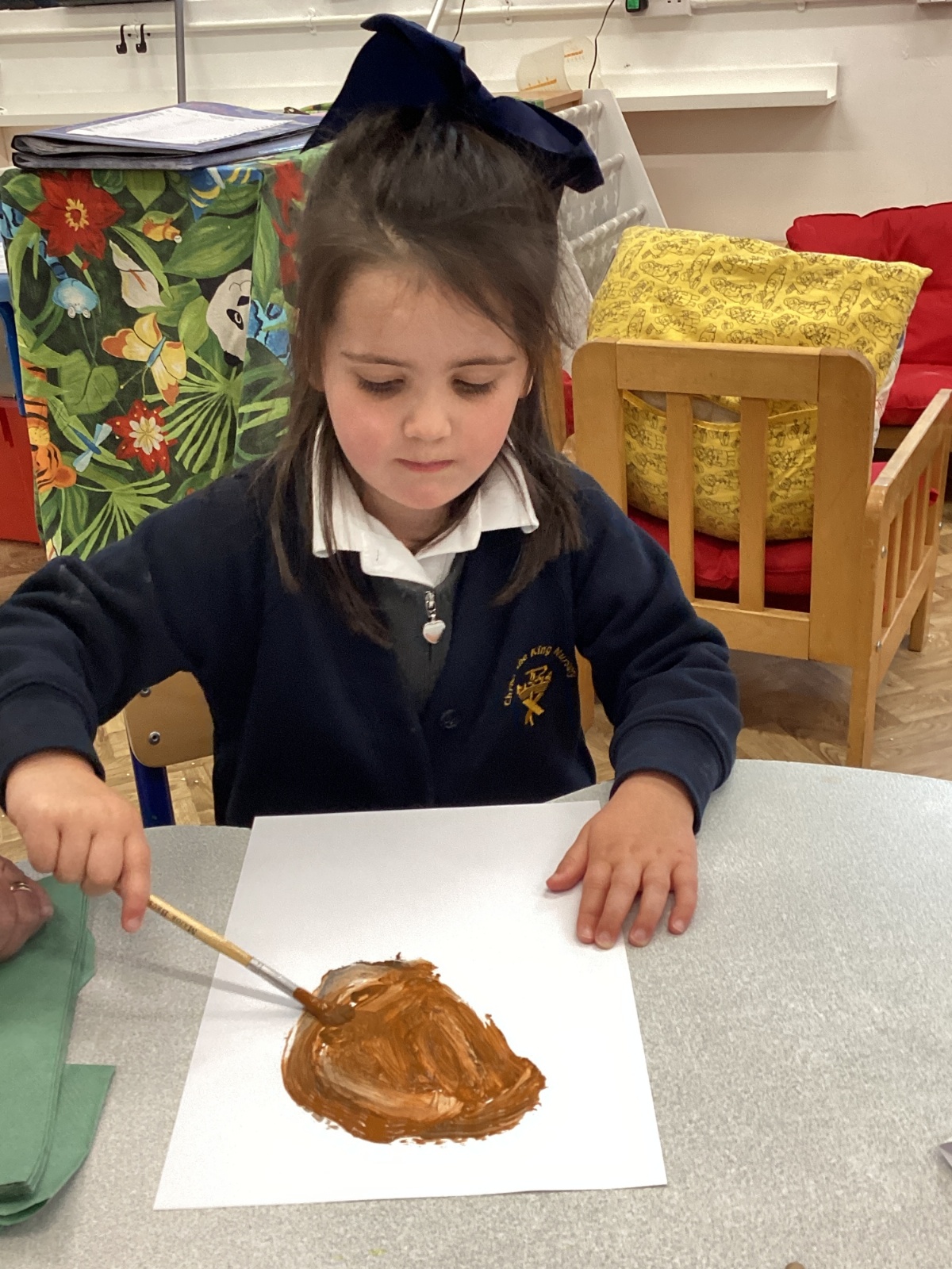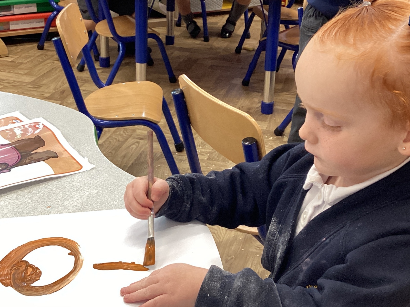This week in Nursery our focus has been on the fairy tale Goldilocks and the Three Bears.  We enjoyed listening to the story and choosing our favourite character to paint.