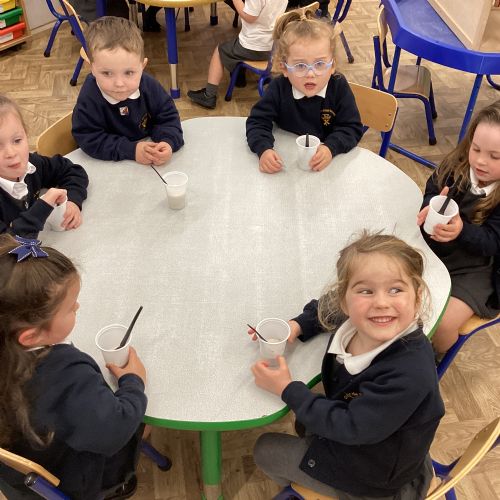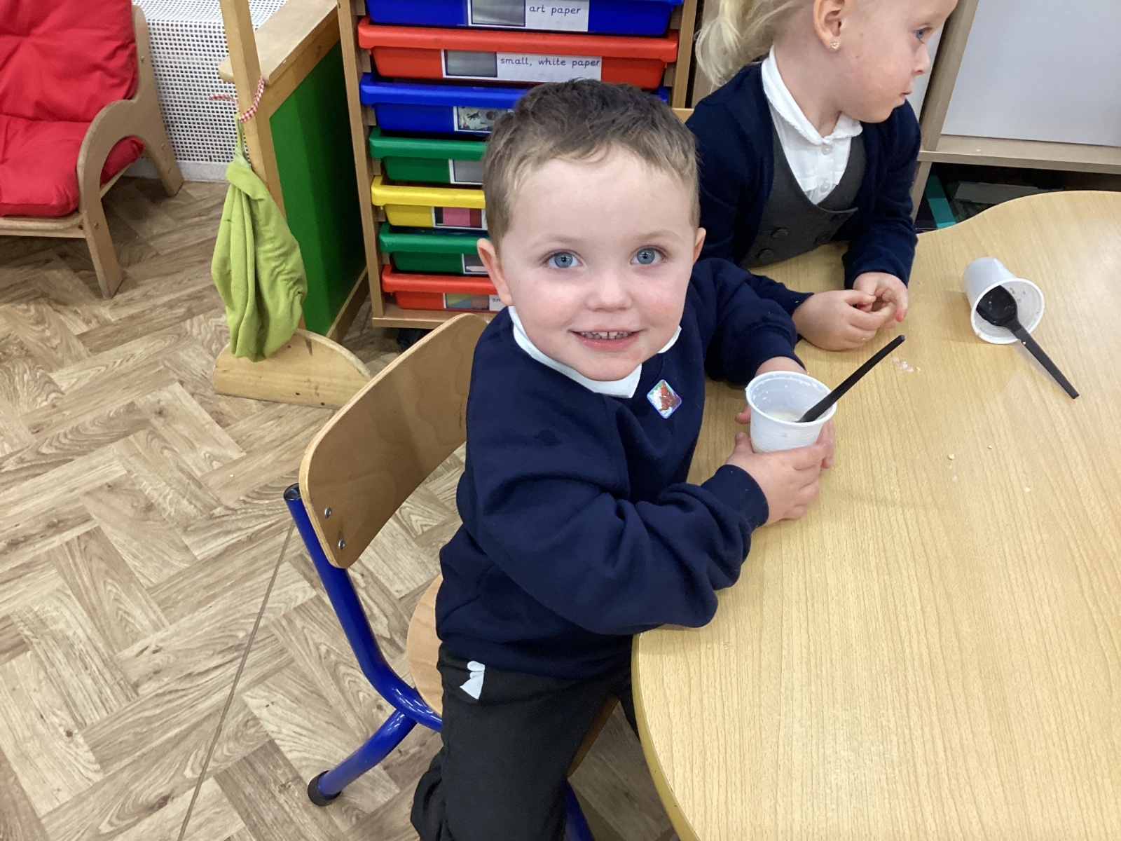 After reading the story of Goldilockds and the Three Bears we made and tasted some porridge.