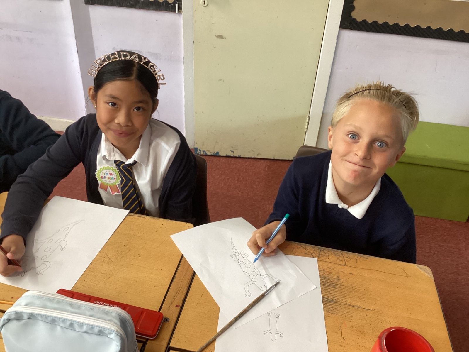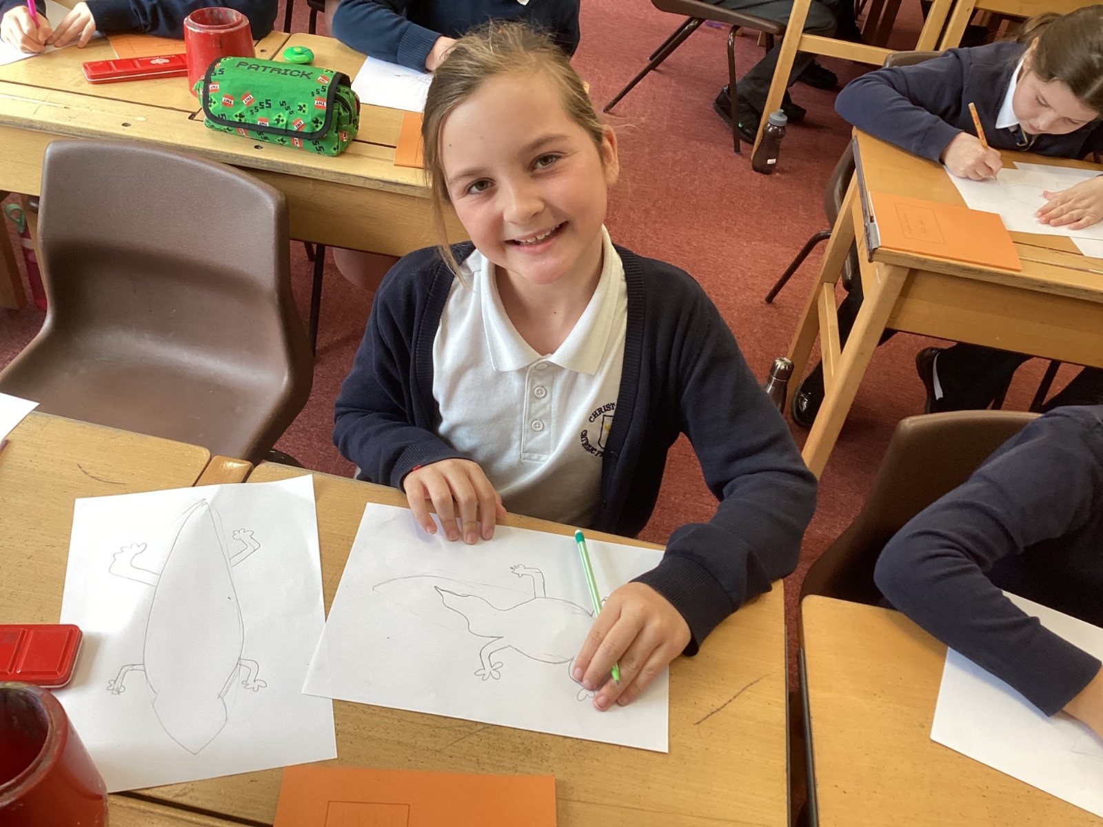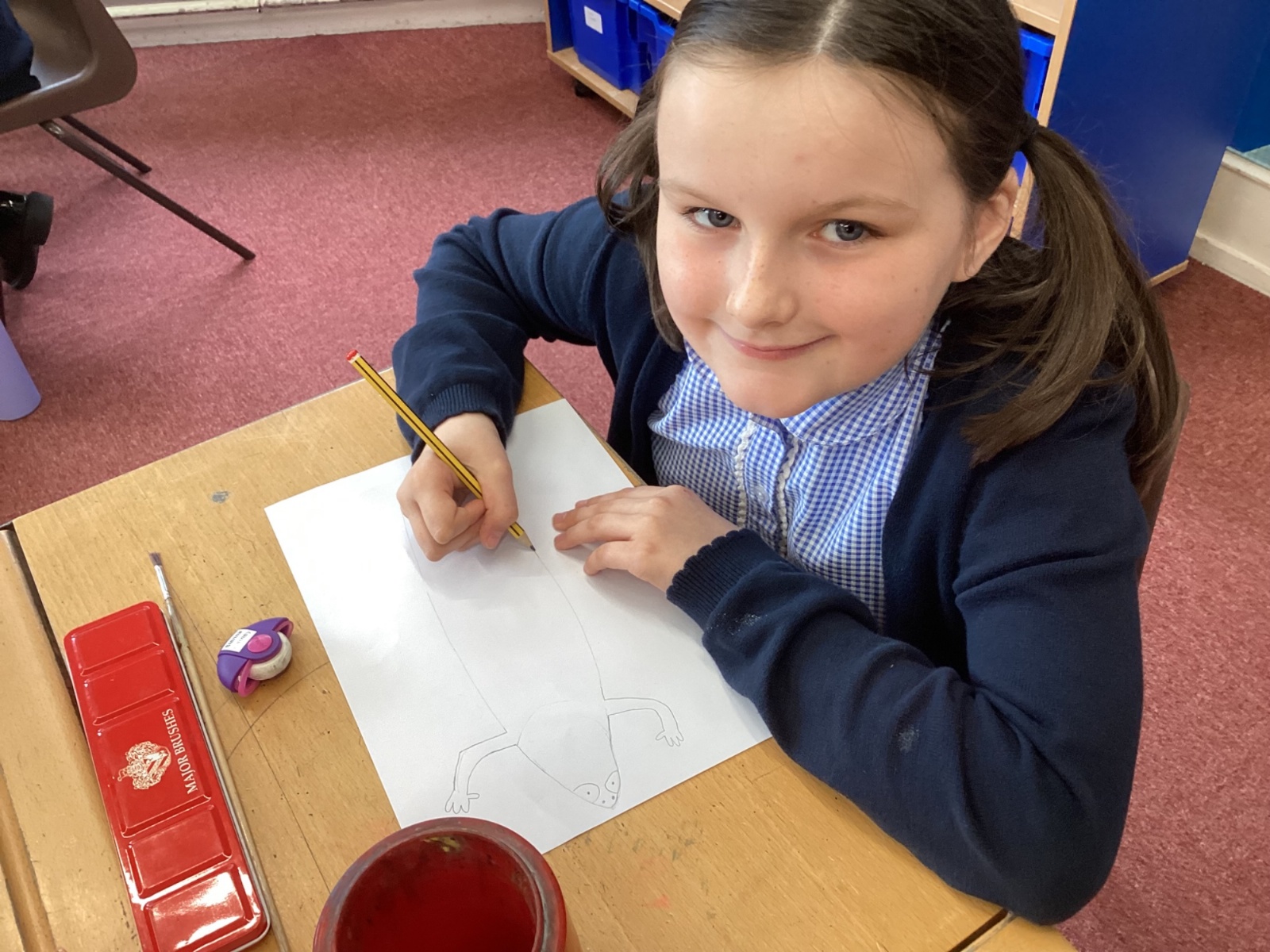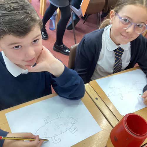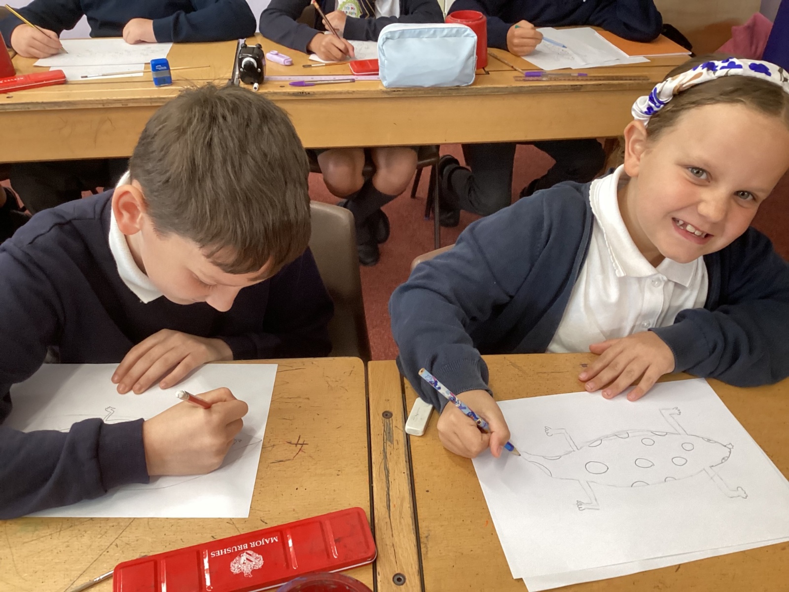 We used pencil and watercolour paint to create our own yellow spotted lizards, inspired by our reading of Holes.