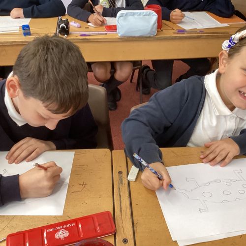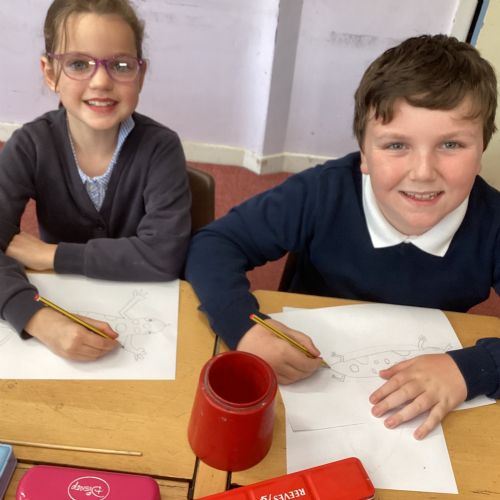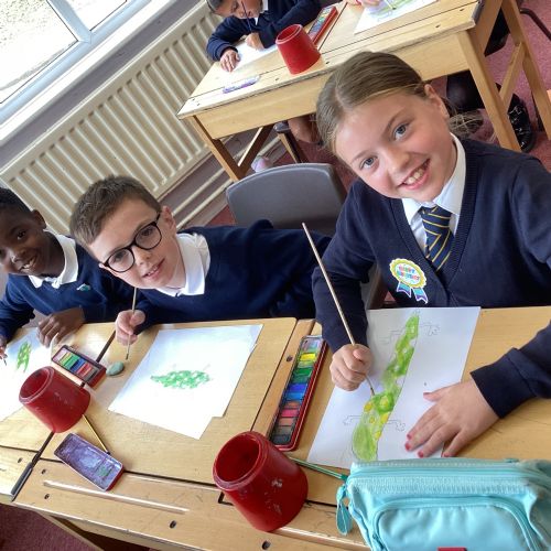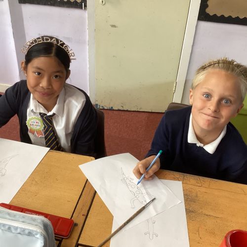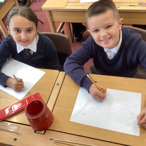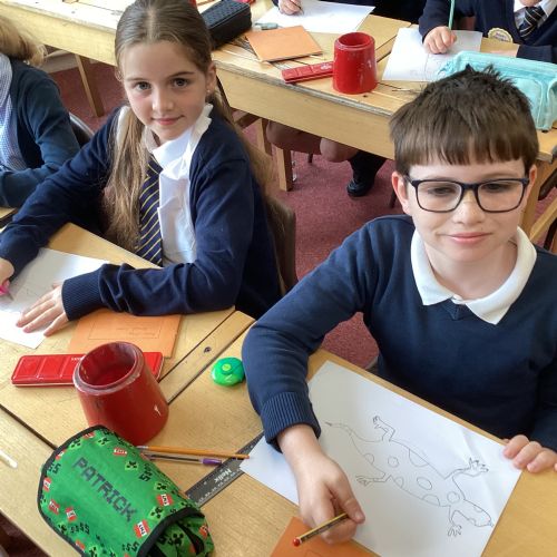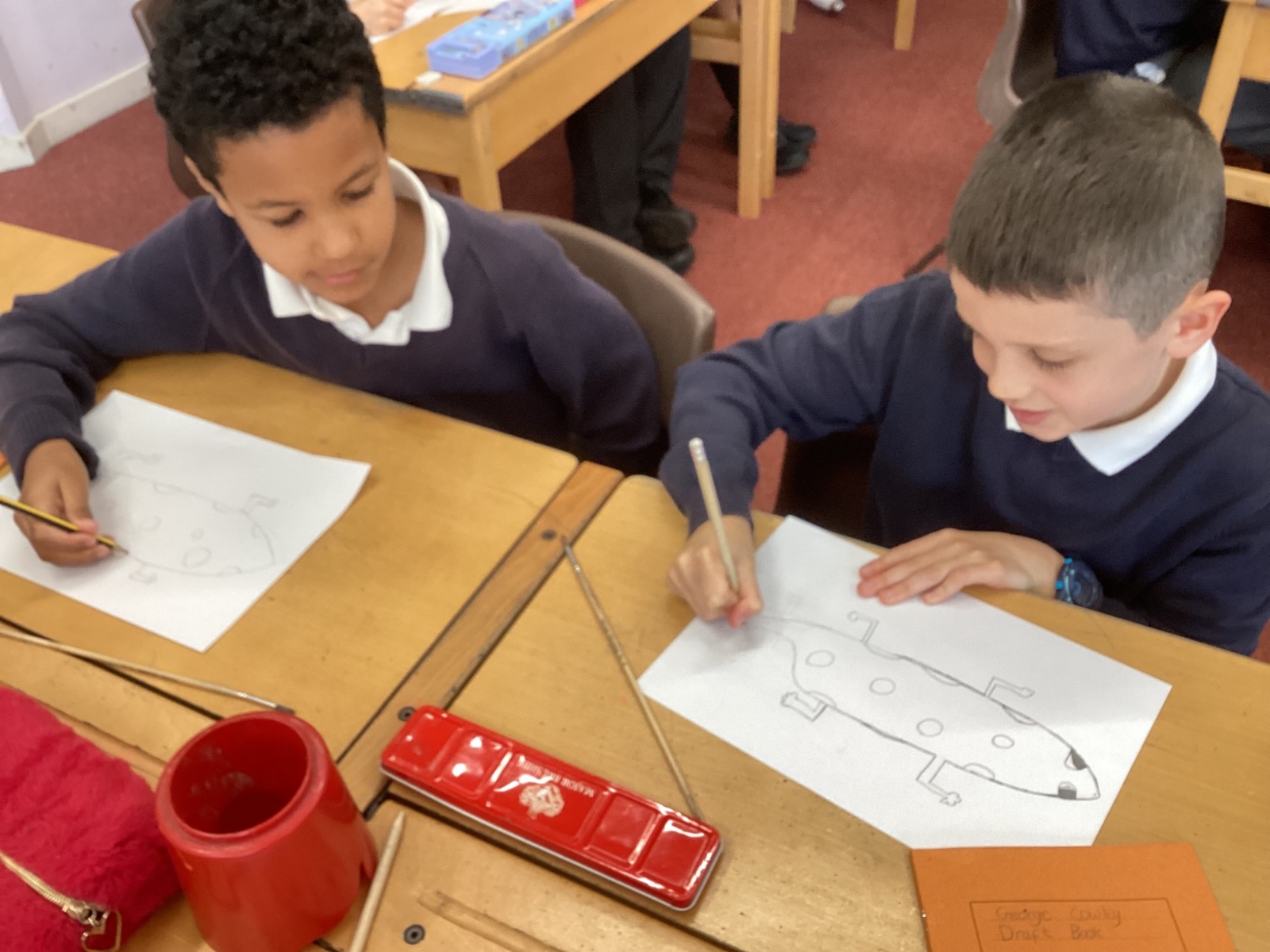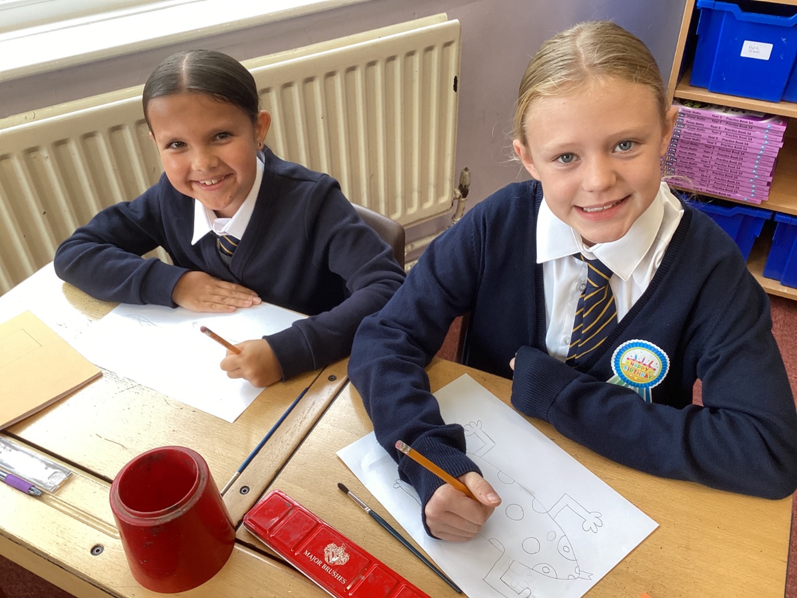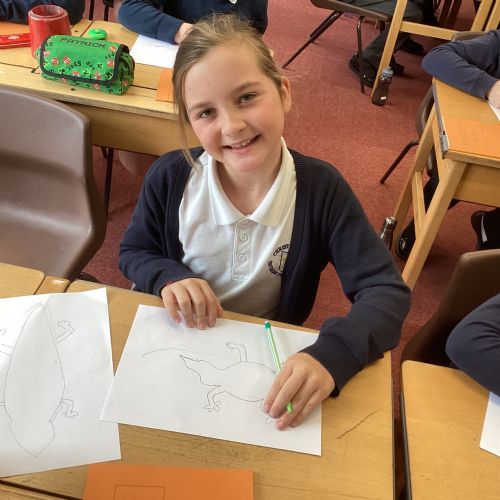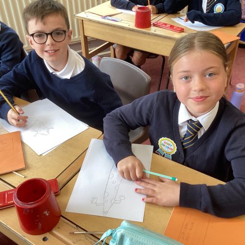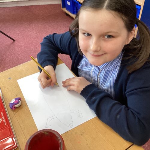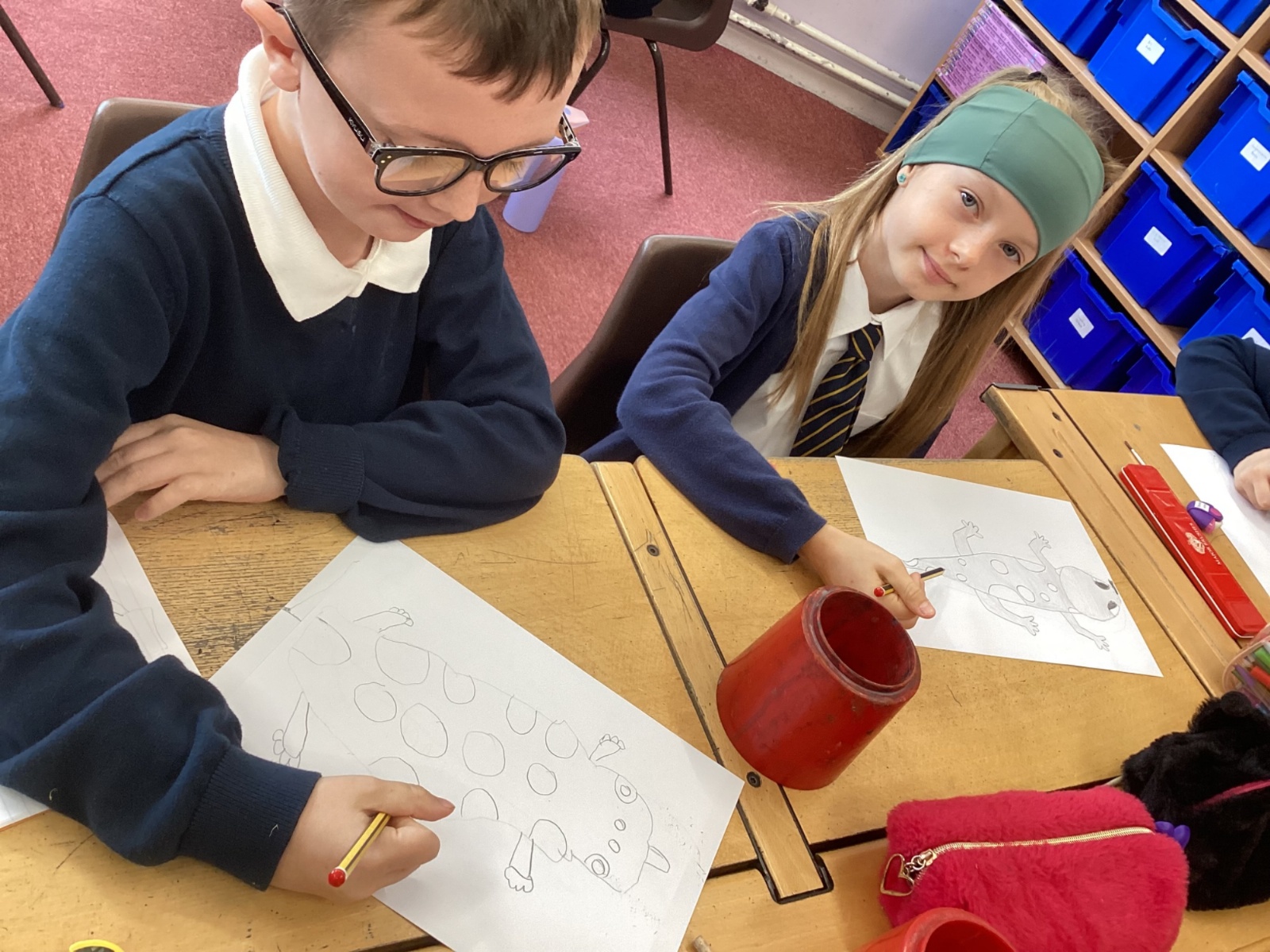 We used pencil and watercolour paint to create our own yellow spotted lizards, inspired by our reading of Holes.