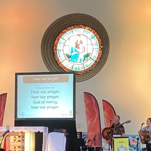 We went in a special pilgrimage to Holy Family Church to celebrate the Jubilee Year of Hope. We joined with year 5 pupils from other schools for this faith filled event.