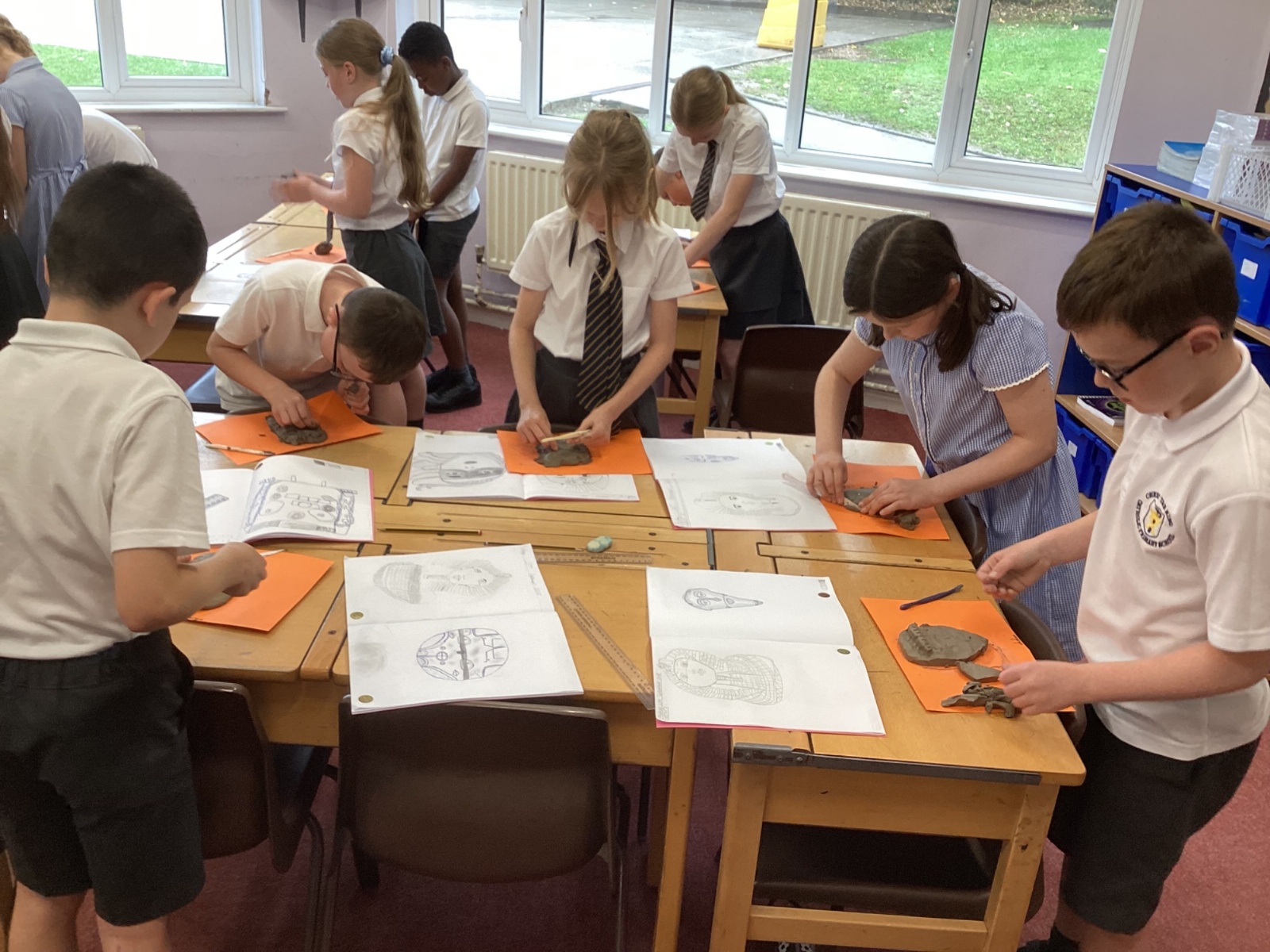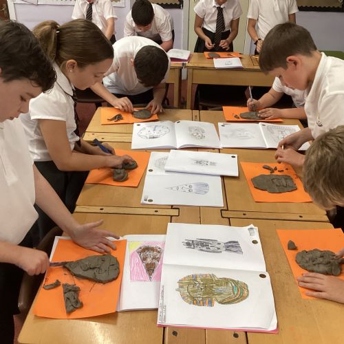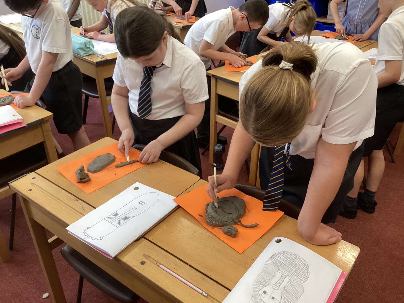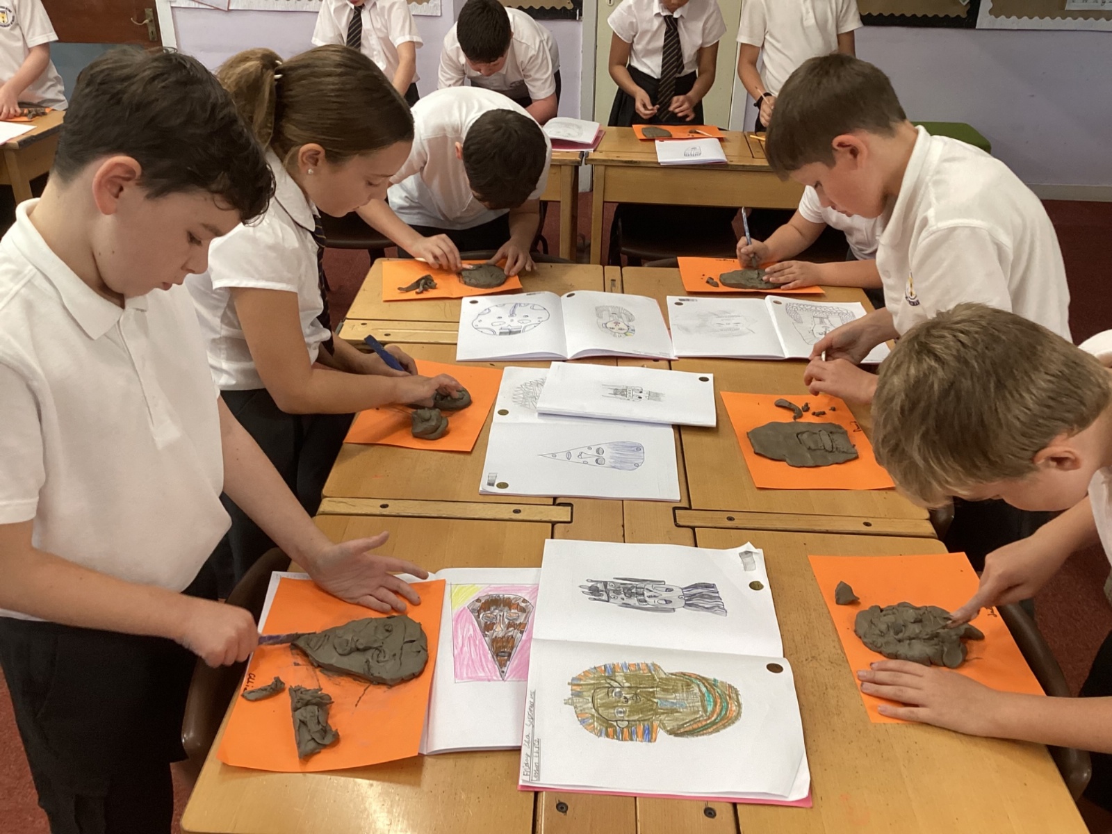 As part of our masks project, we studied Egyptian masks and designed our own clay models inspired by them.