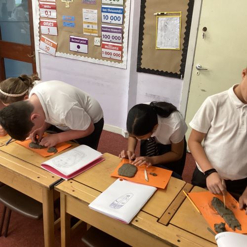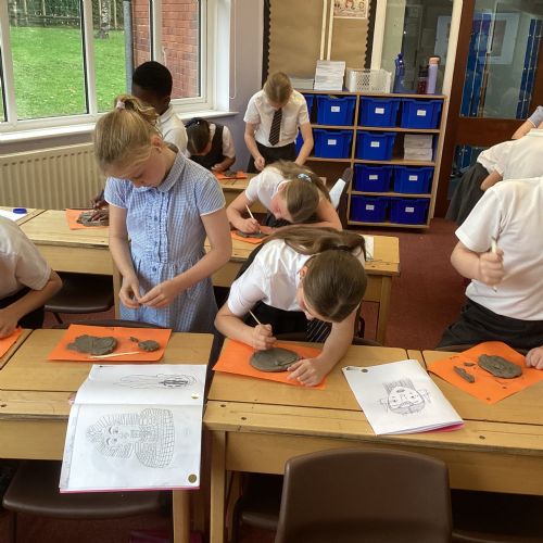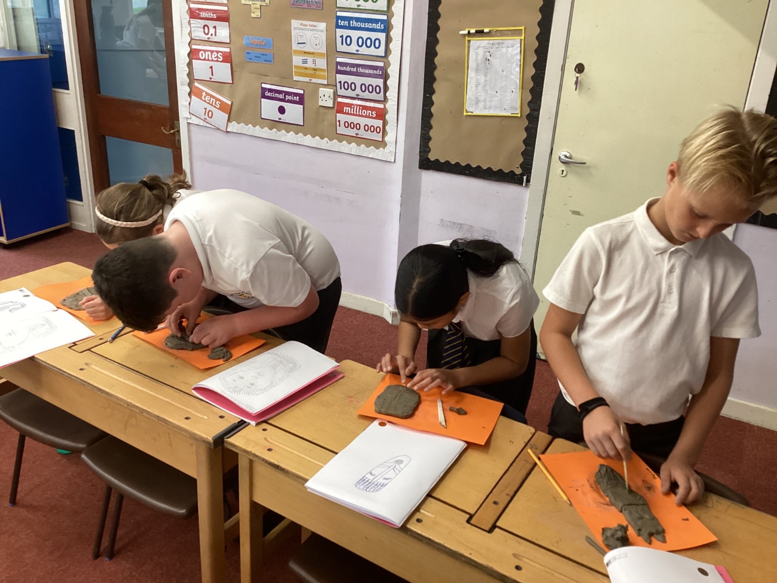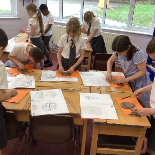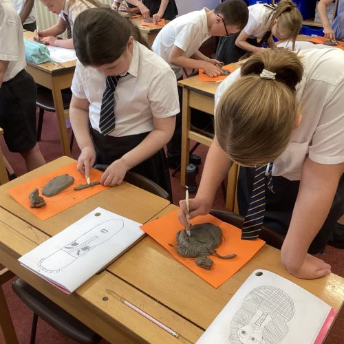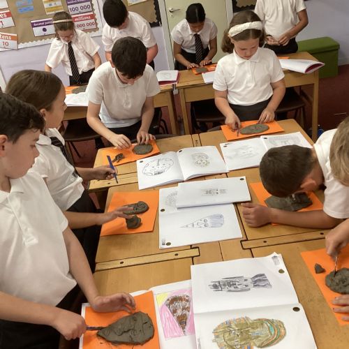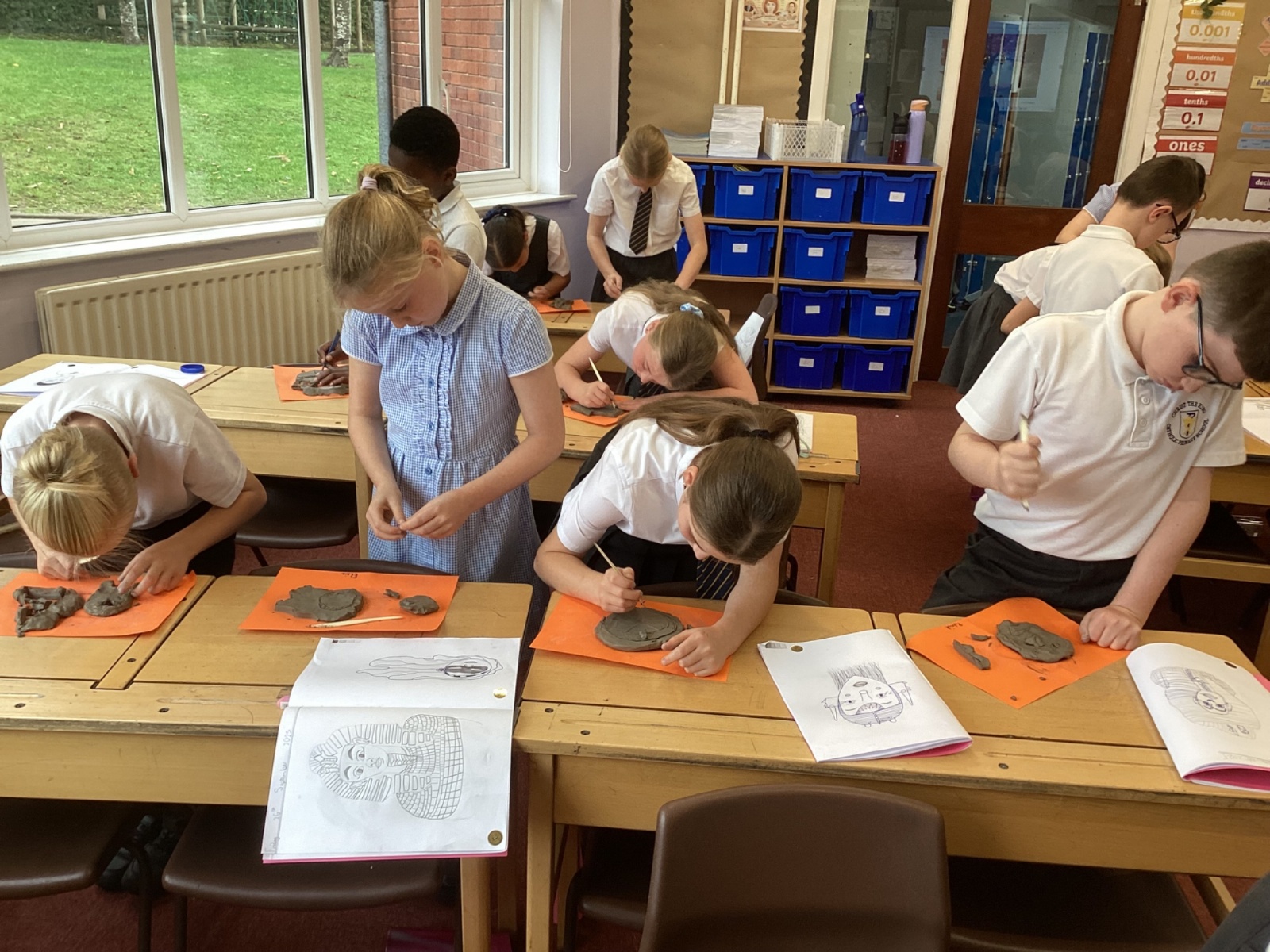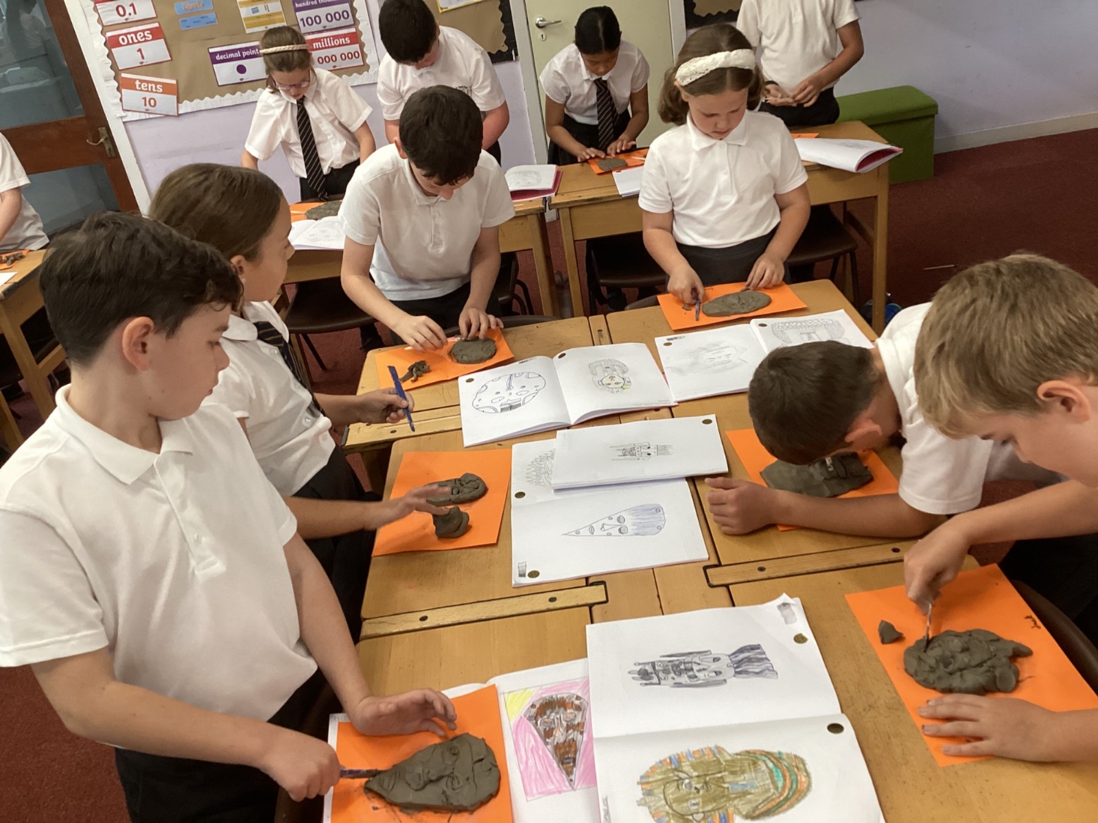 As part of our masks project, we studied Egyptian masks and designed our own clay models inspired by them.