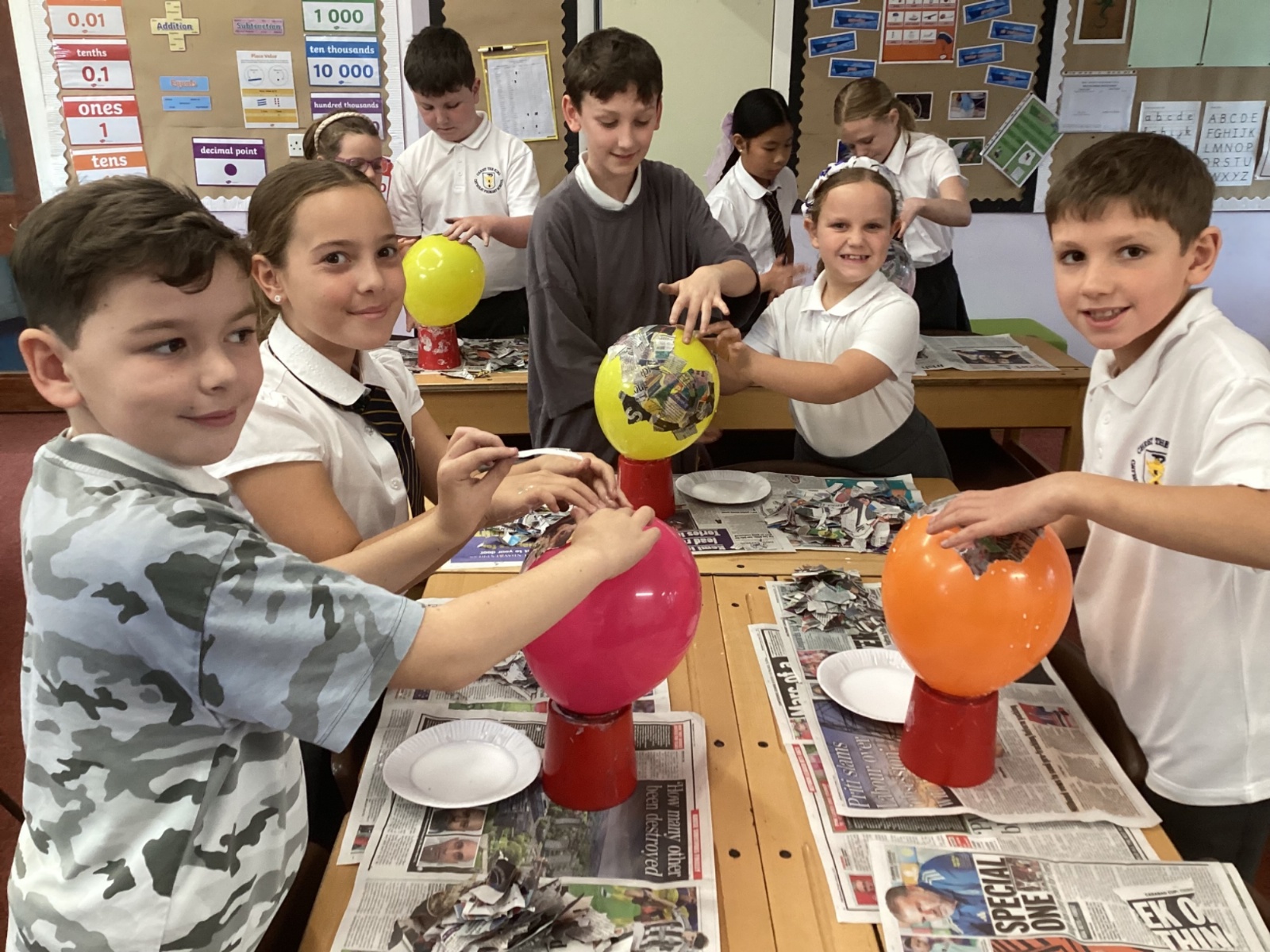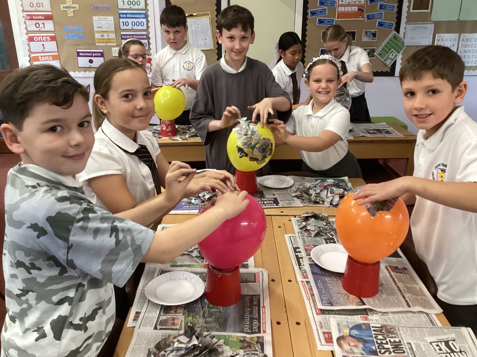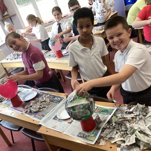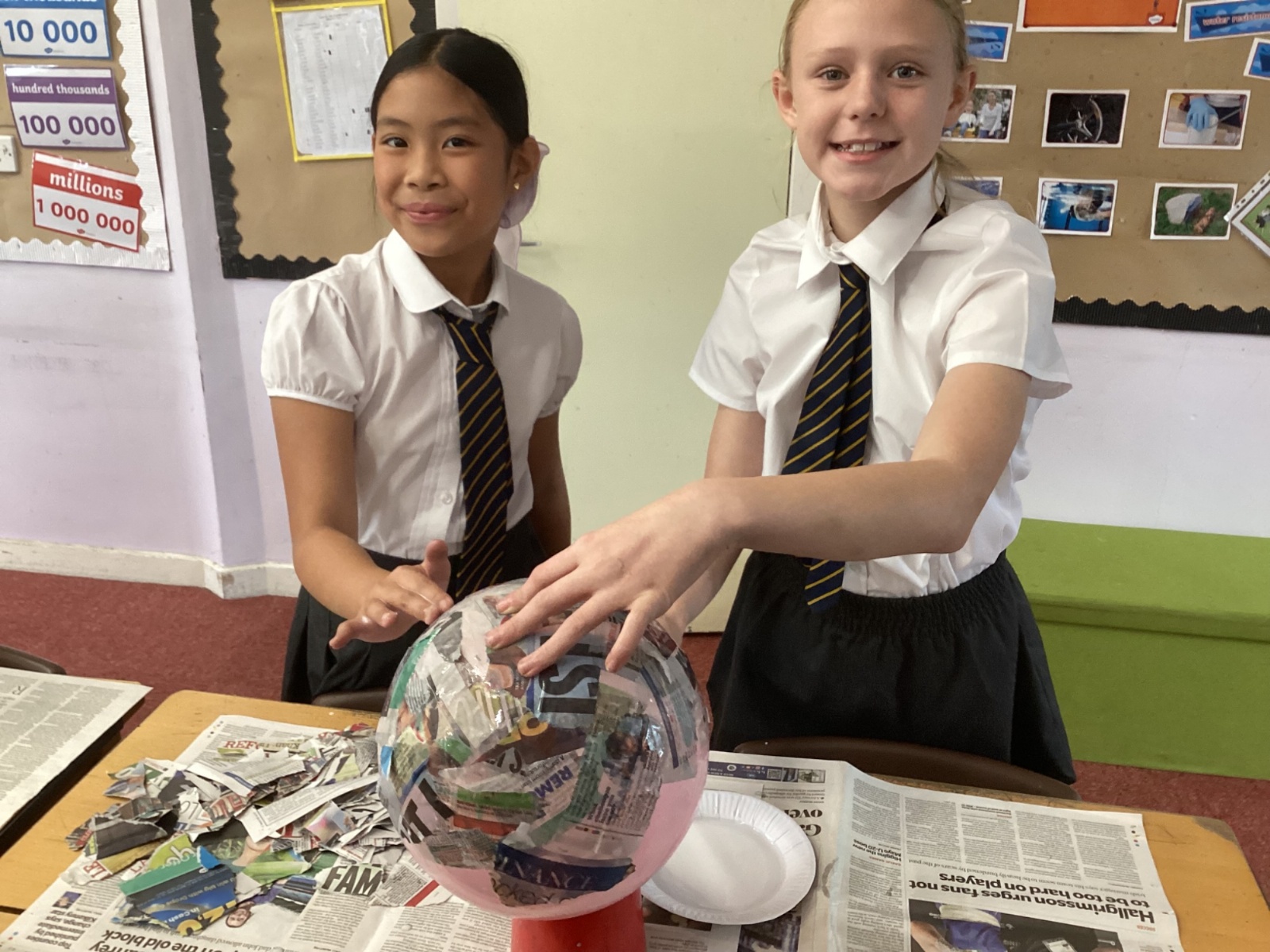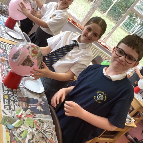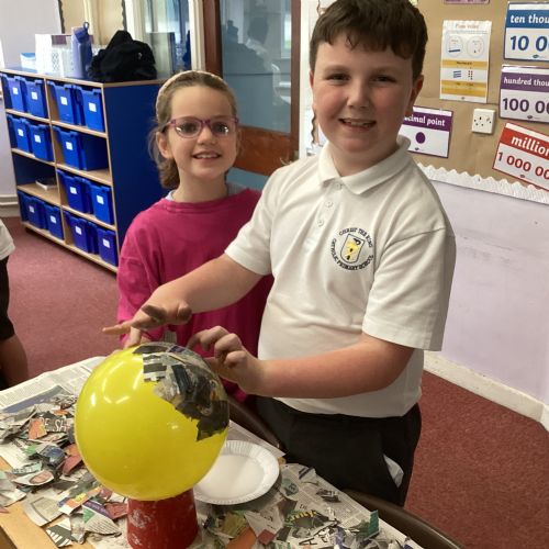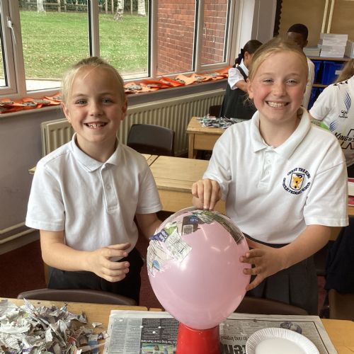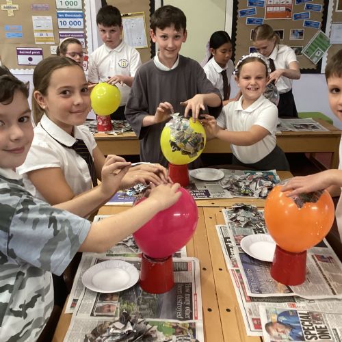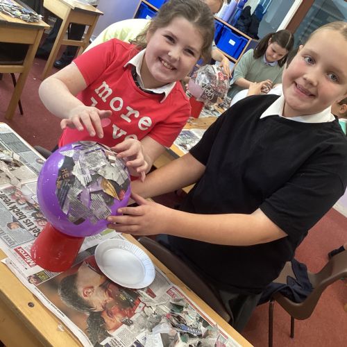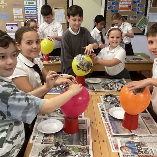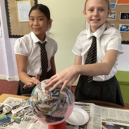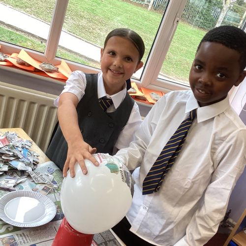 We worked with a partner to create papier-mache balloons. Once they are dry we will paint and transform them into our own Egyptian inspired masks.