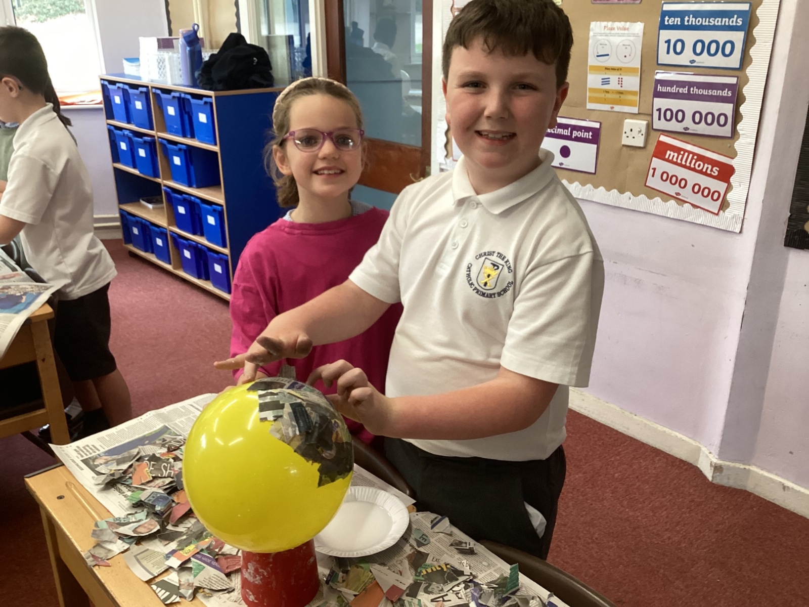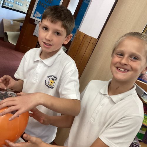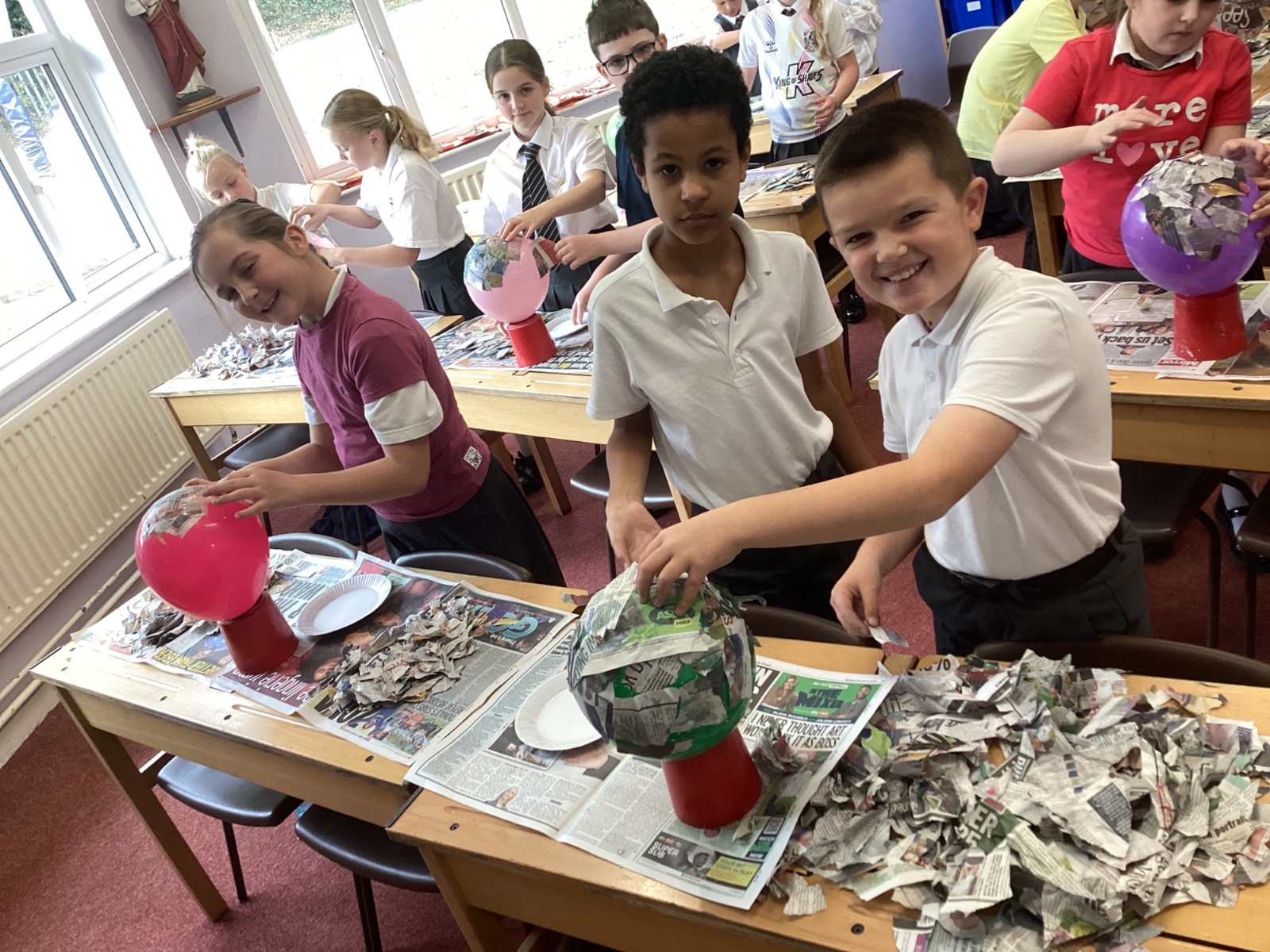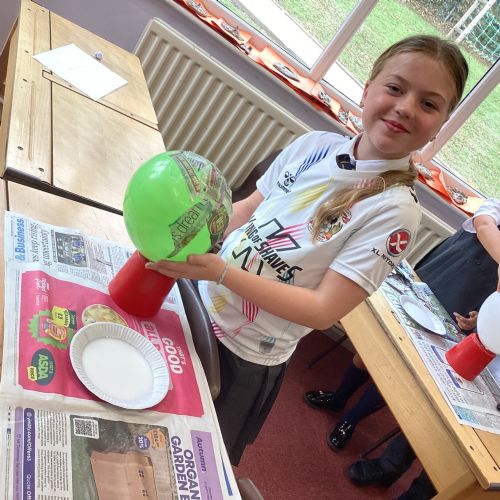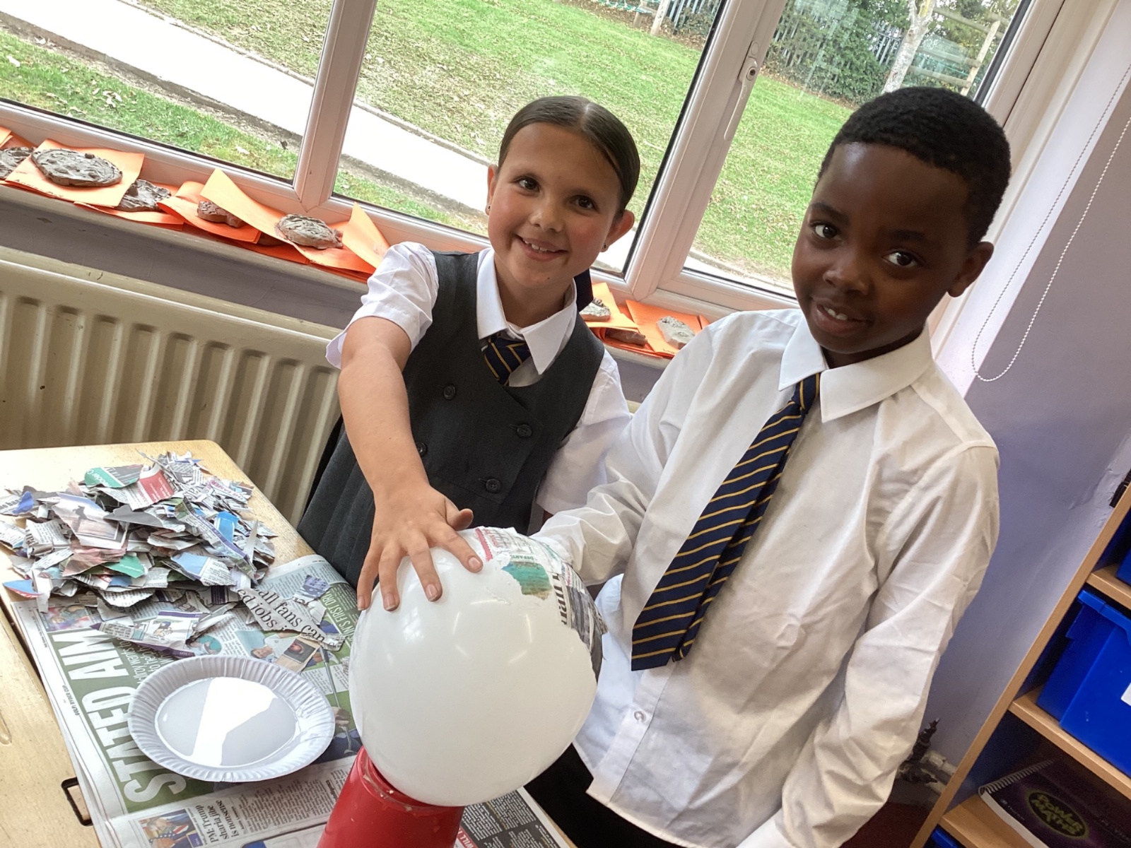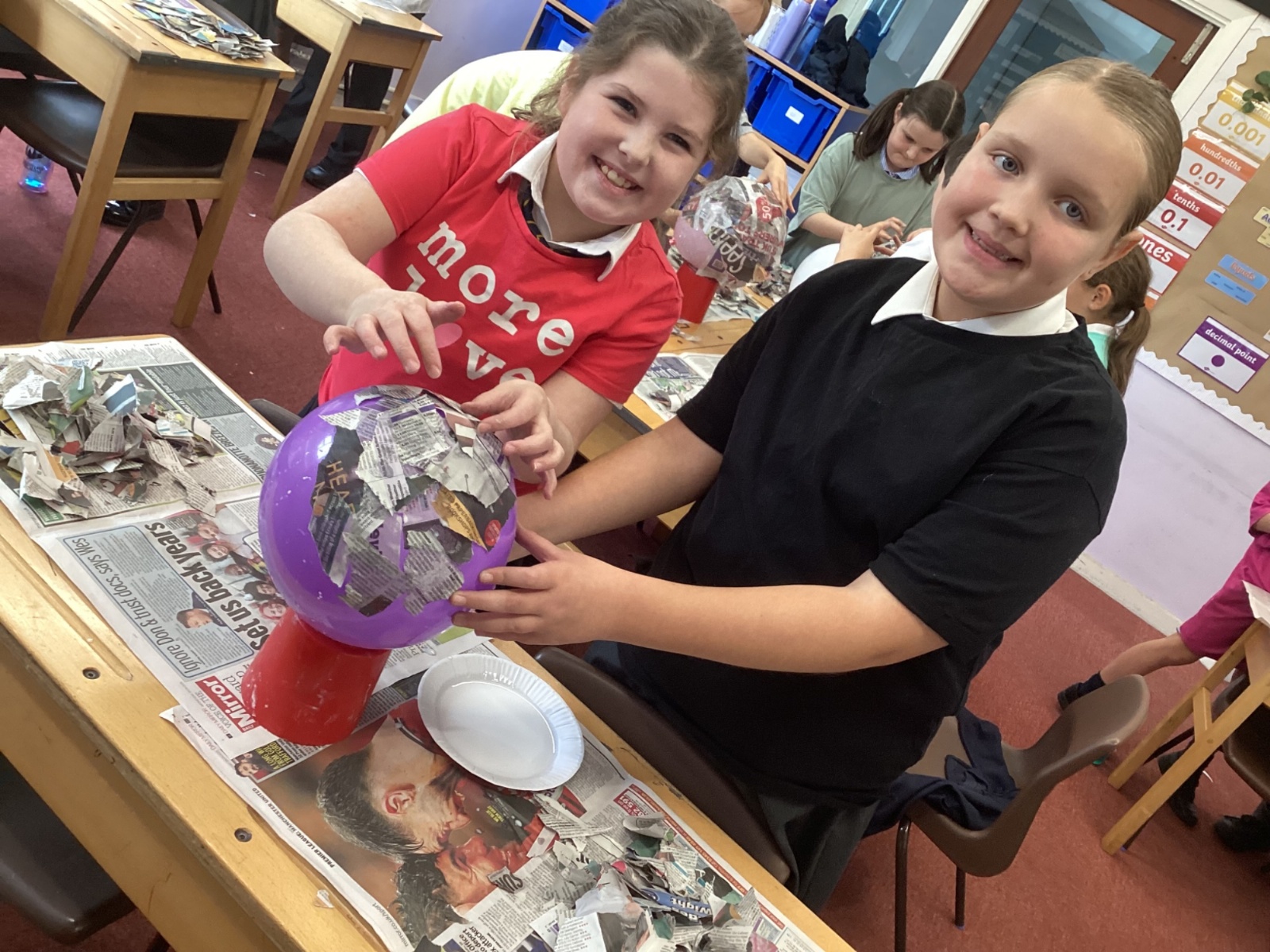 We worked with a partner to create papier-mache balloons. Once they are dry we will paint and transform them into our own Egyptian inspired masks.
