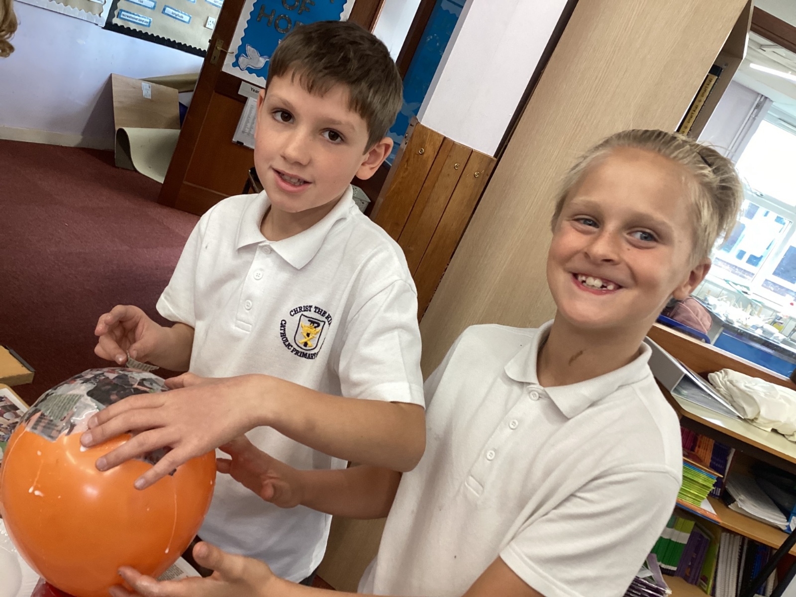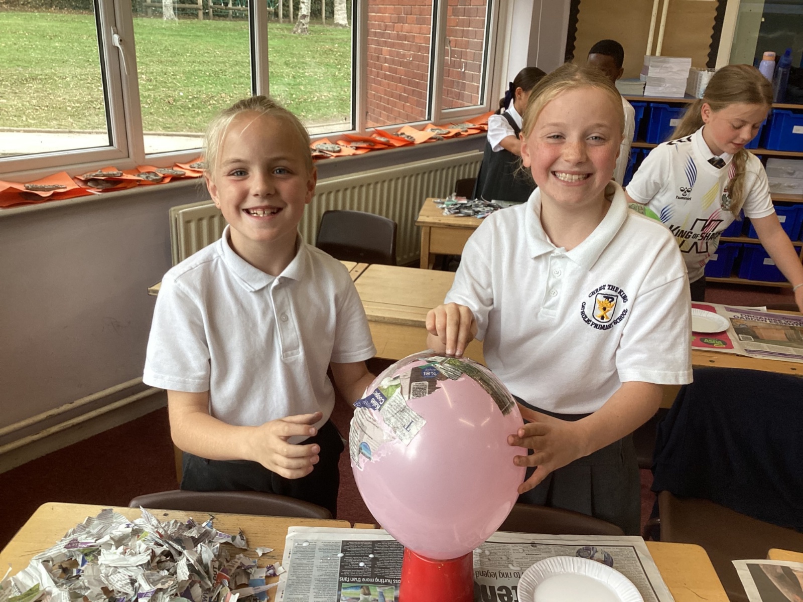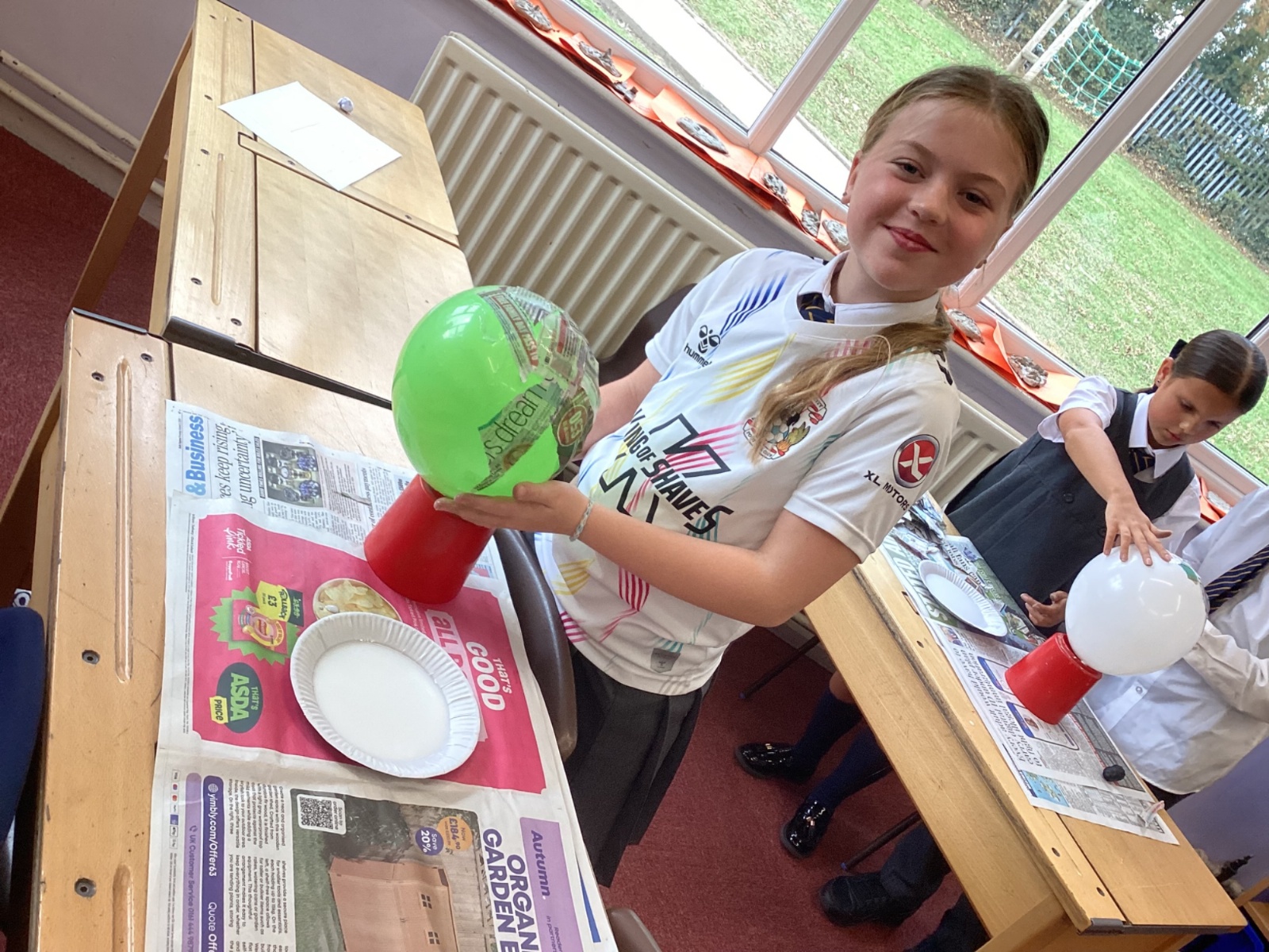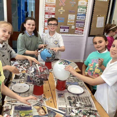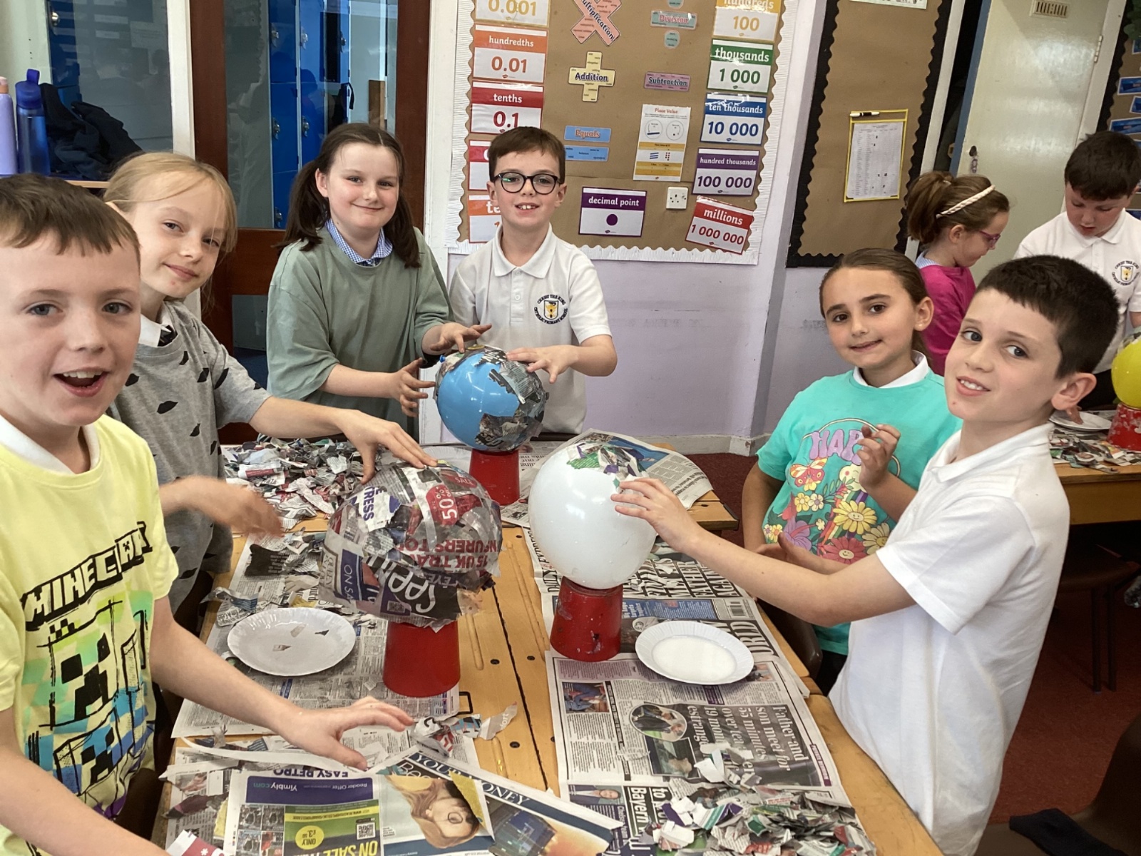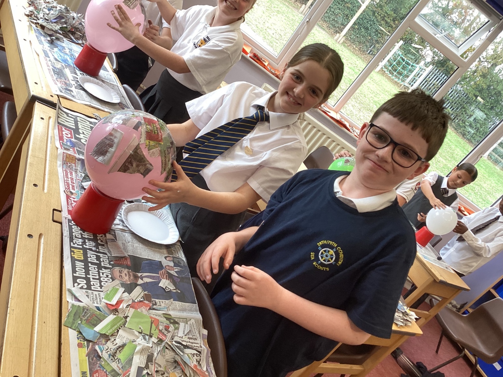 We worked with a partner to create papier-mache balloons. Once they are dry we will paint and transform them into our own Egyptian inspired masks.