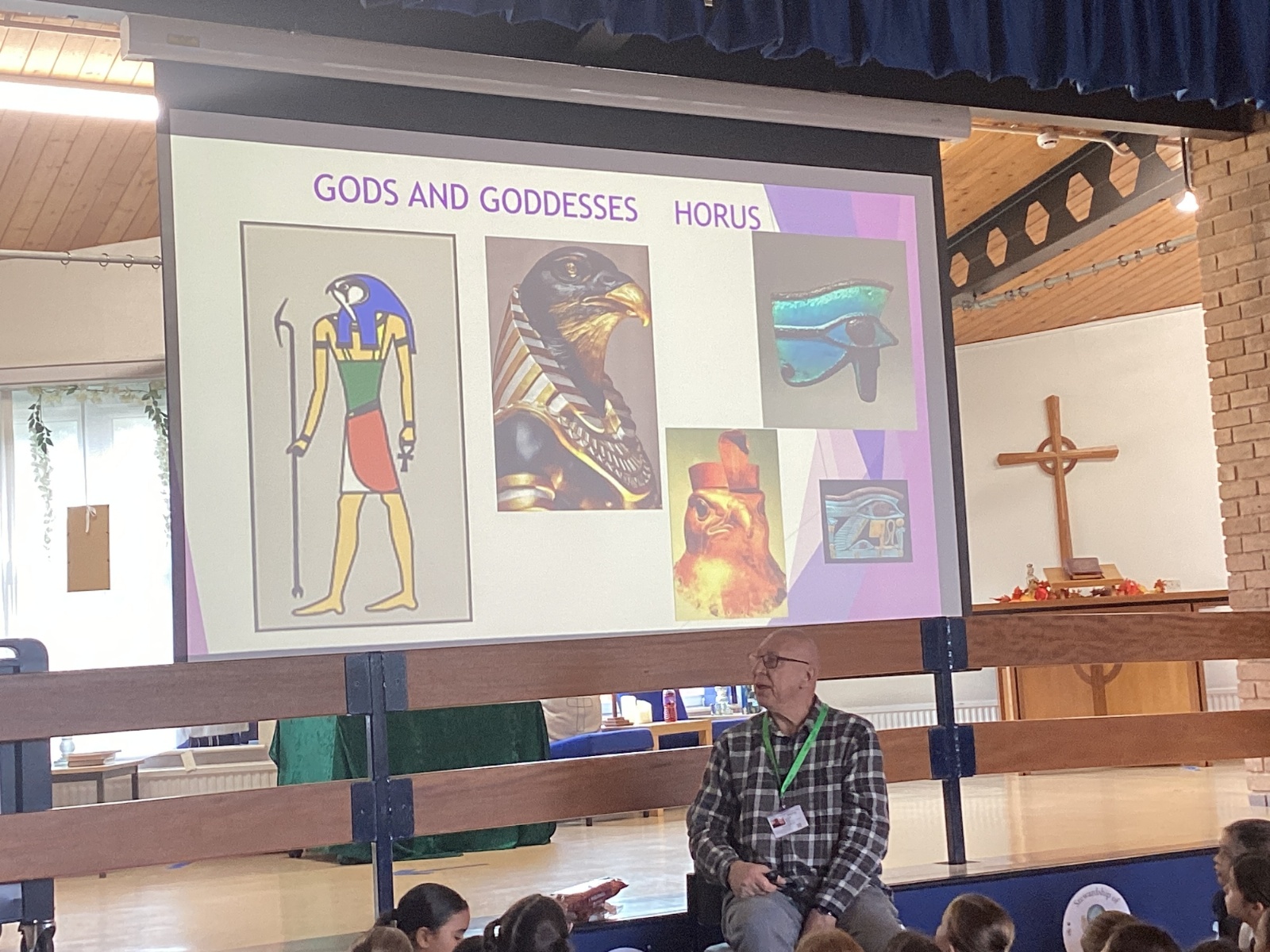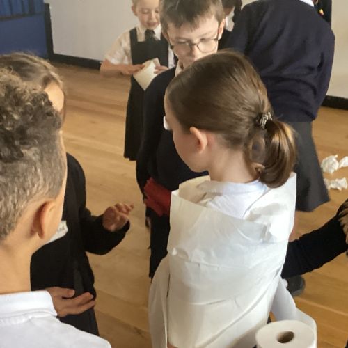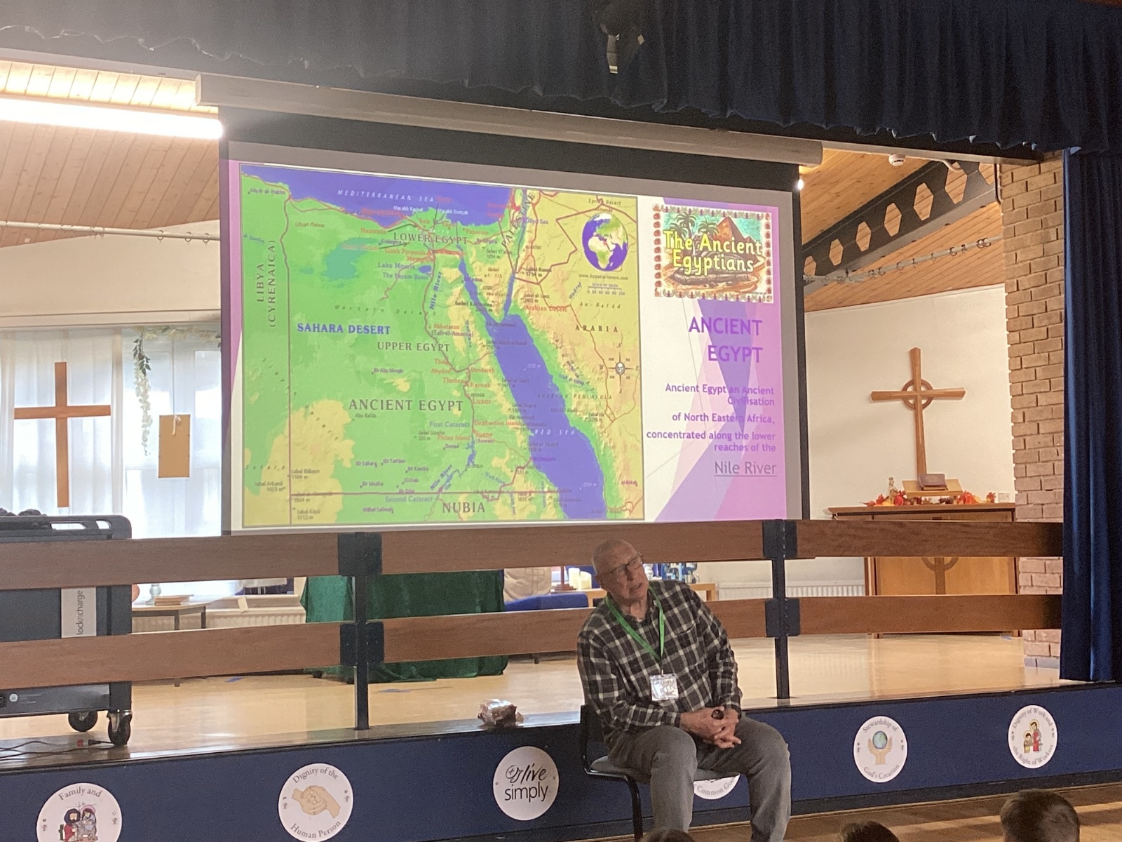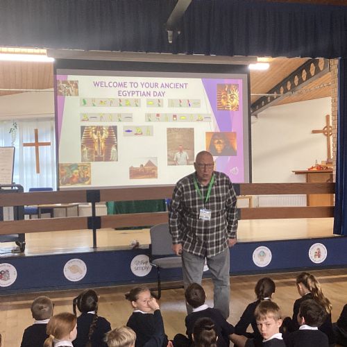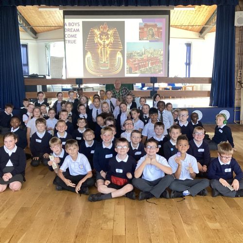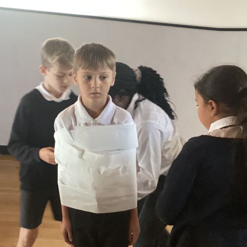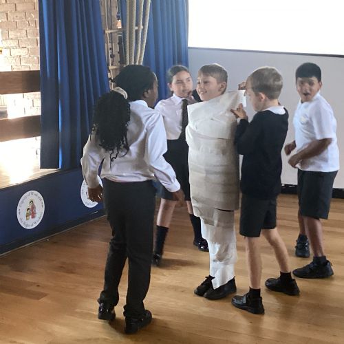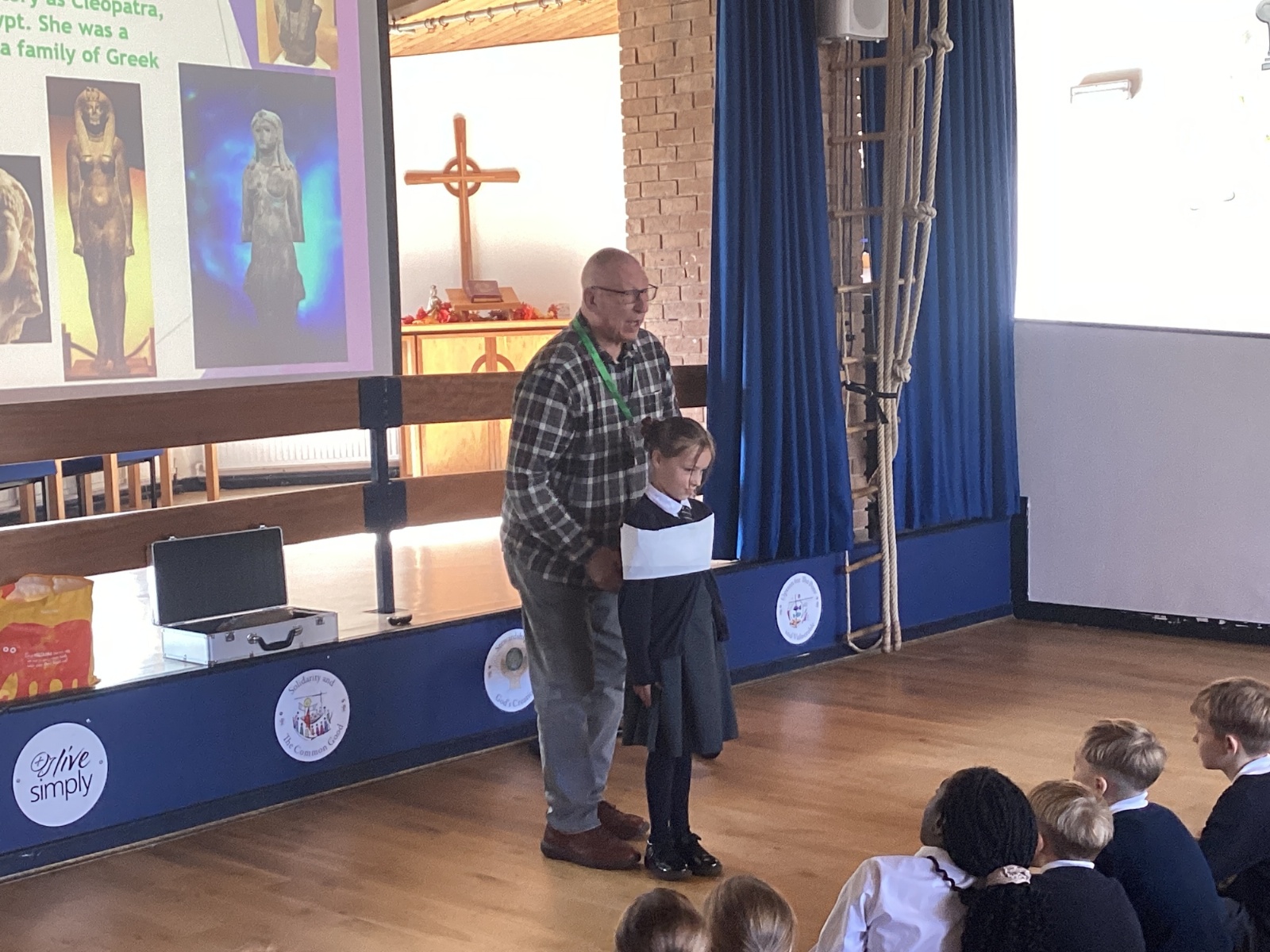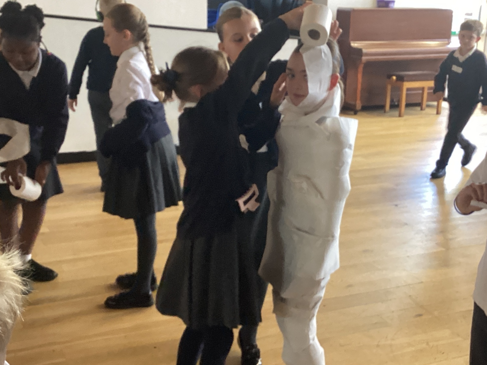 Today, Mr Egypt came into school to teach us all about the Ancient Egyptians and how they lived and died.  It was very interesting.  We were able to hold some ancient artifacts, including a coin once held by Alexander the Great!!  We did an Egyptian dance and mummified some of our friends.