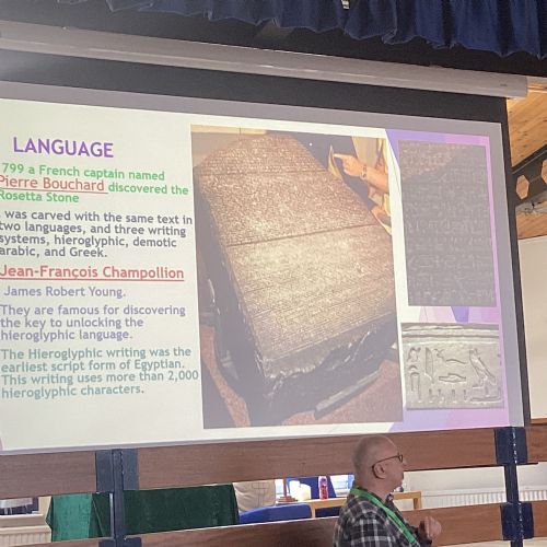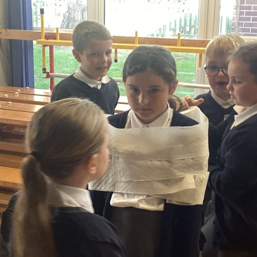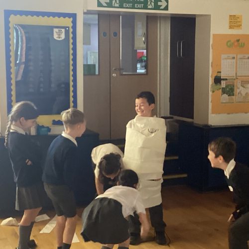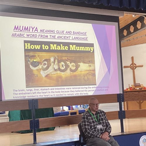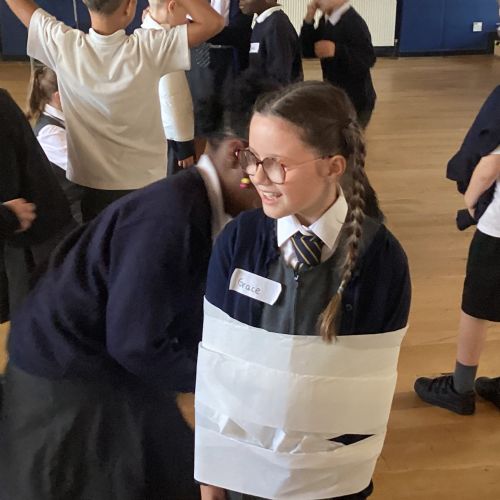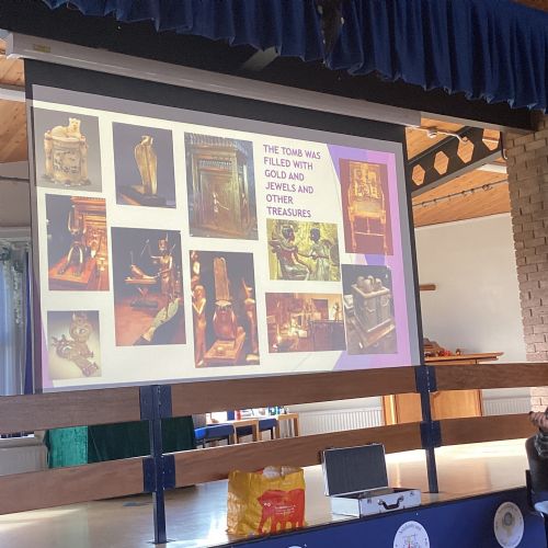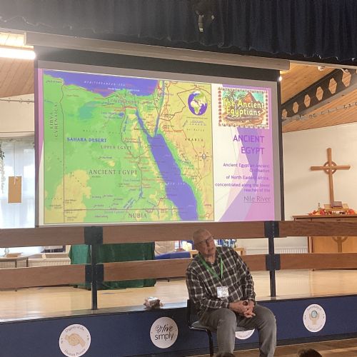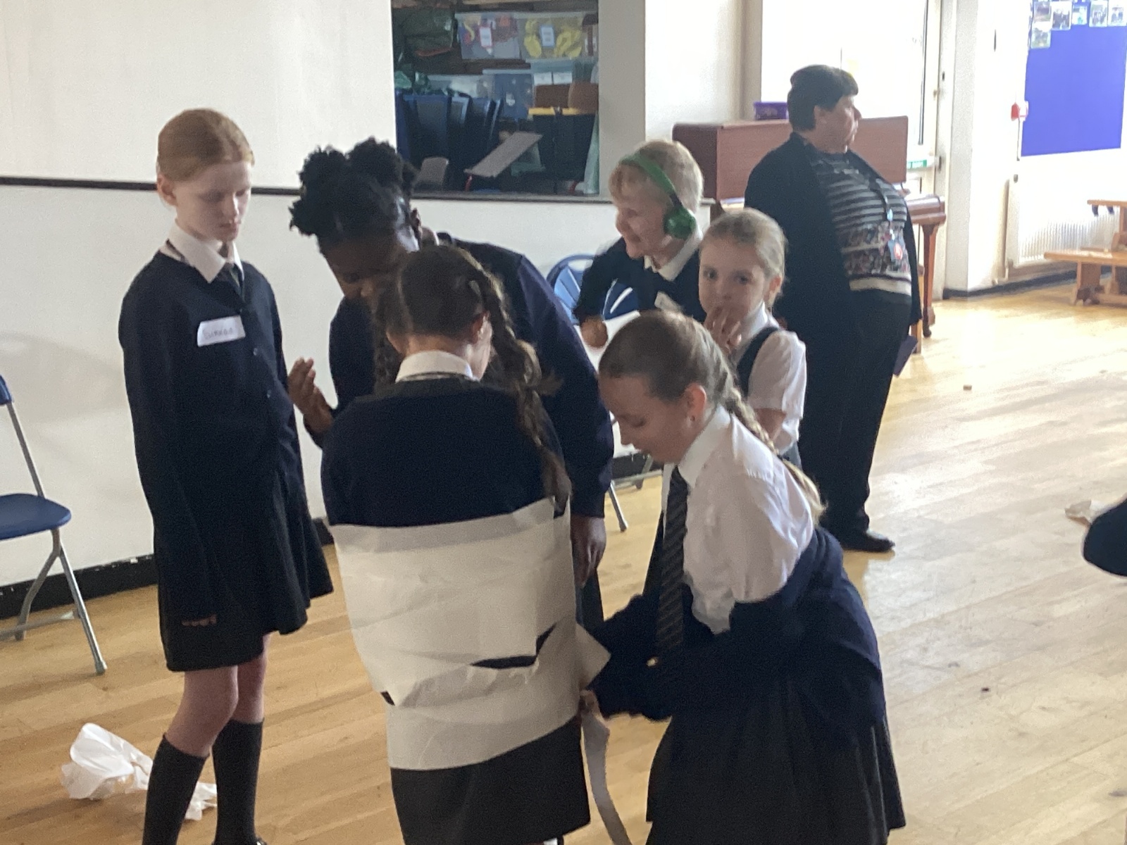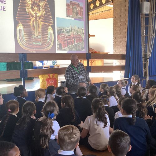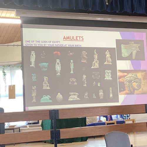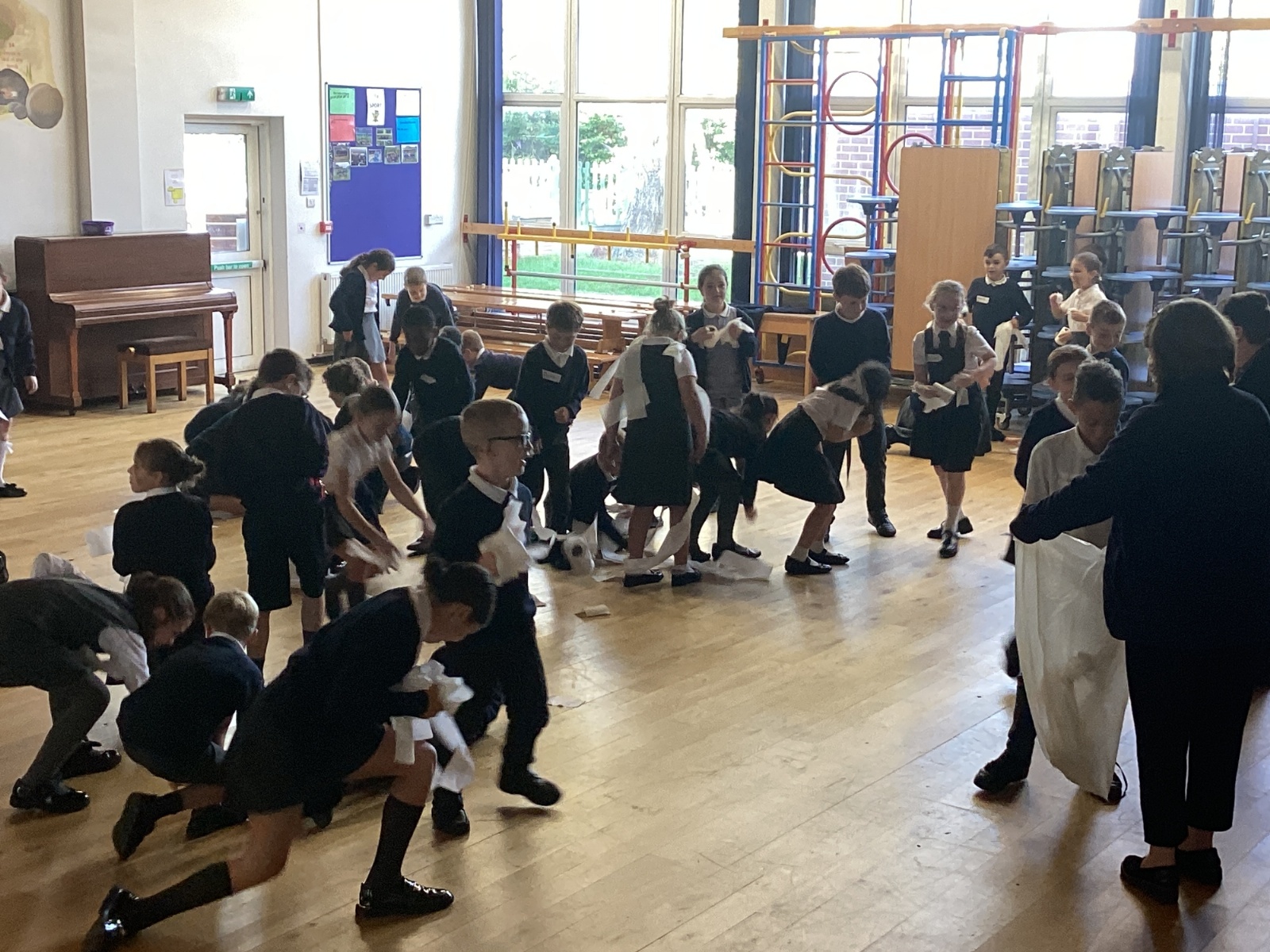 Today, Mr Egypt came into school to teach us all about the Ancient Egyptians and how they lived and died.  It was very interesting.  We were able to hold some ancient artifacts, including a coin once held by Alexander the Great!!  We did an Egyptian dance and mummified some of our friends.