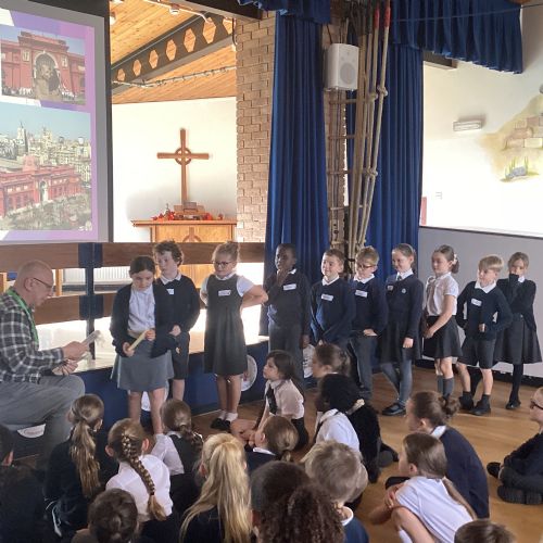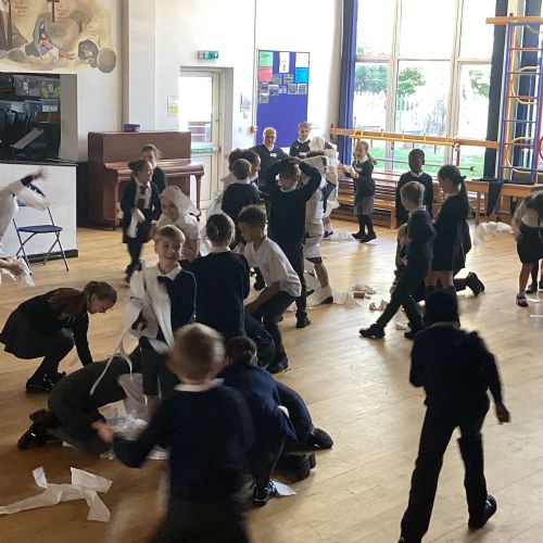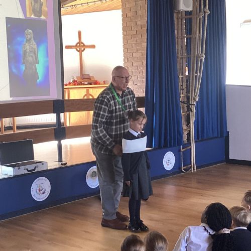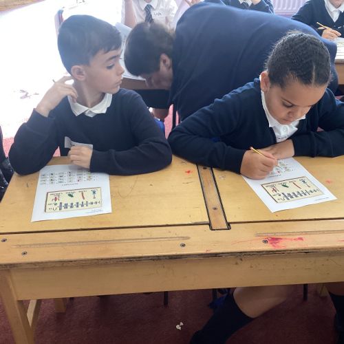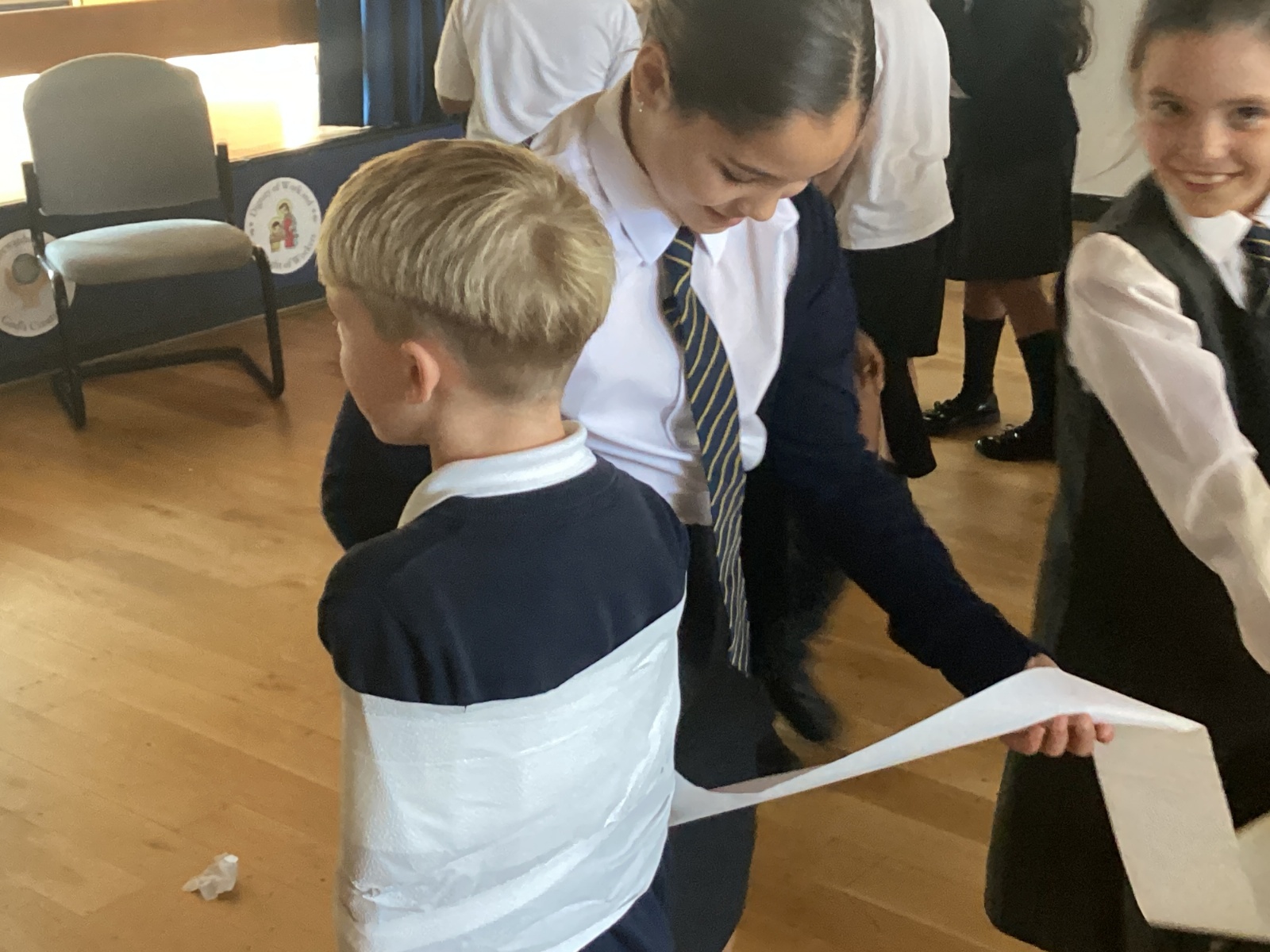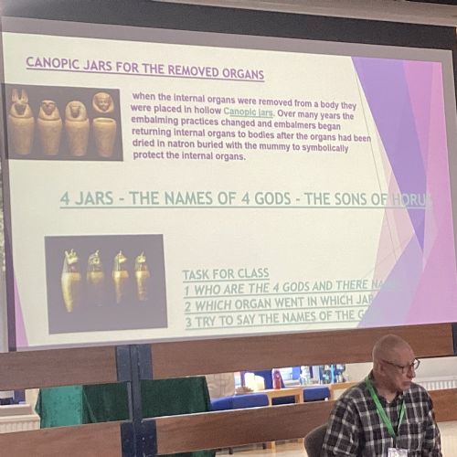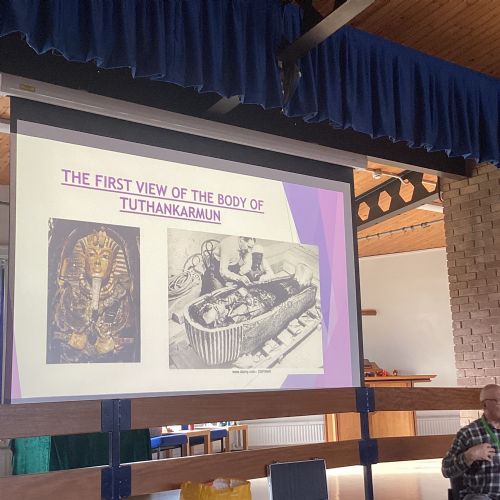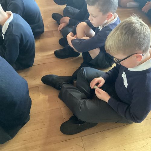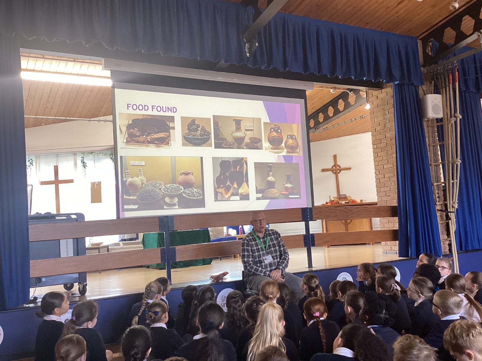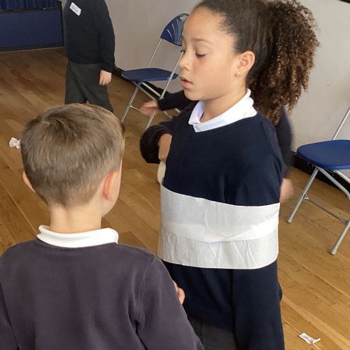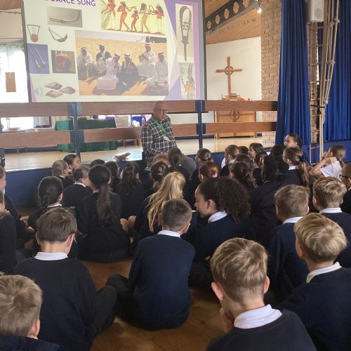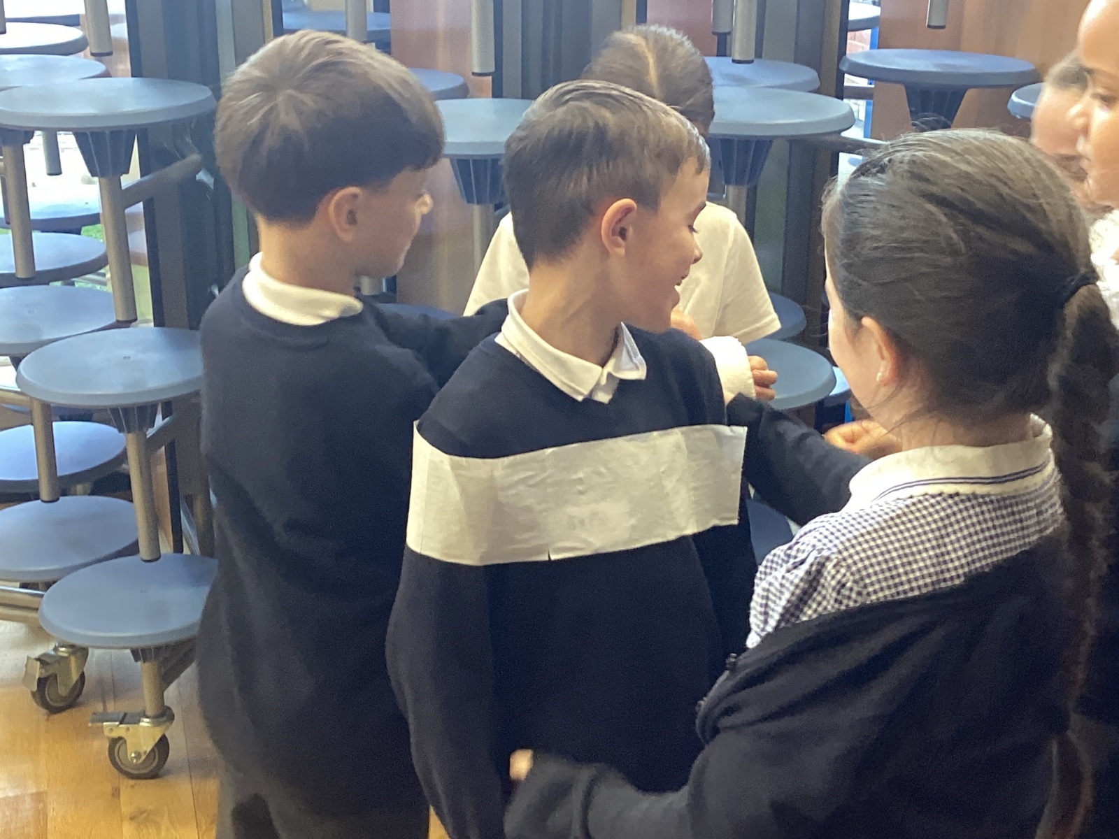 Today, Mr Egypt came into school to teach us all about the Ancient Egyptians and how they lived and died.  It was very interesting.  We were able to hold some ancient artifacts, including a coin once held by Alexander the Great!!  We did an Egyptian dance and mummified some of our friends.