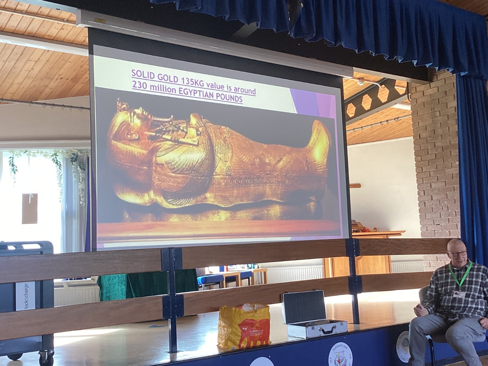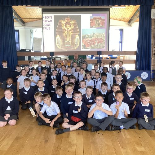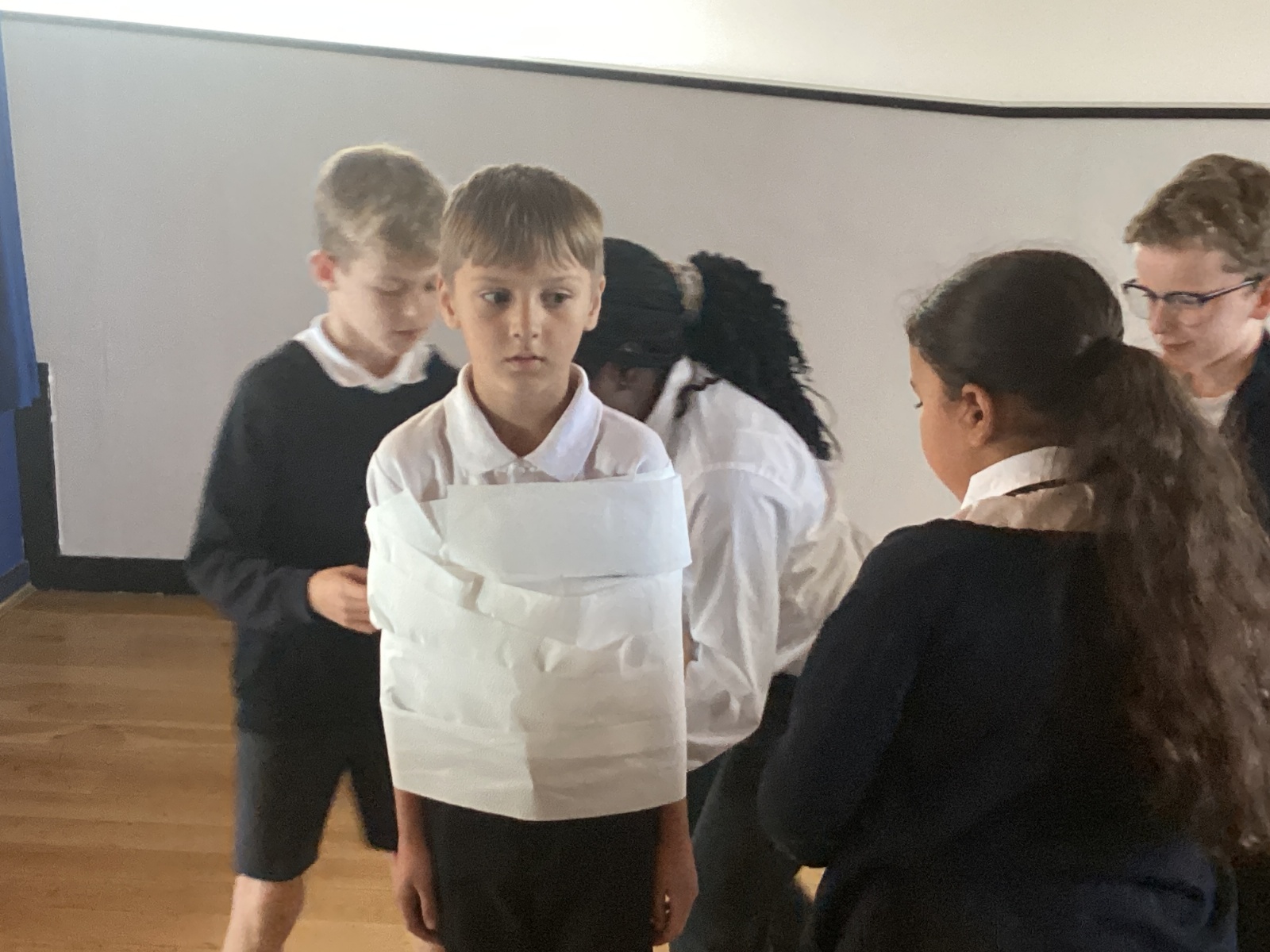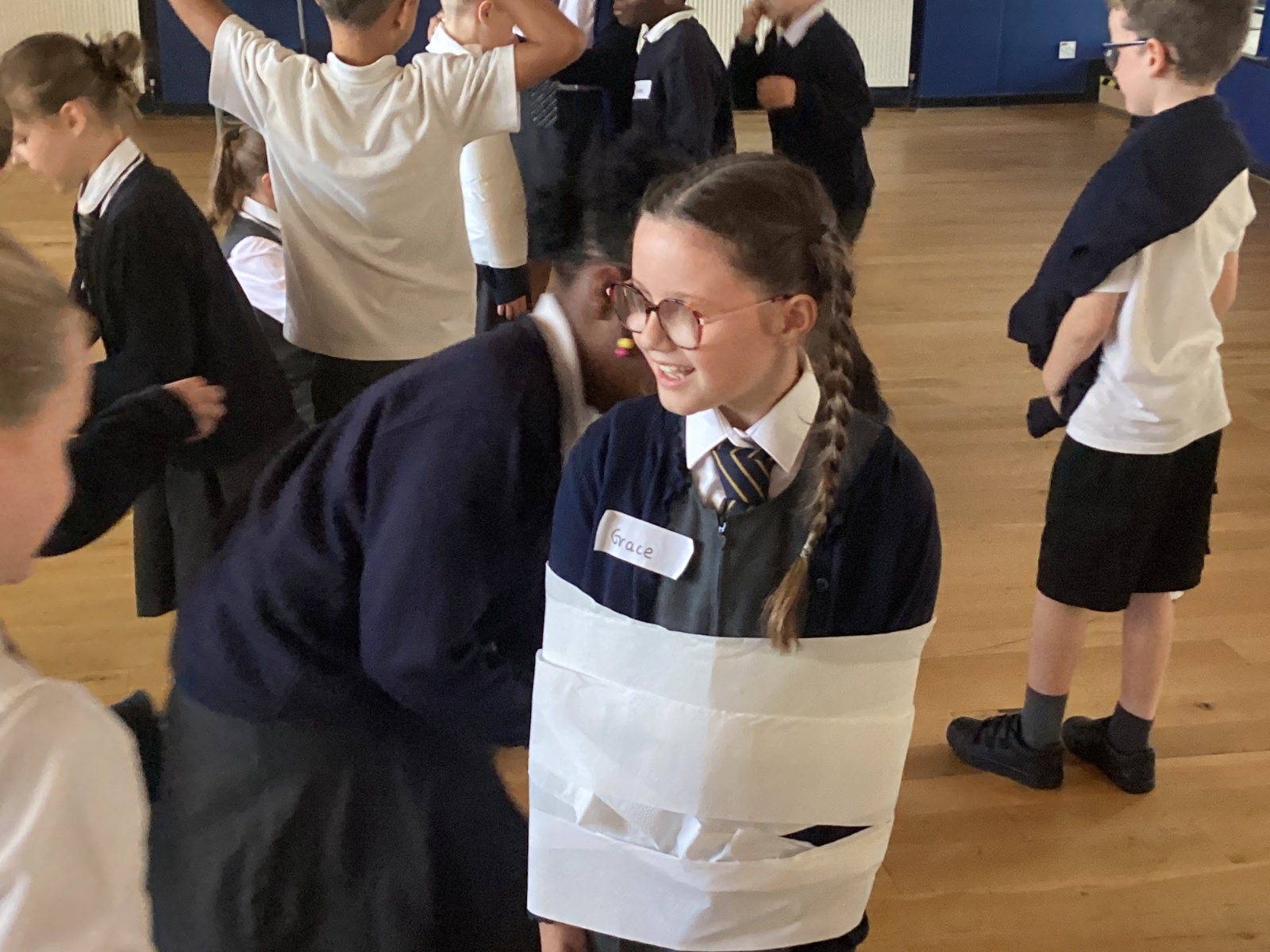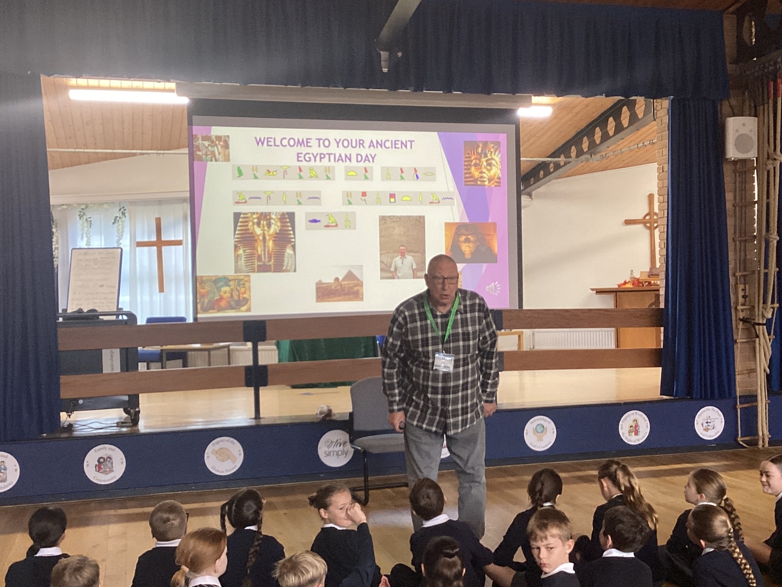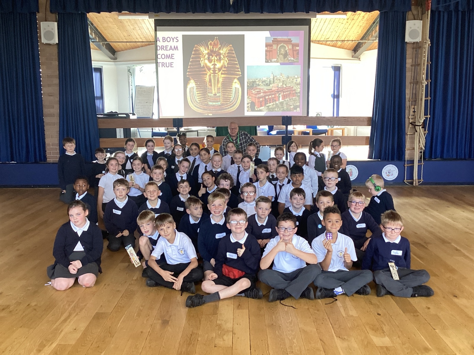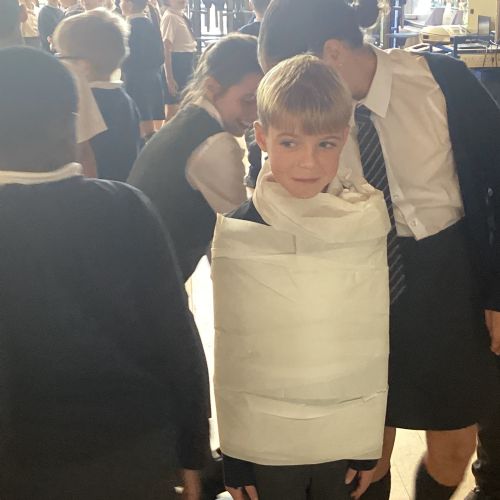 Today, Mr Egypt came into school to teach us all about the Ancient Egyptians and how they lived and died.  It was very interesting.  We were able to hold some ancient artifacts, including a coin once held by Alexander the Great!!  We did an Egyptian dance and mummified some of our friends.