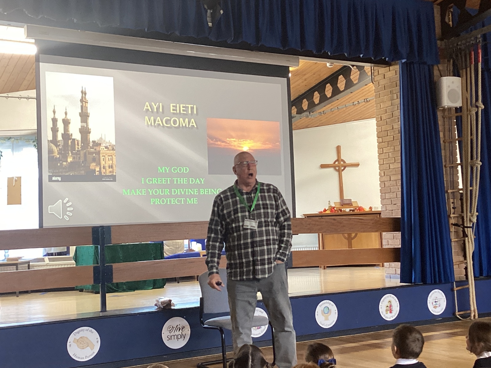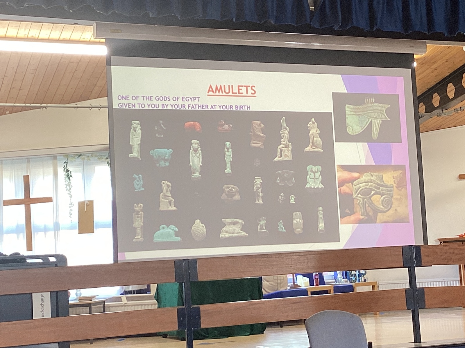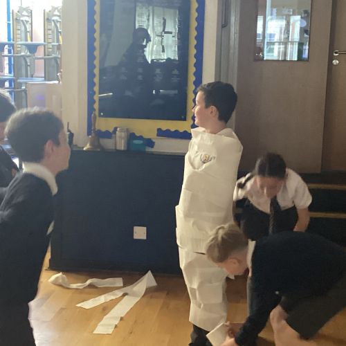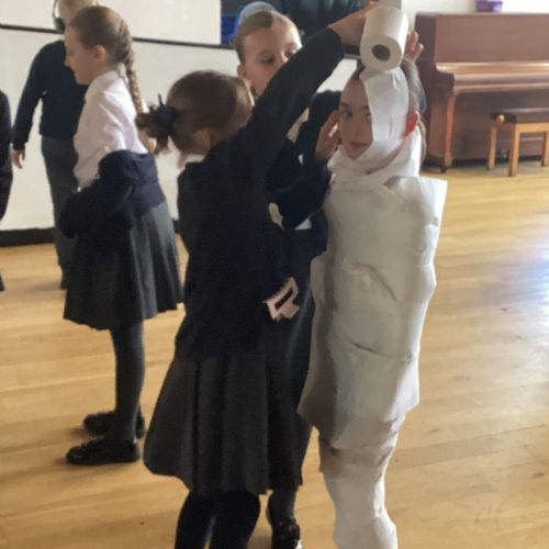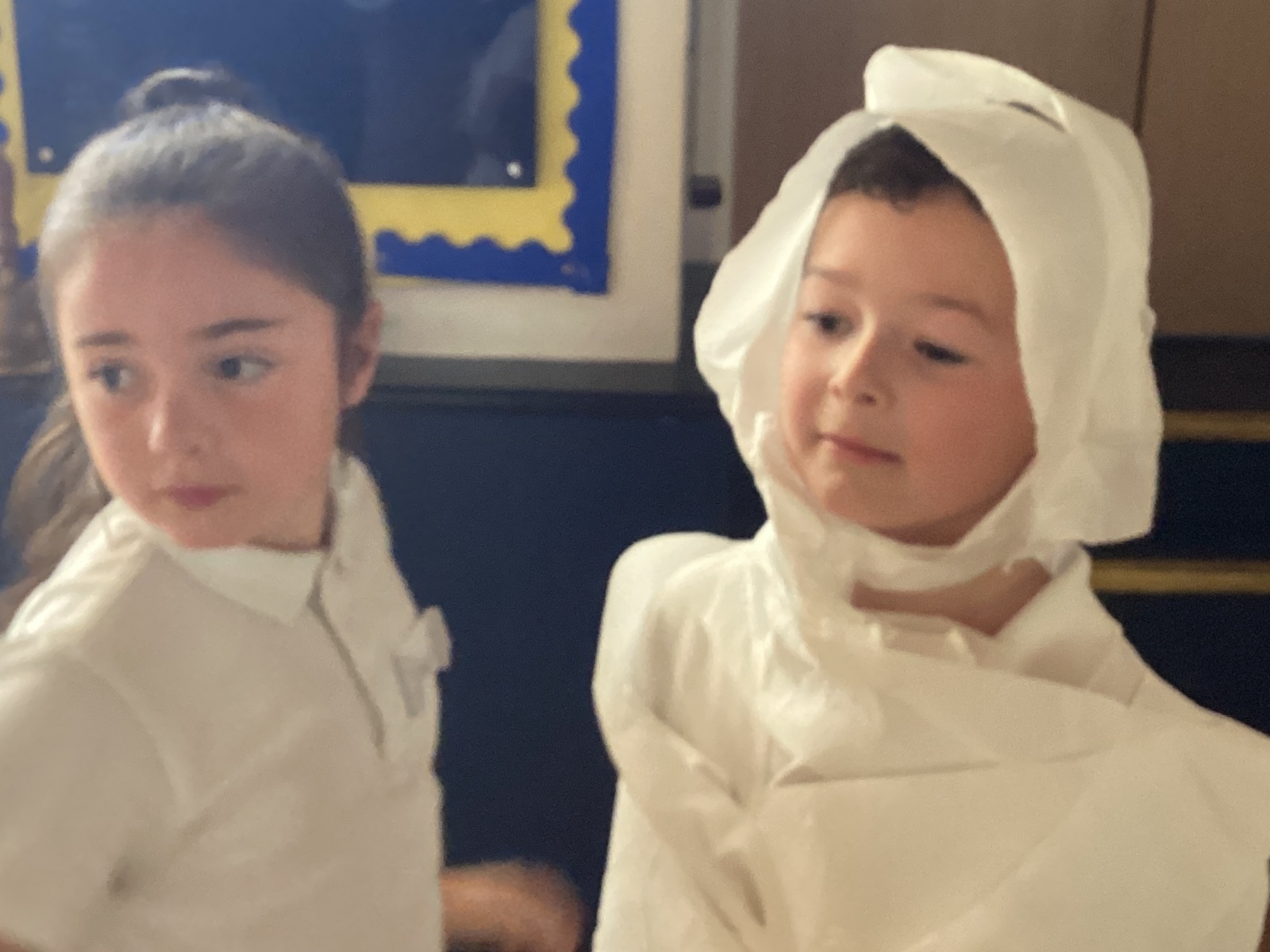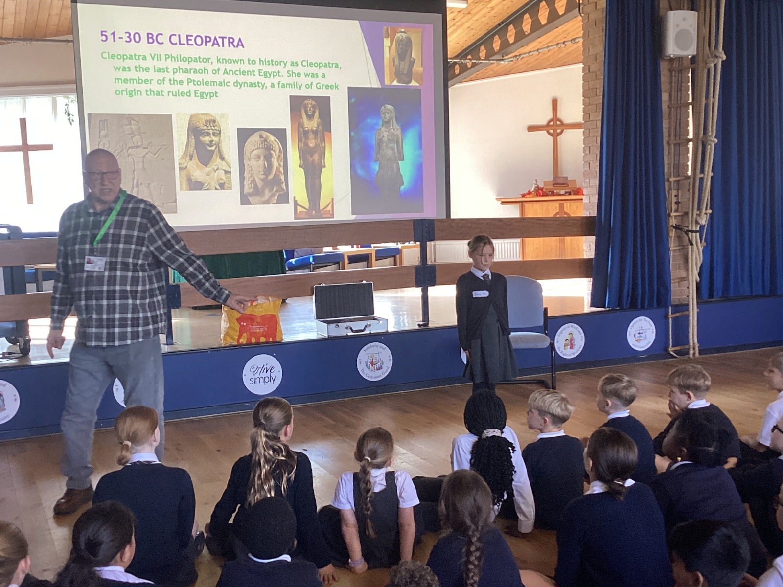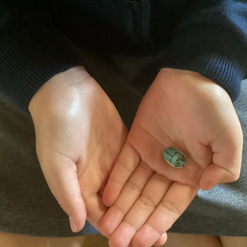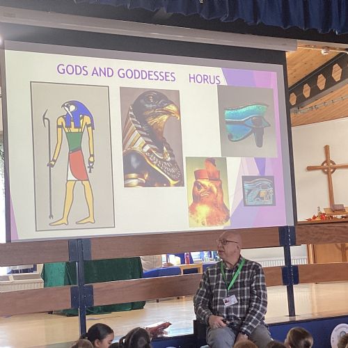 Today, Mr Egypt came into school to teach us all about the Ancient Egyptians and how they lived and died.  It was very interesting.  We were able to hold some ancient artifacts, including a coin once held by Alexander the Great!!  We did an Egyptian dance and mummified some of our friends.