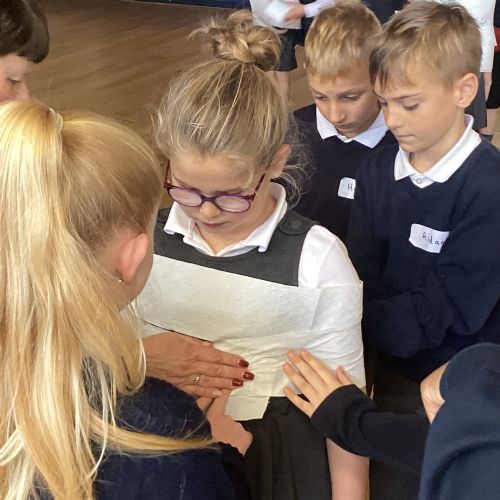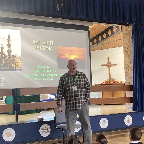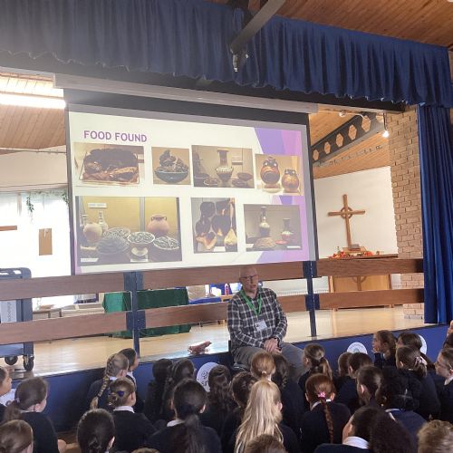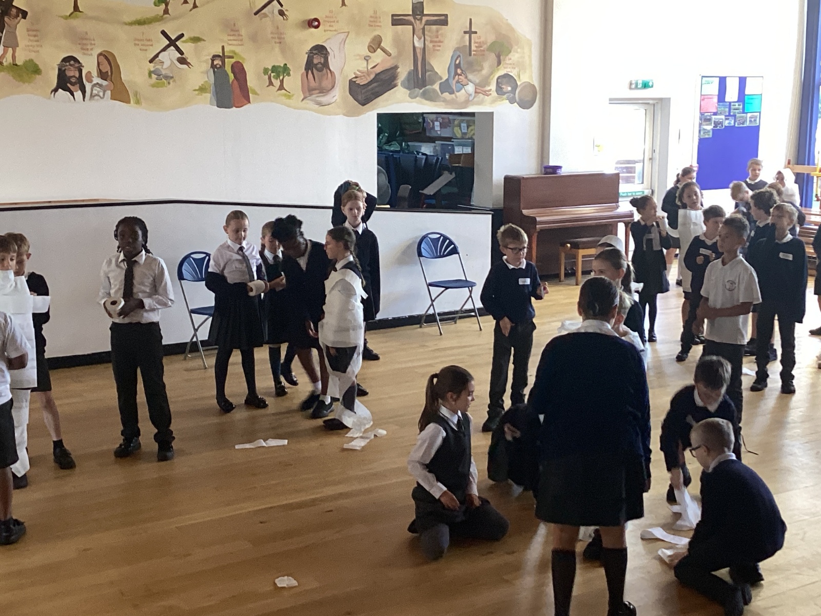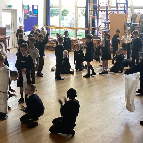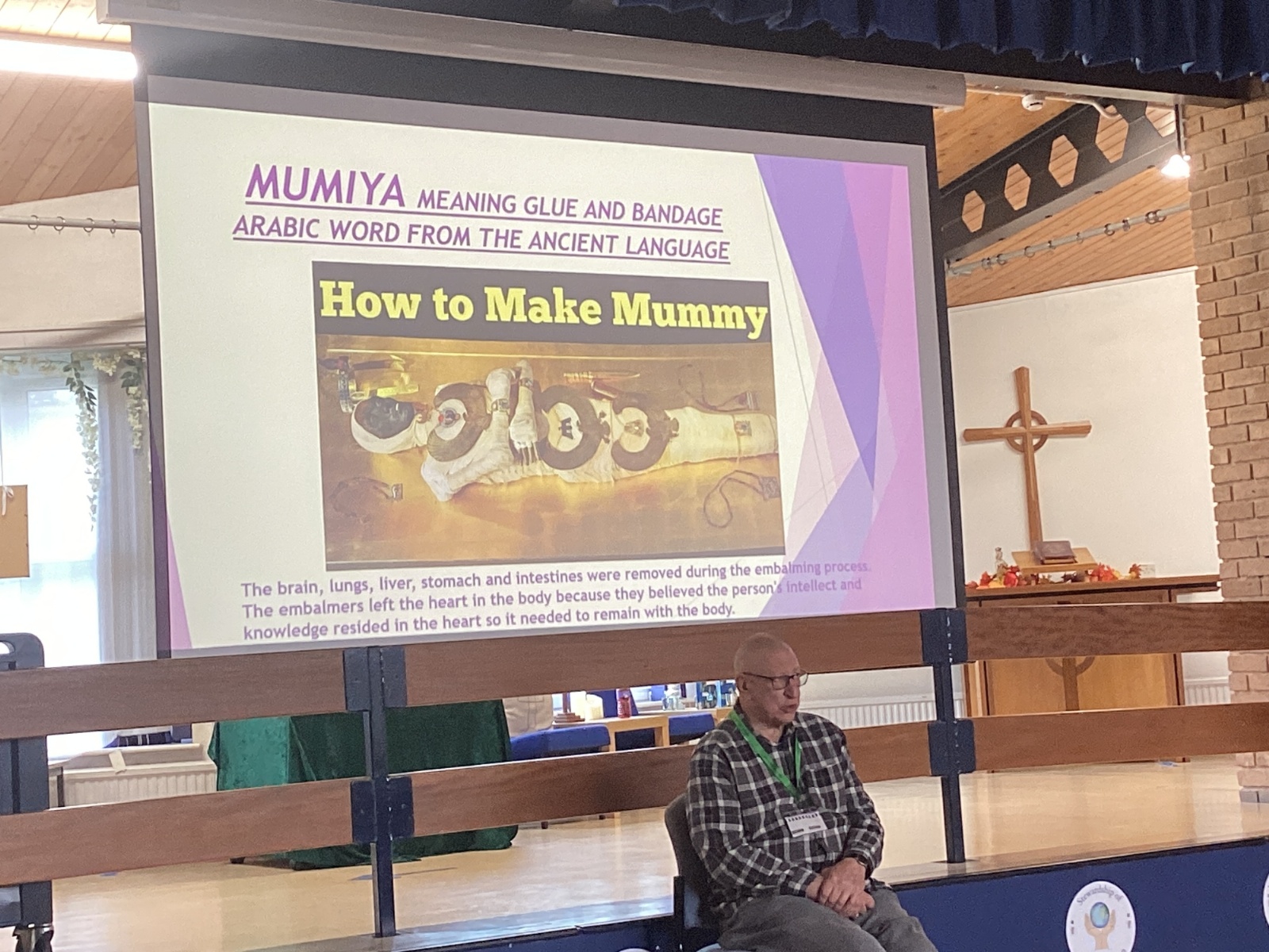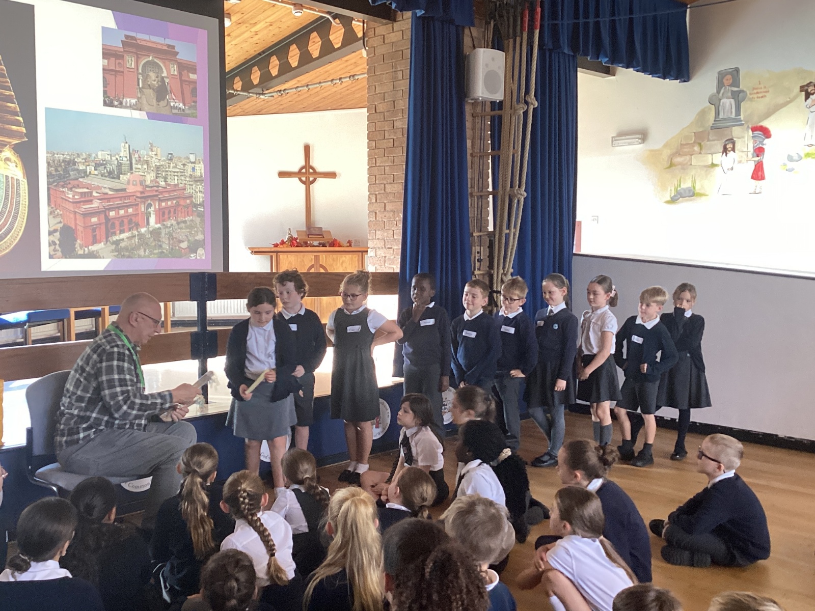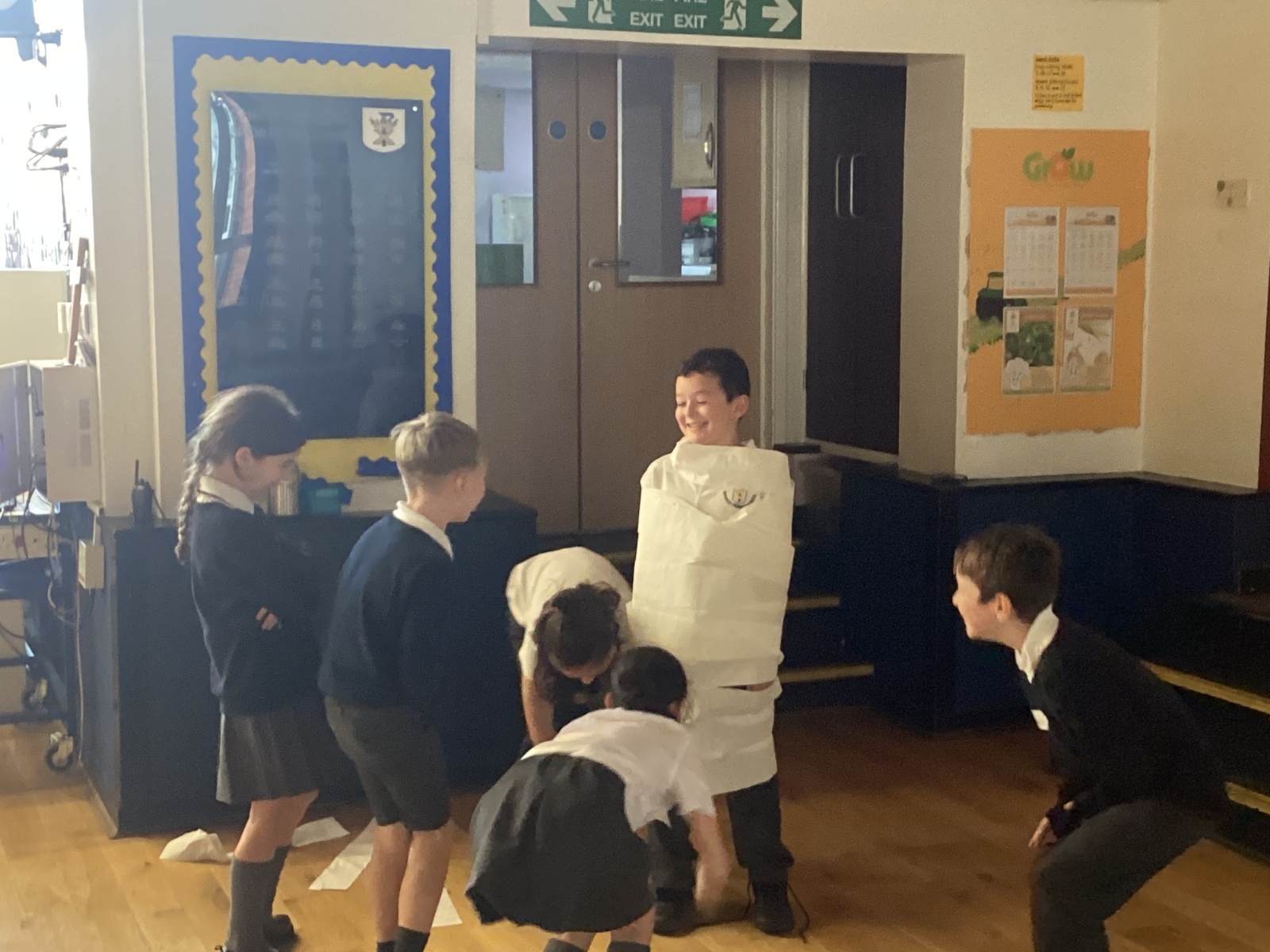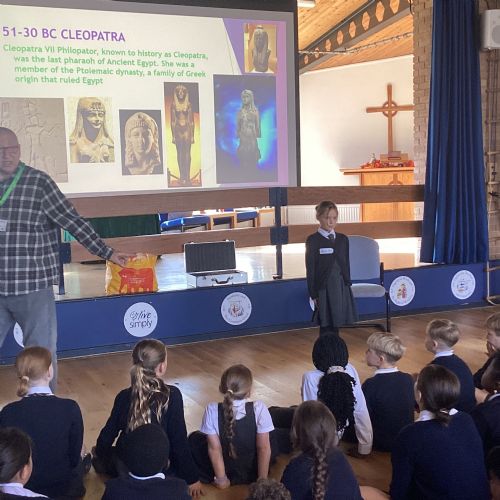 Today, Mr Egypt came into school to teach us all about the Ancient Egyptians and how they lived and died.  It was very interesting.  We were able to hold some ancient artifacts, including a coin once held by Alexander the Great!!  We did an Egyptian dance and mummified some of our friends.