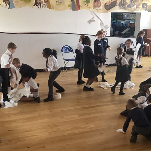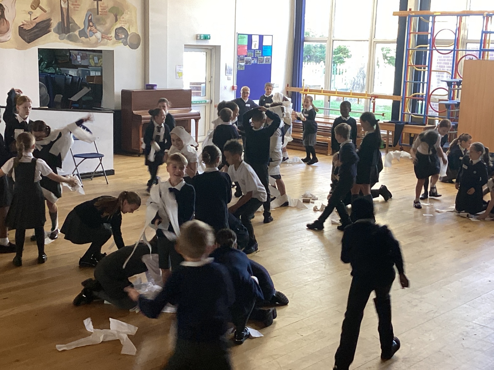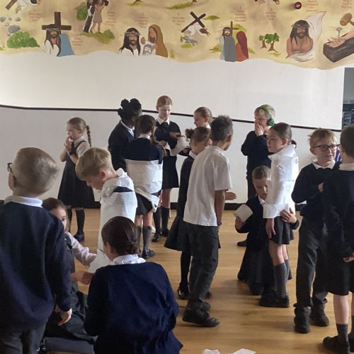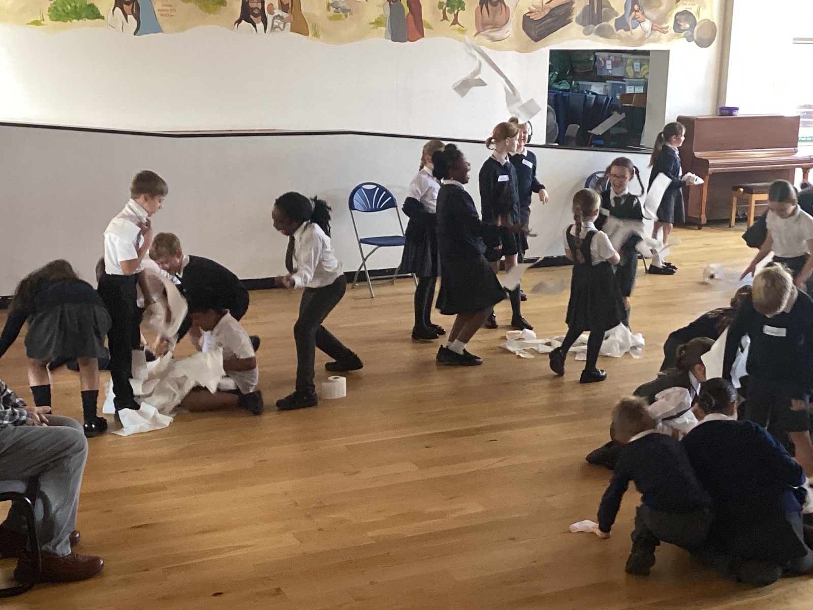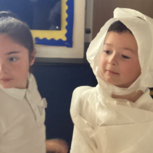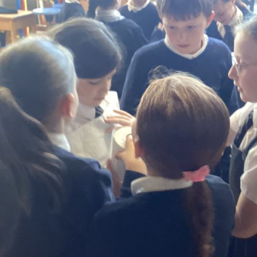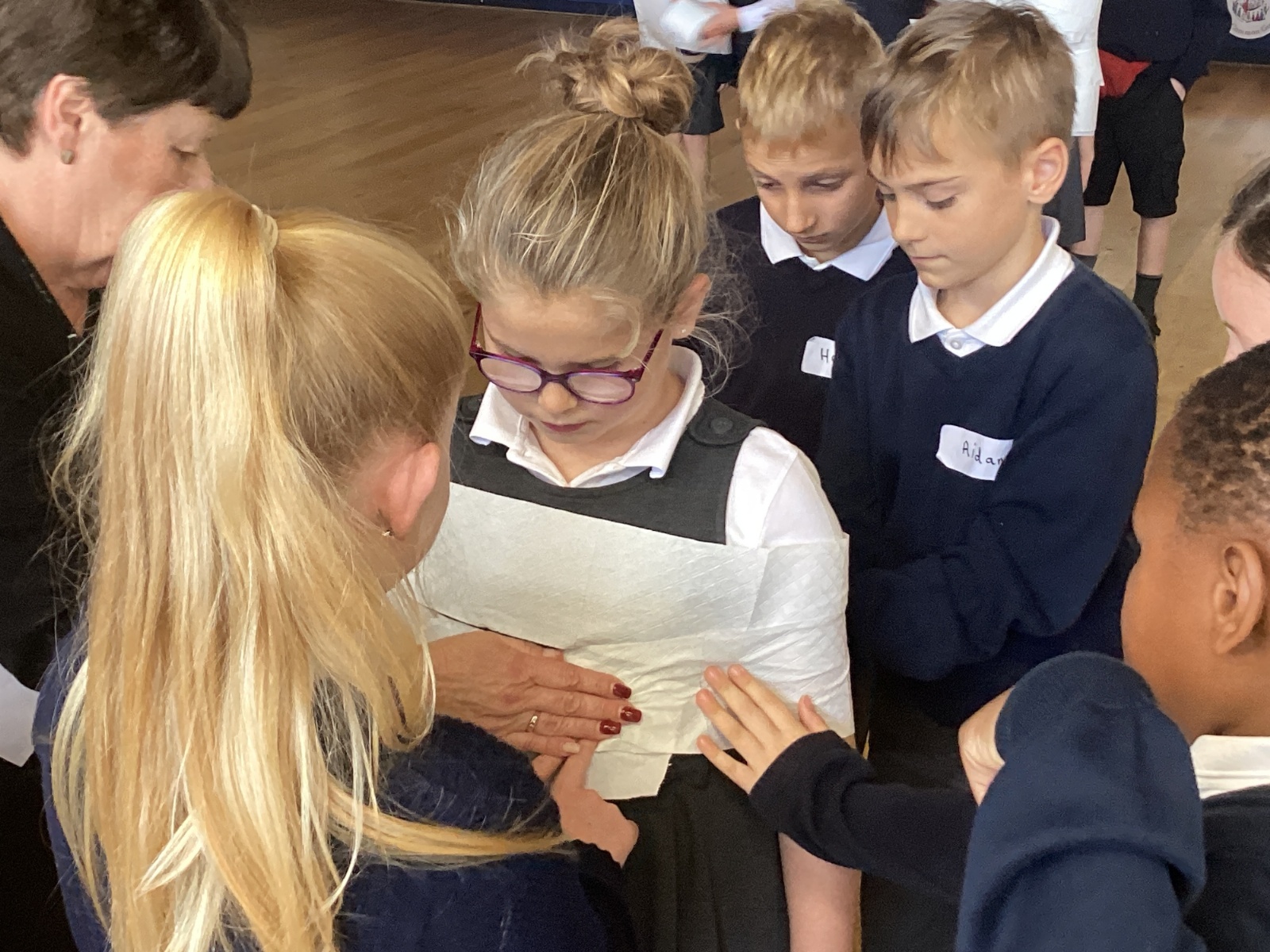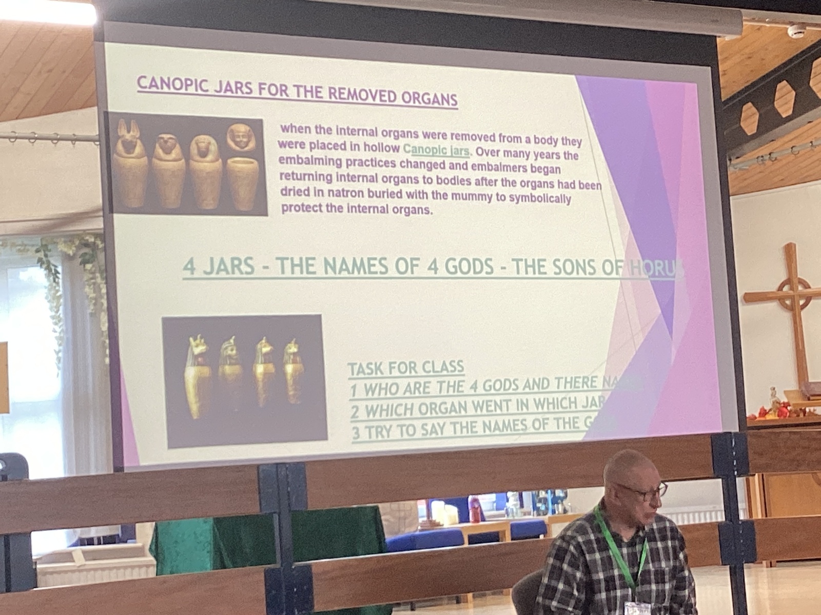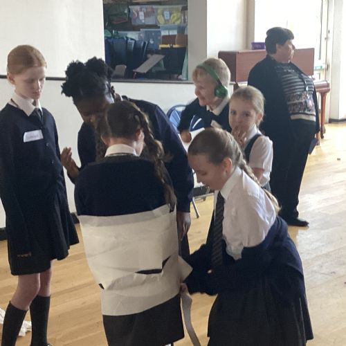 Today, Mr Egypt came into school to teach us all about the Ancient Egyptians and how they lived and died.  It was very interesting.  We were able to hold some ancient artifacts, including a coin once held by Alexander the Great!!  We did an Egyptian dance and mummified some of our friends.