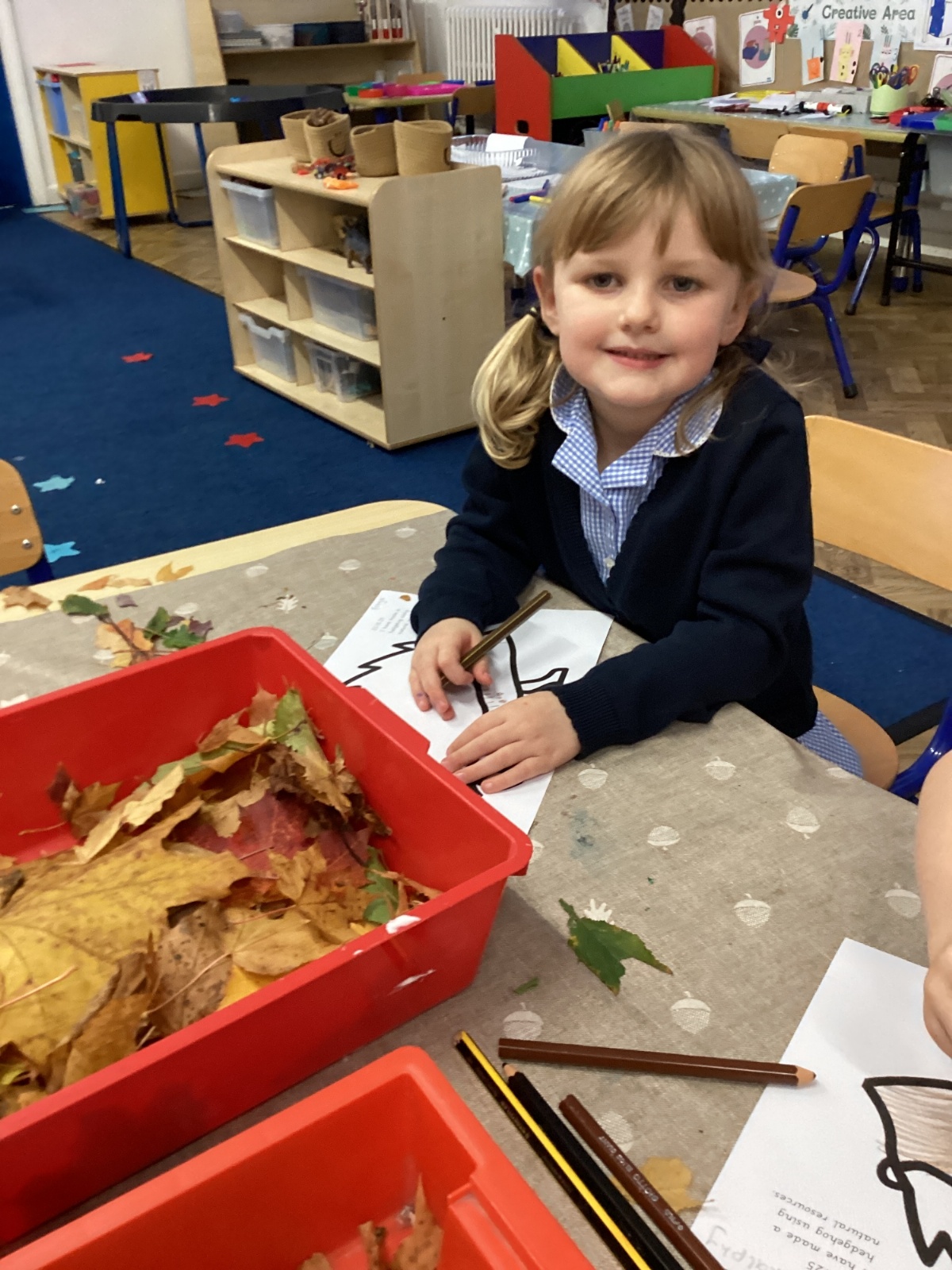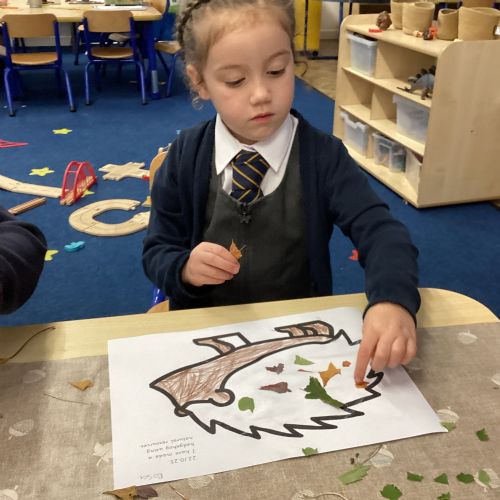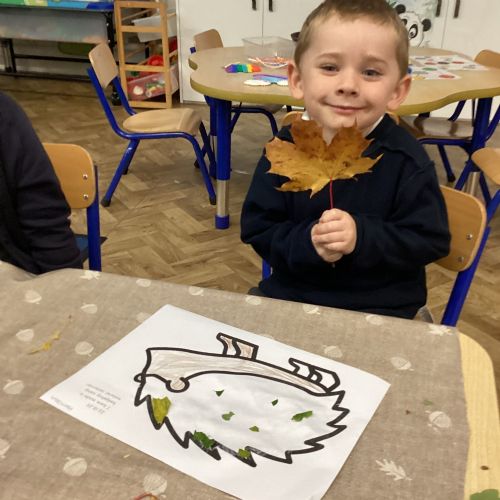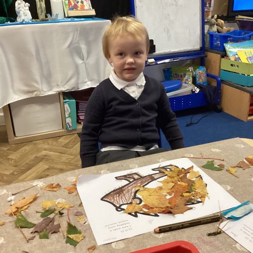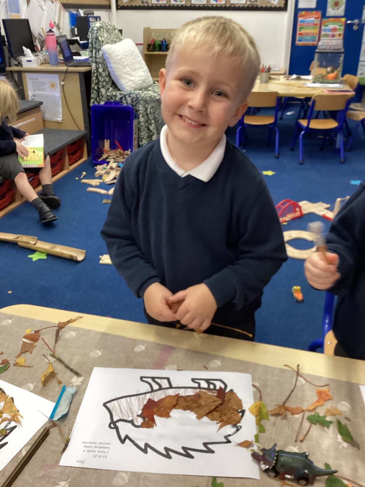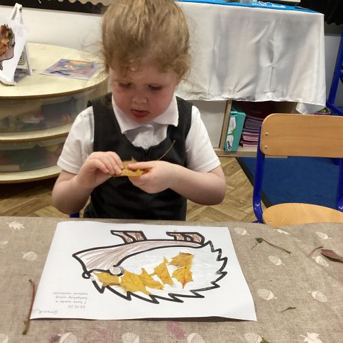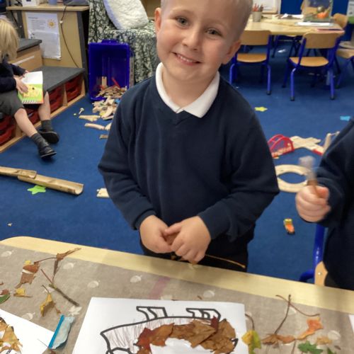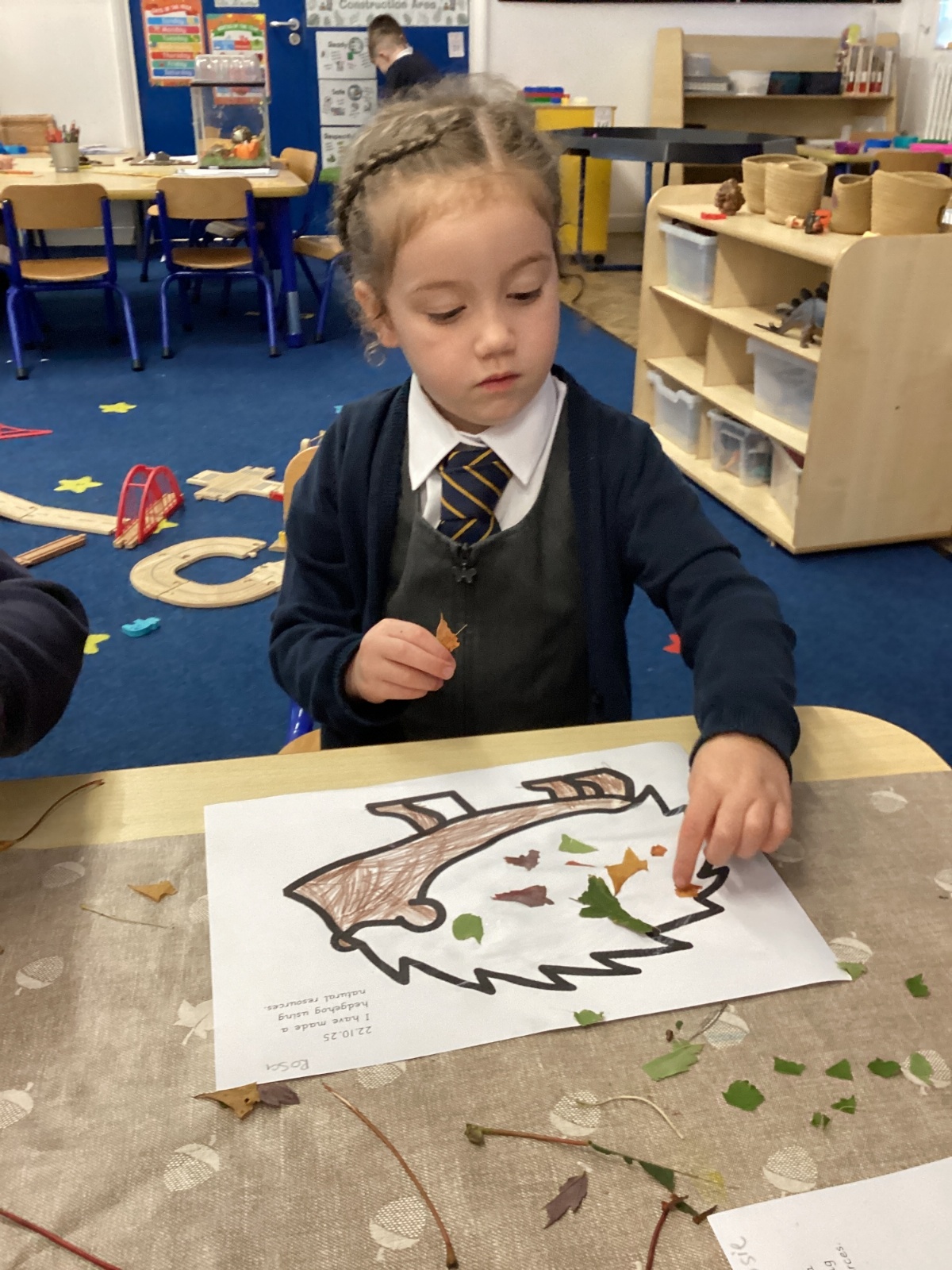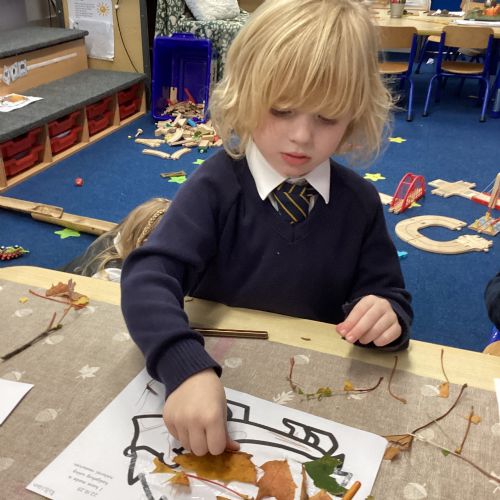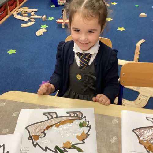 We have been learning about autumn and thinking about the changes in the season. We created hedgehog pictures using different autumnal leaves.