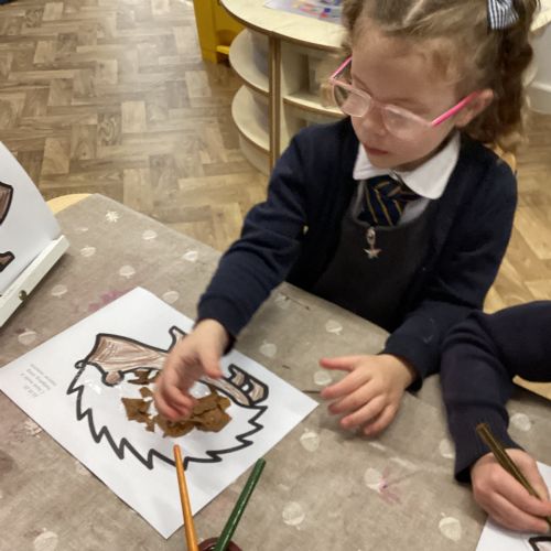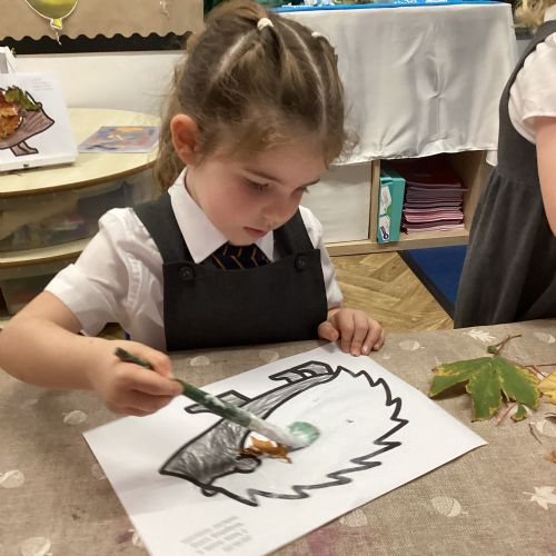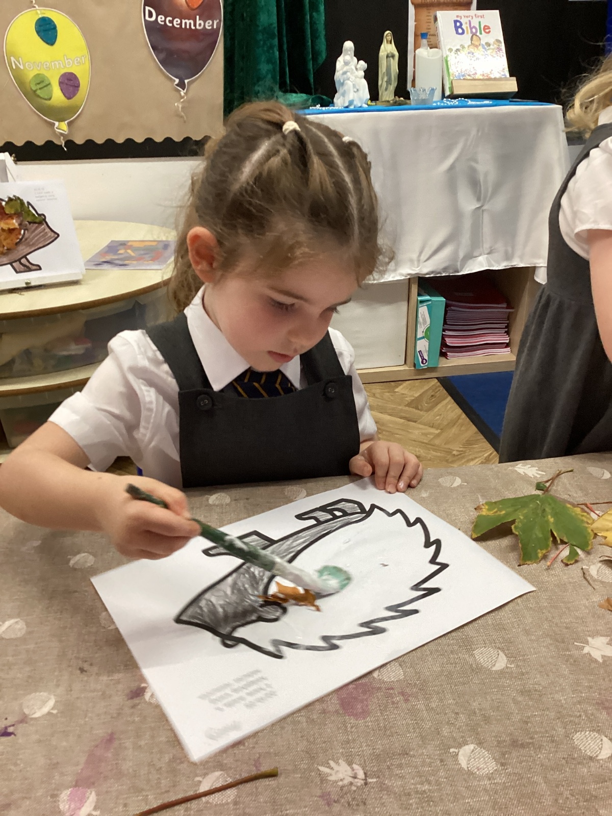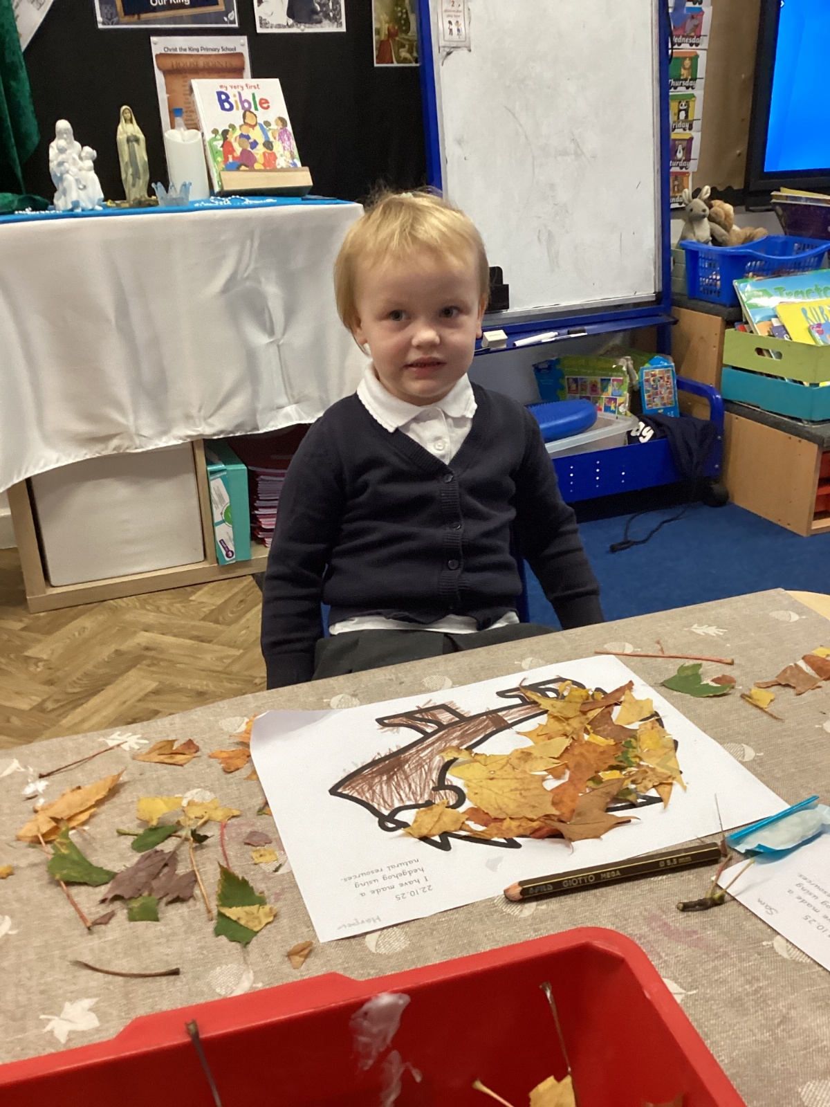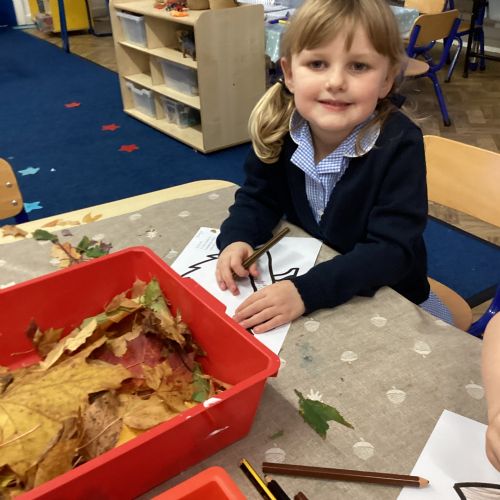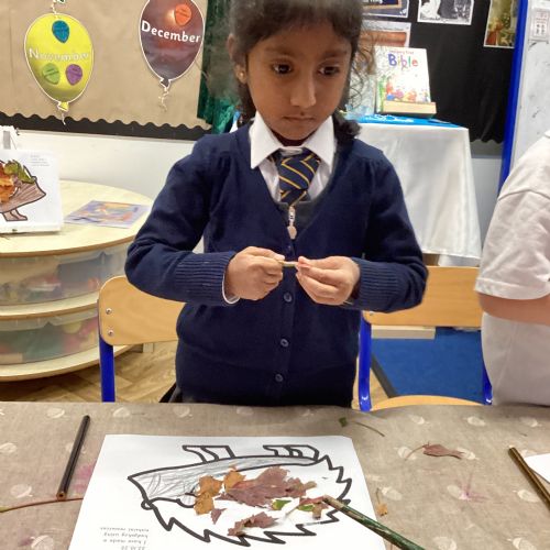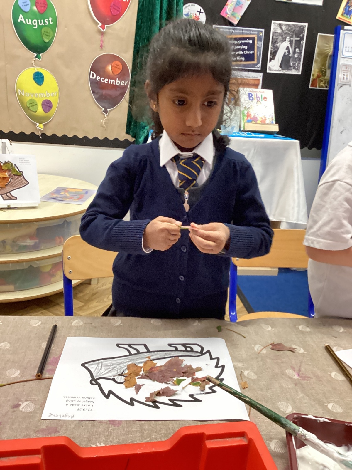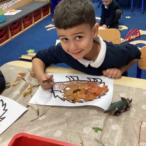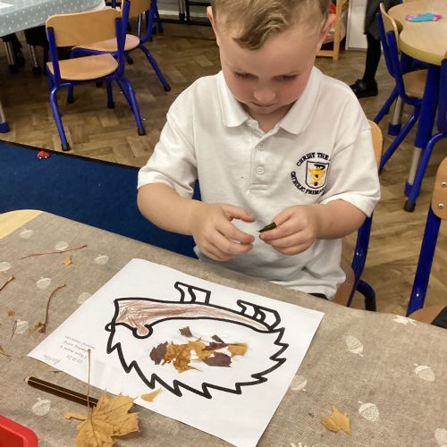 We have been learning about autumn and thinking about the changes in the season. We created hedgehog pictures using different autumnal leaves.