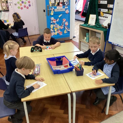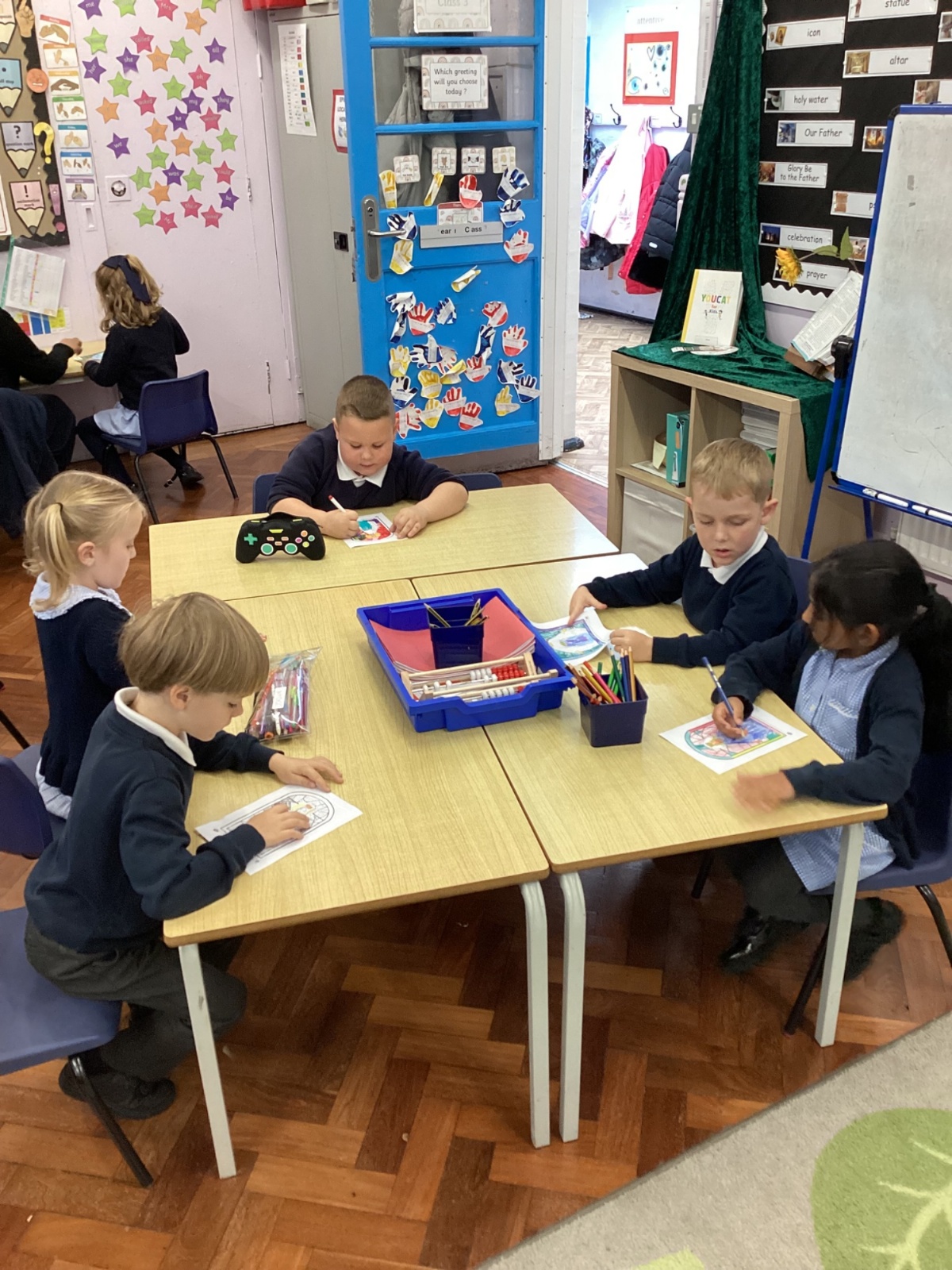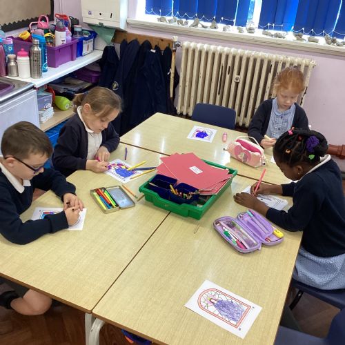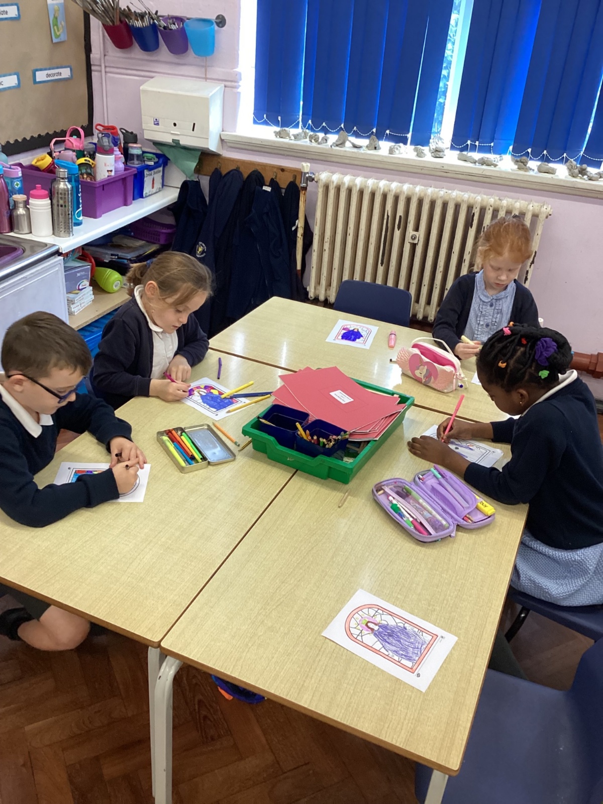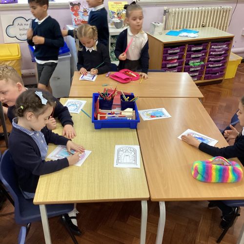 Today we took part in a whole class collective worship session. We focused on Mary as it is the month of October and we shared lots of insightful thoughts. We ended our celebration with singing a hymn for Mary and created beautiful pictures of Mary.