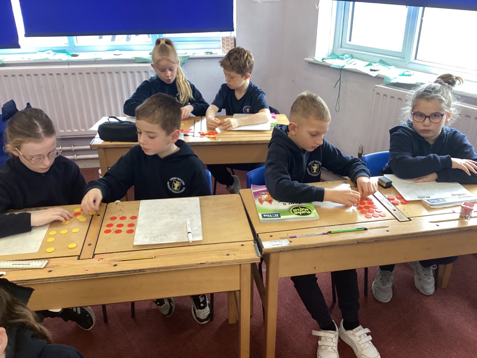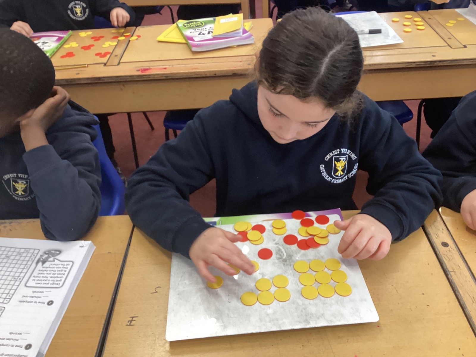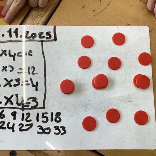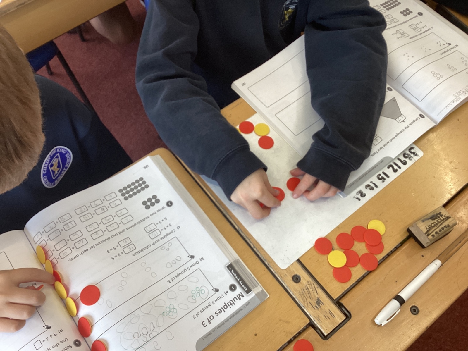 We used counters this morning to help us recognise the relationship between multiplication and division.