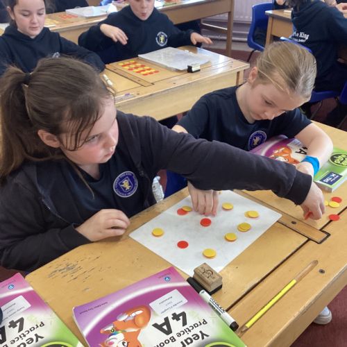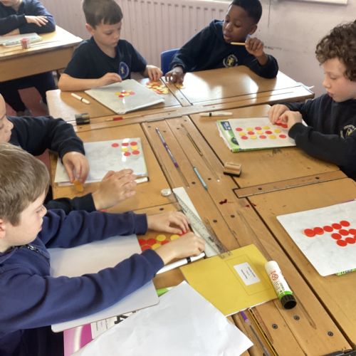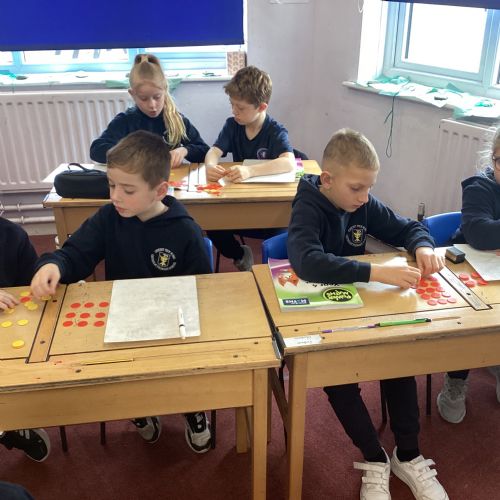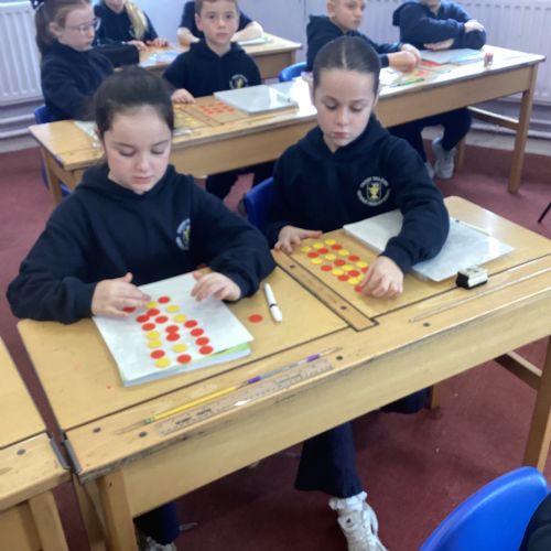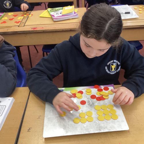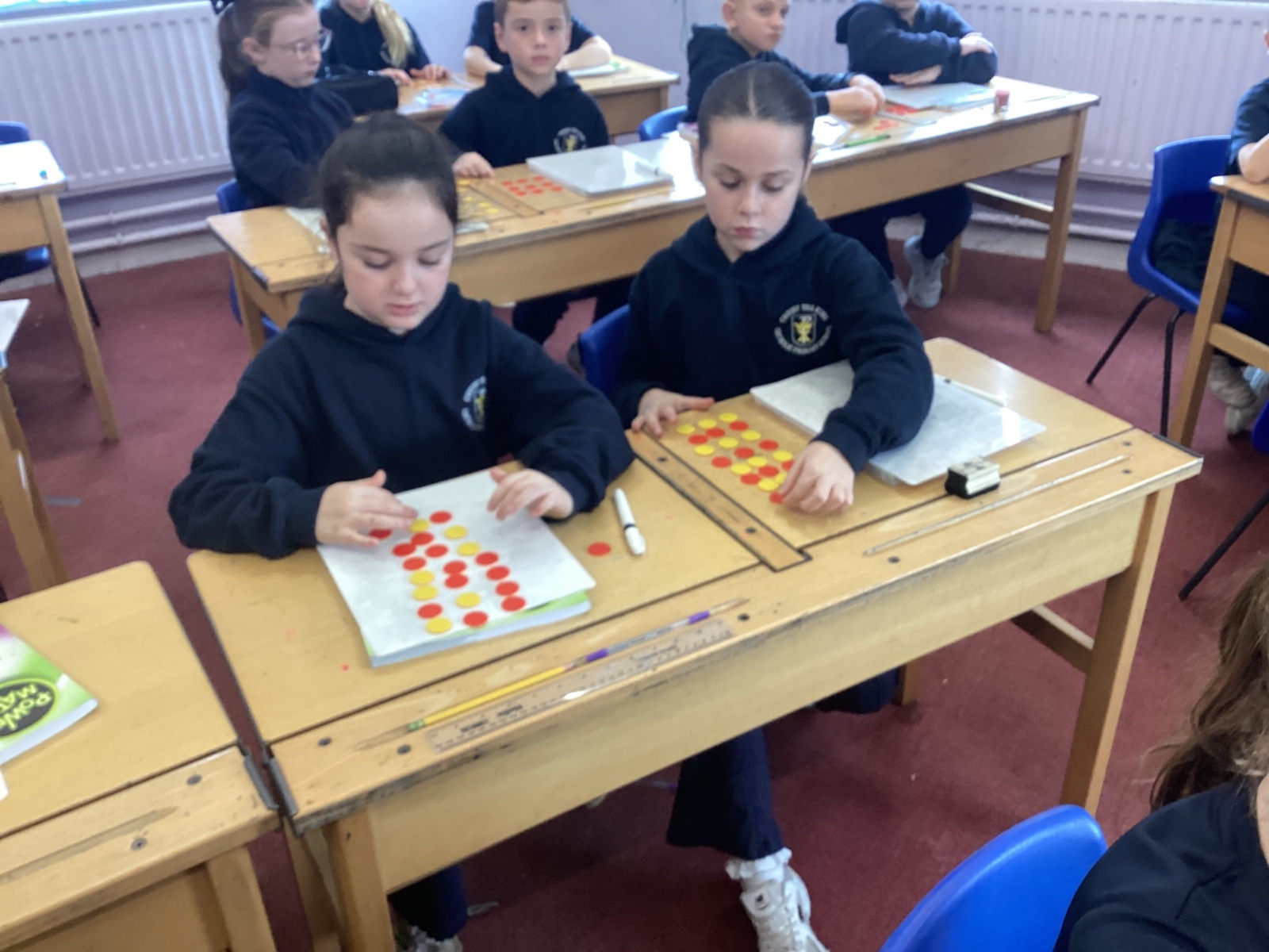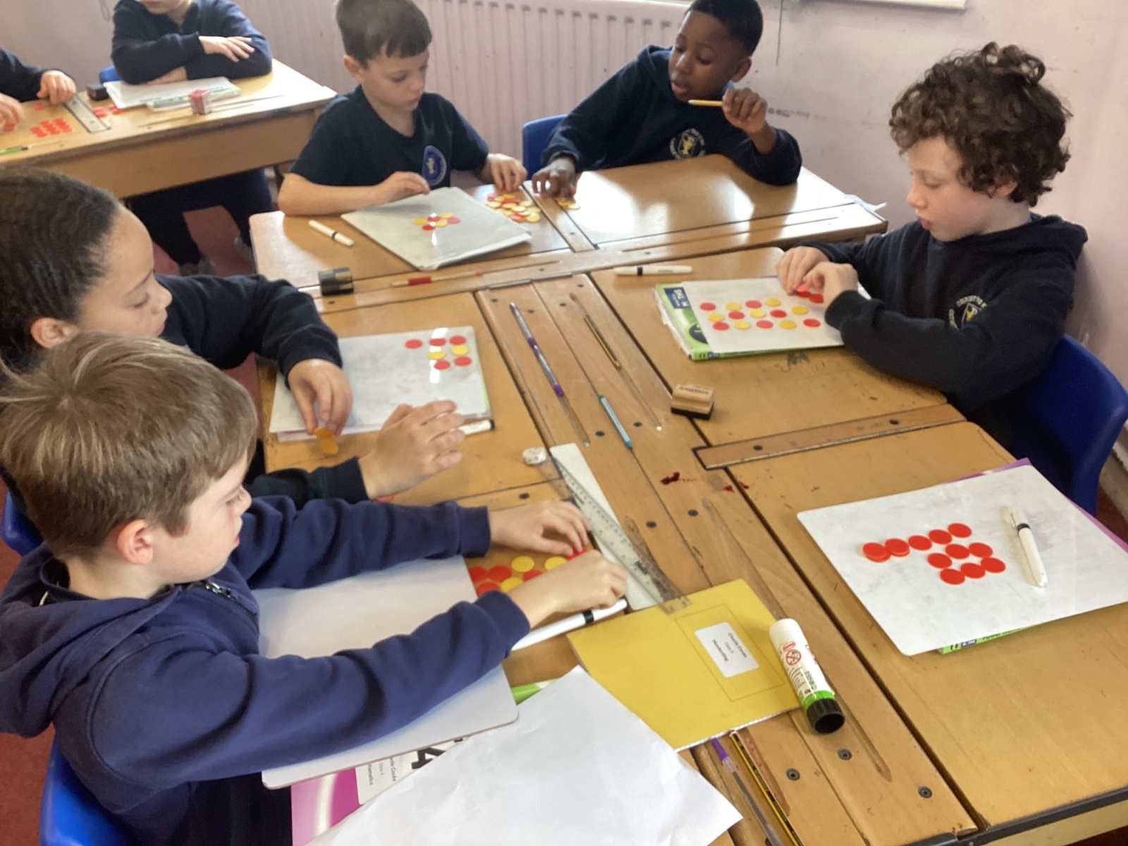 We used counters this morning to help us recognise the relationship between multiplication and division.