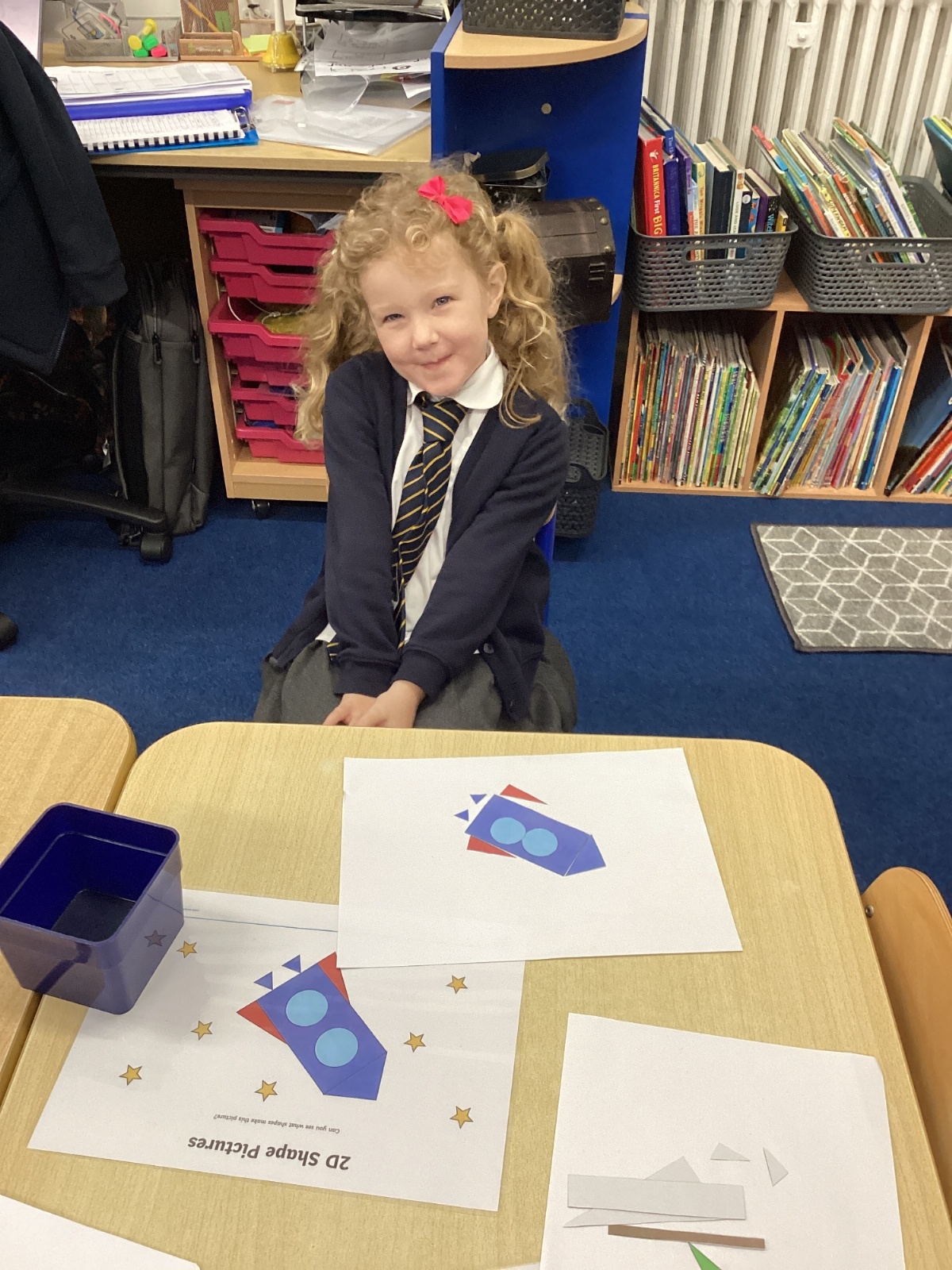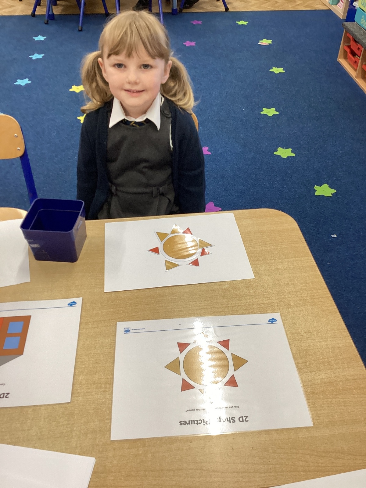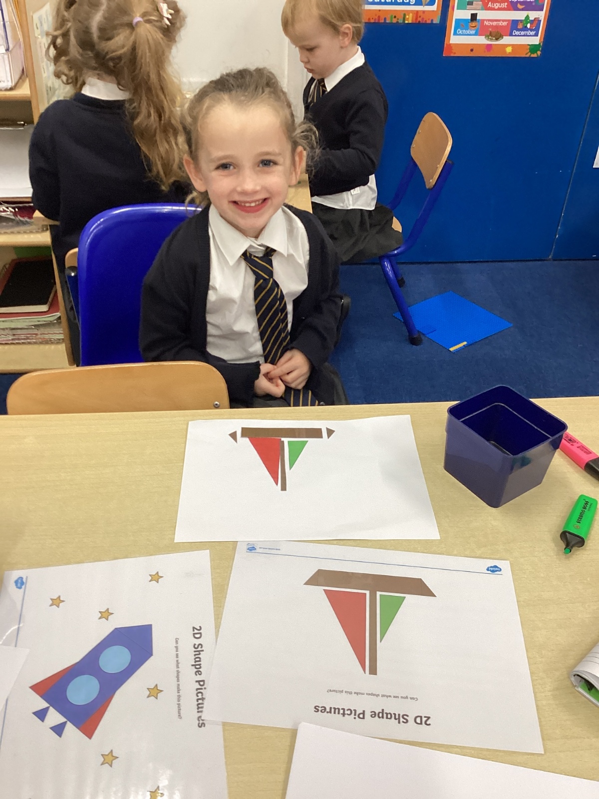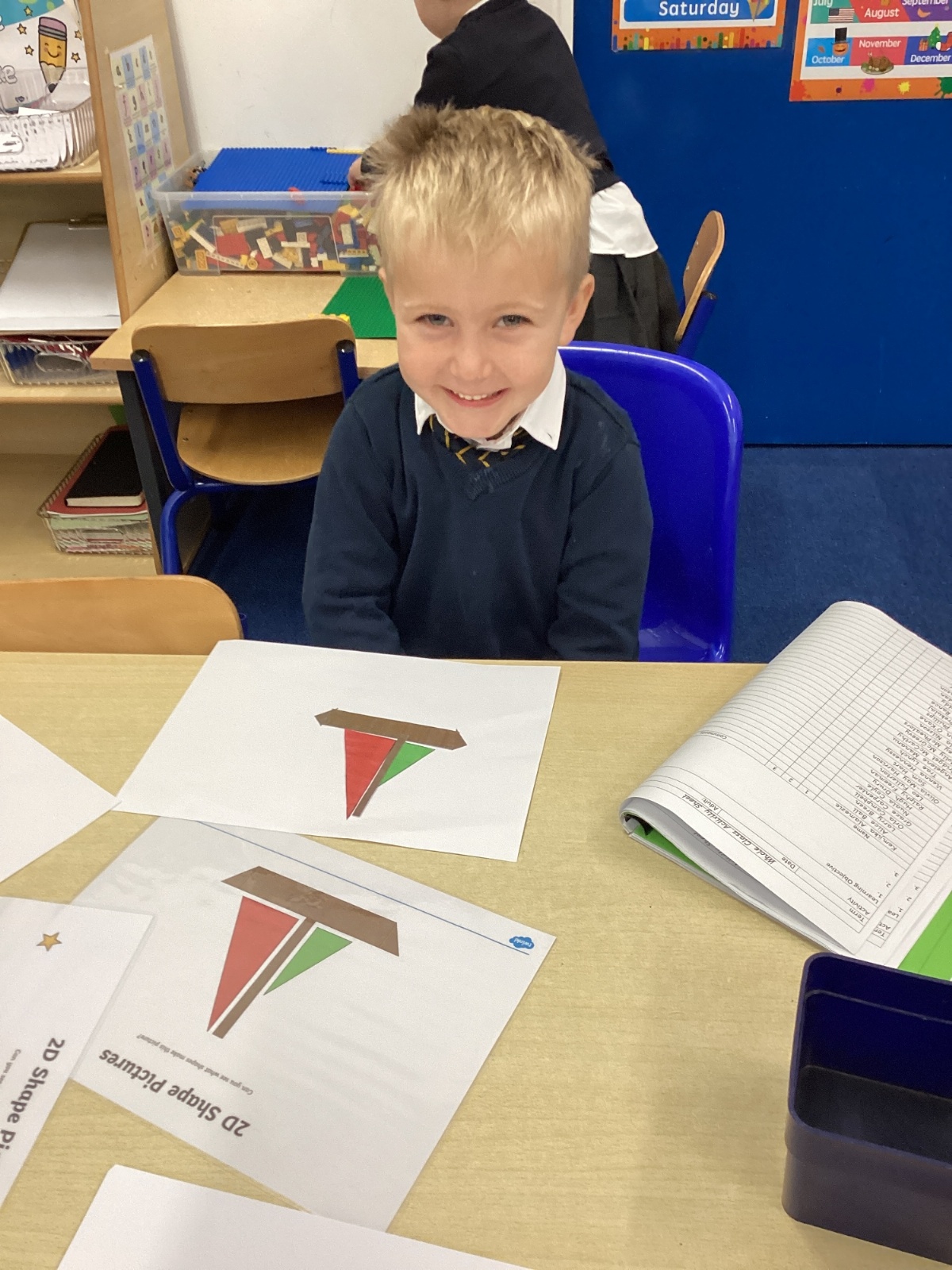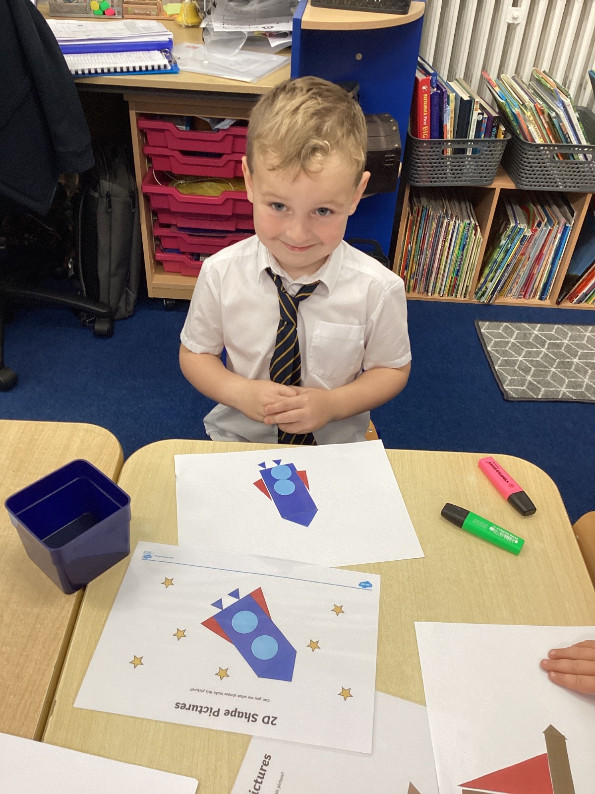 In Maths, we have been thinking about the properties of shapes. We used excellent observation skills and recreated our own shape pictures using 2D shapes.