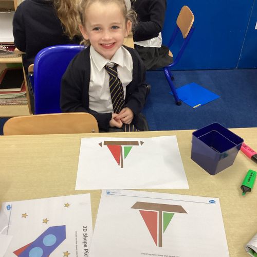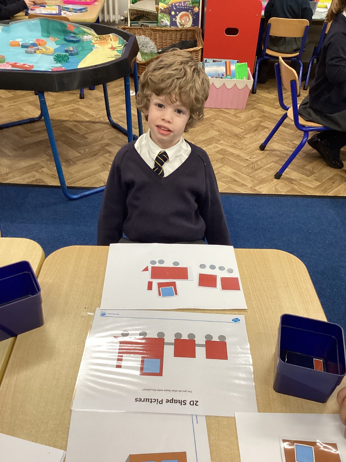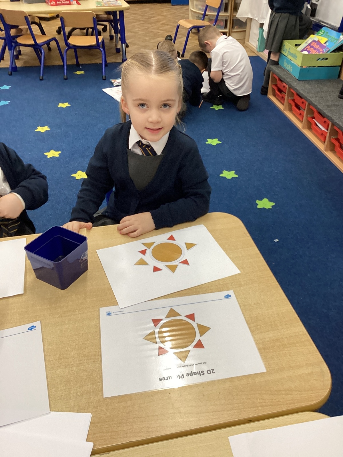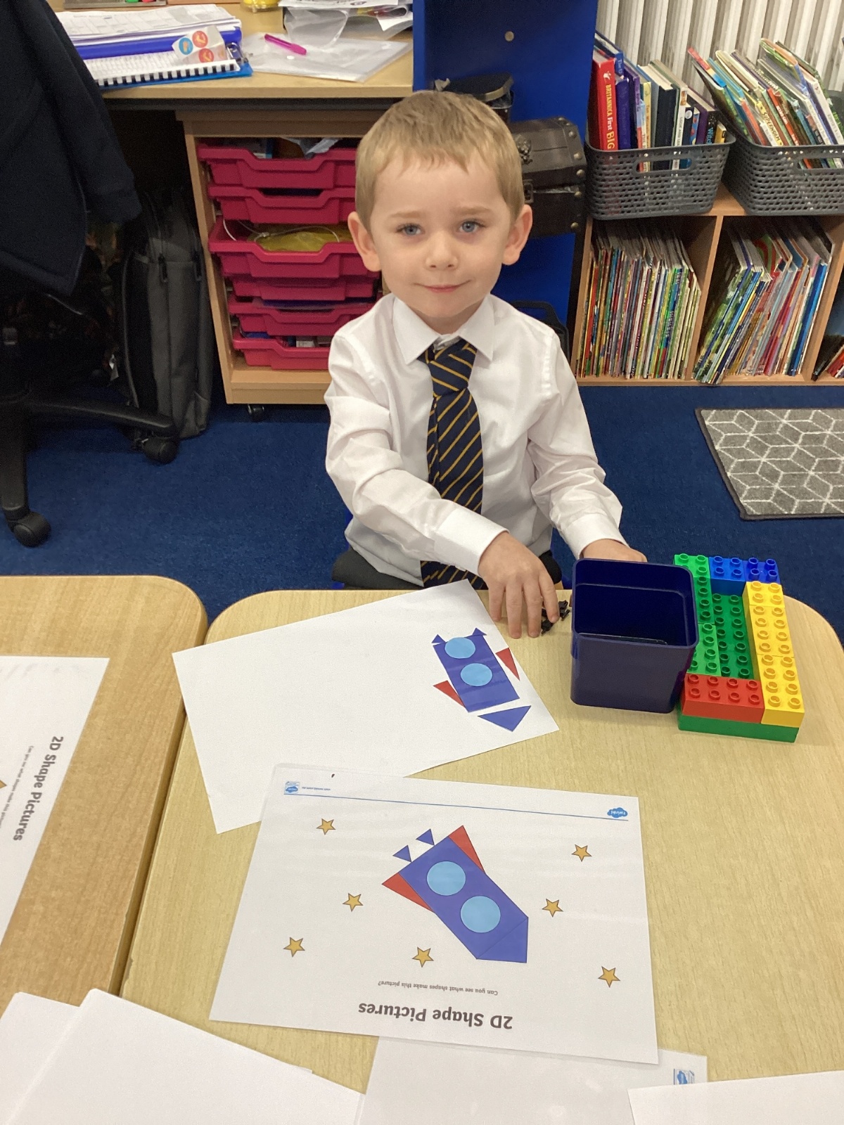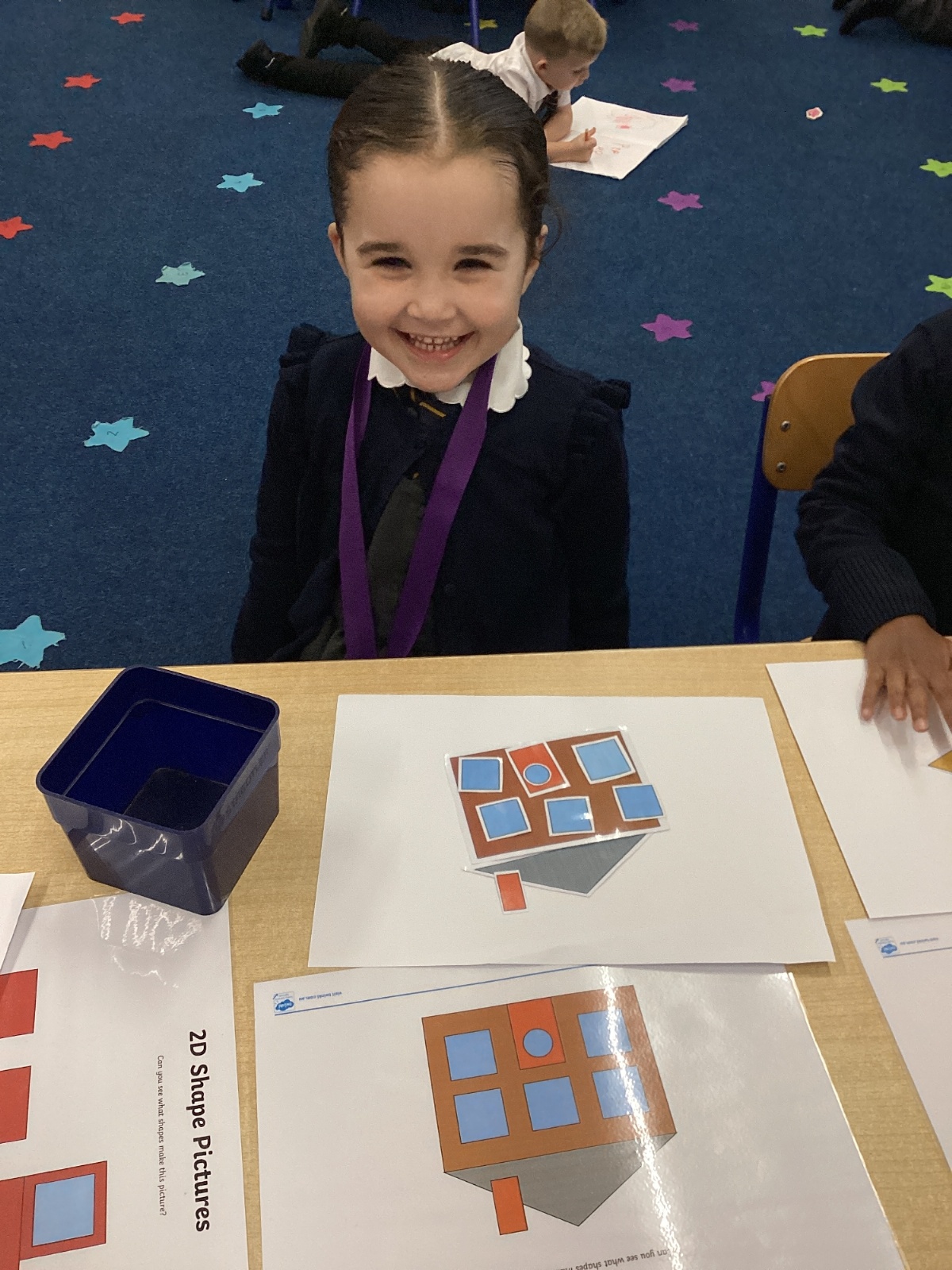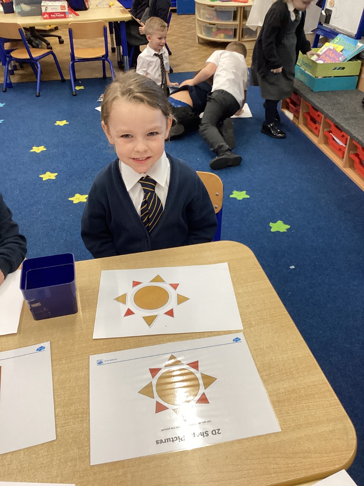 In Maths, we have been thinking about the properties of shapes. We used excellent observation skills and recreated our own shape pictures using 2D shapes.