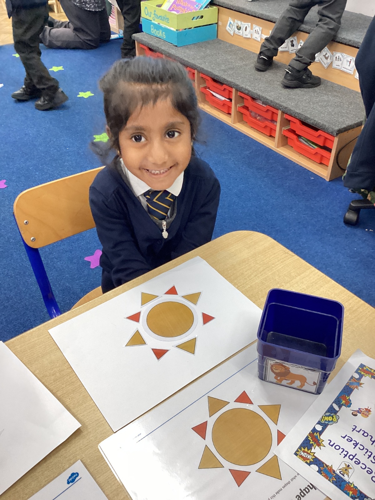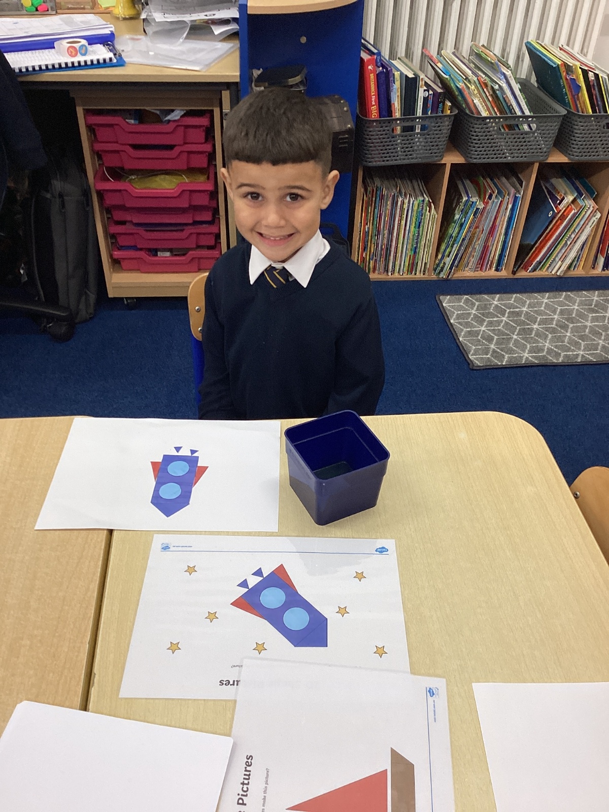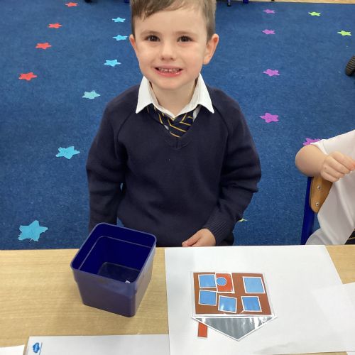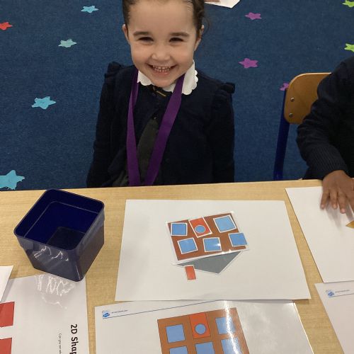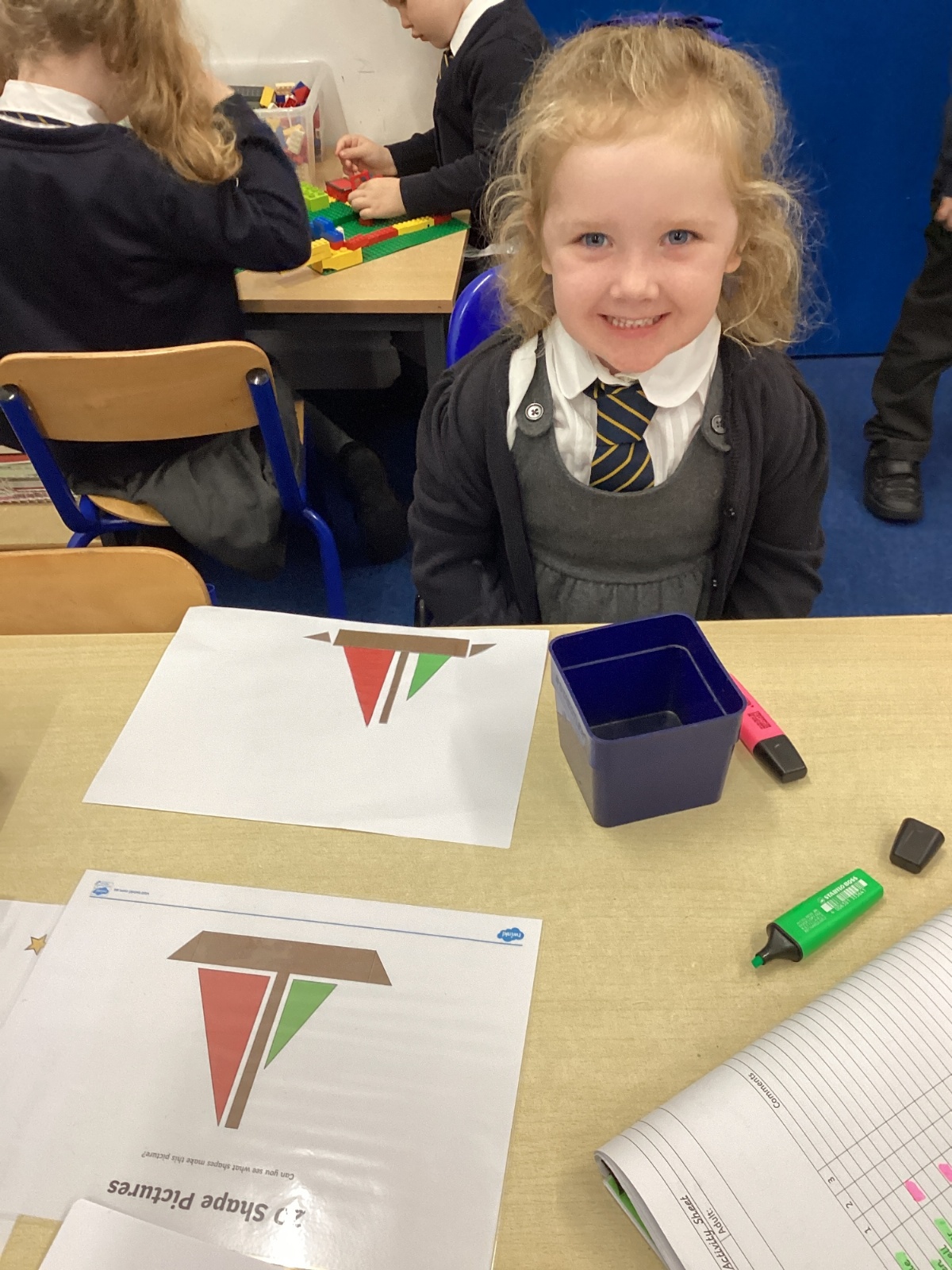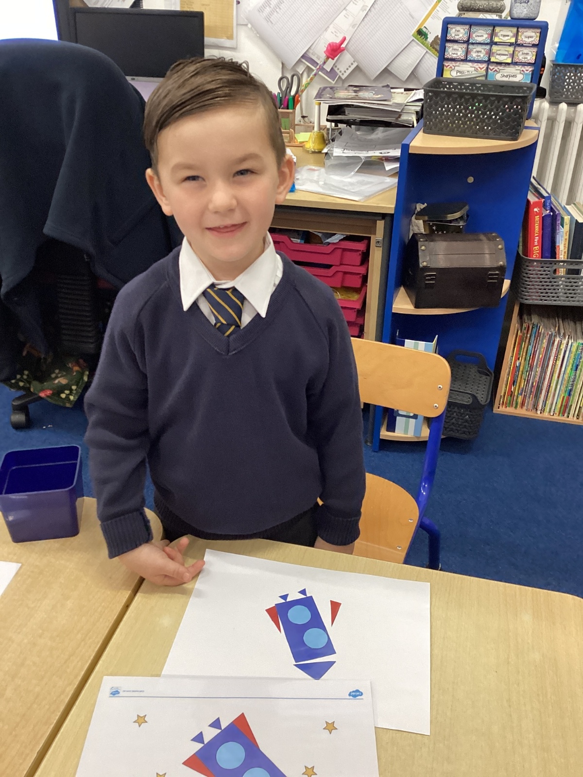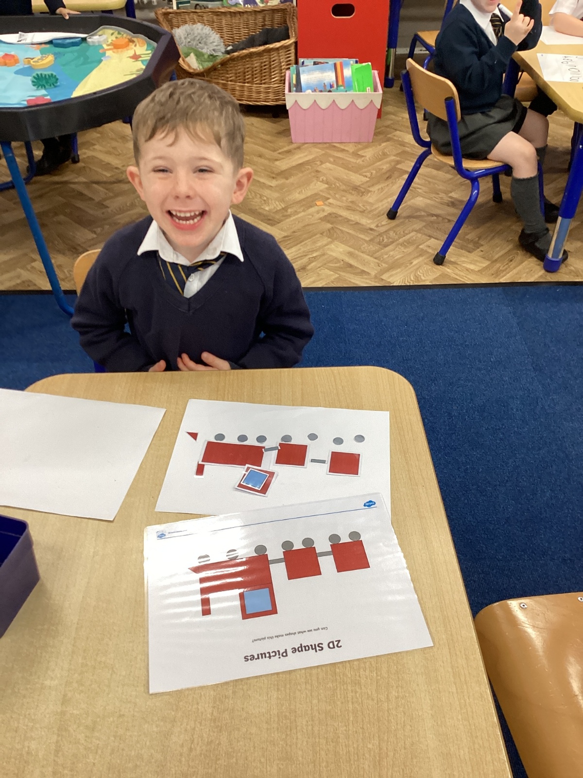 In Maths, we have been thinking about the properties of shapes. We used excellent observation skills and recreated our own shape pictures using 2D shapes.