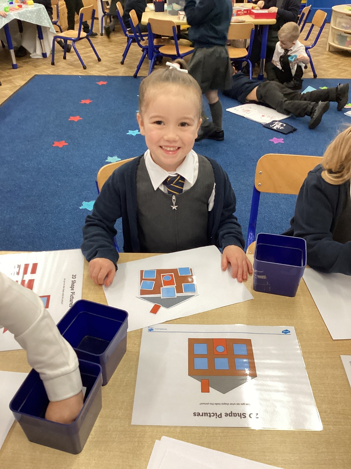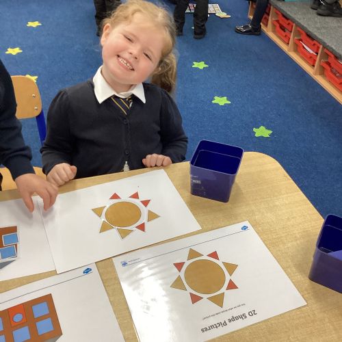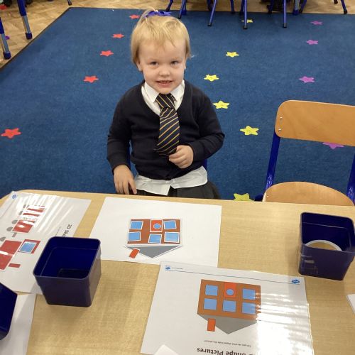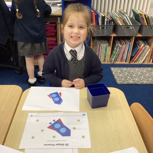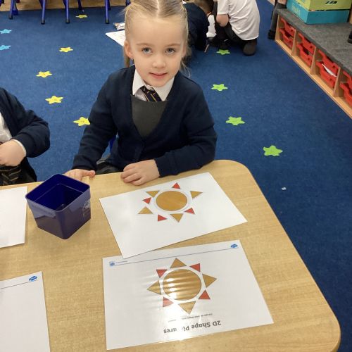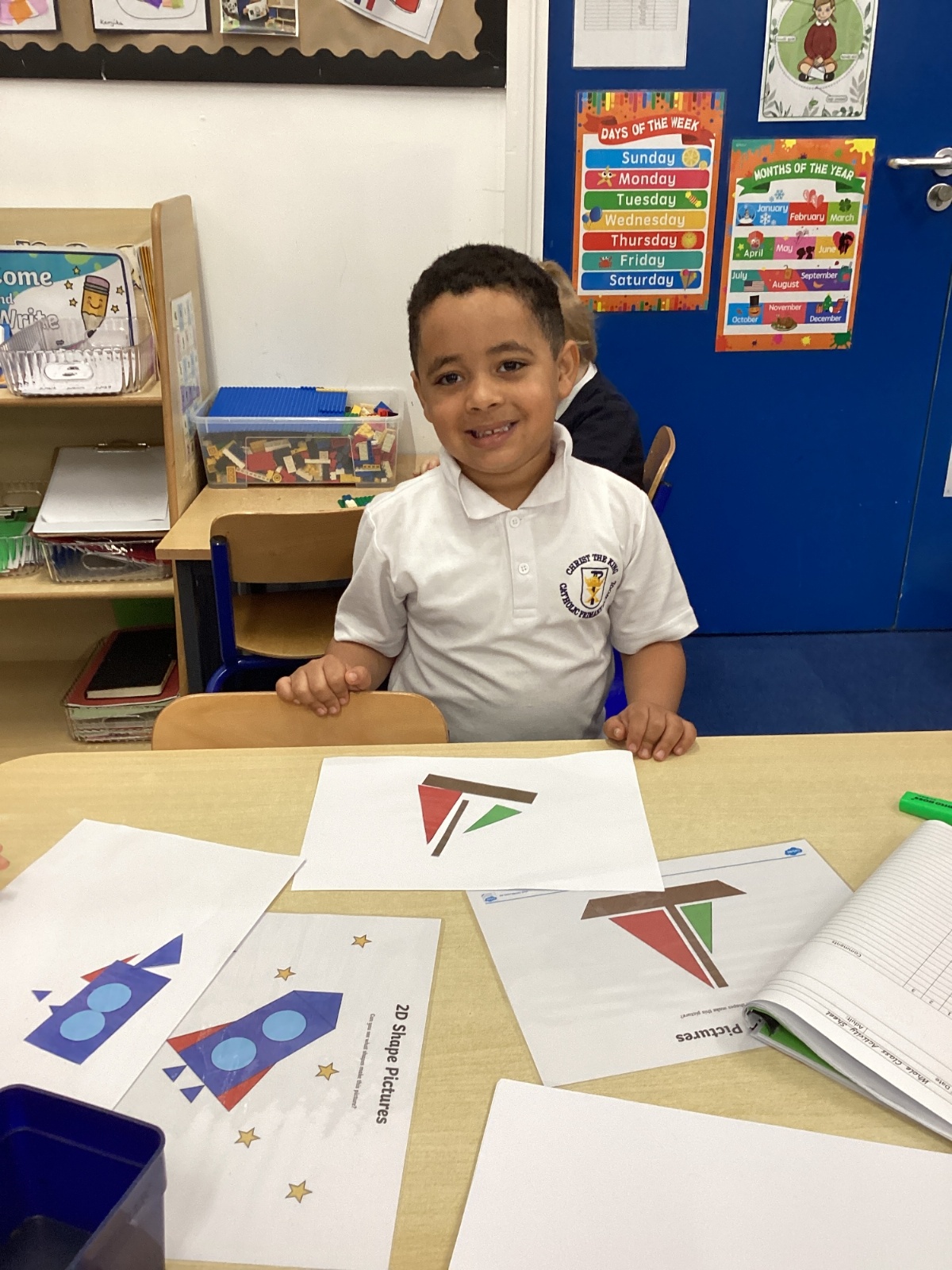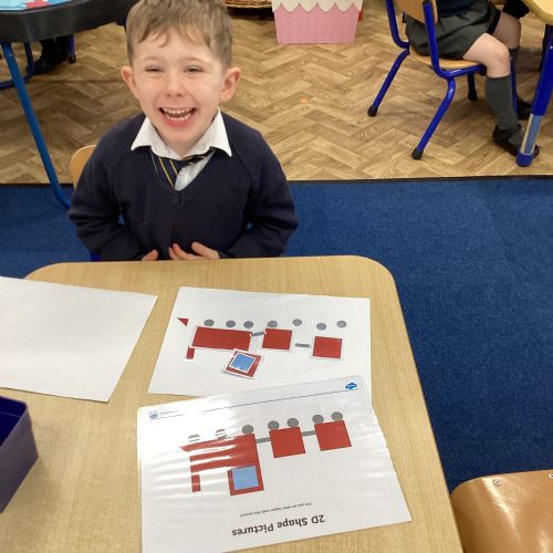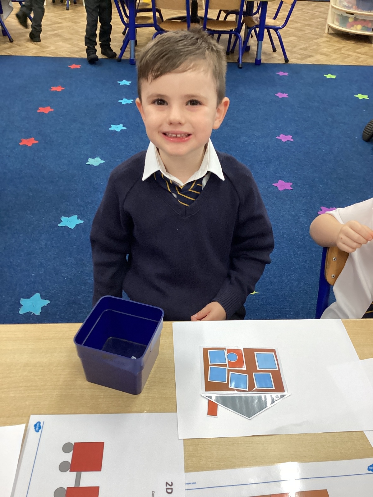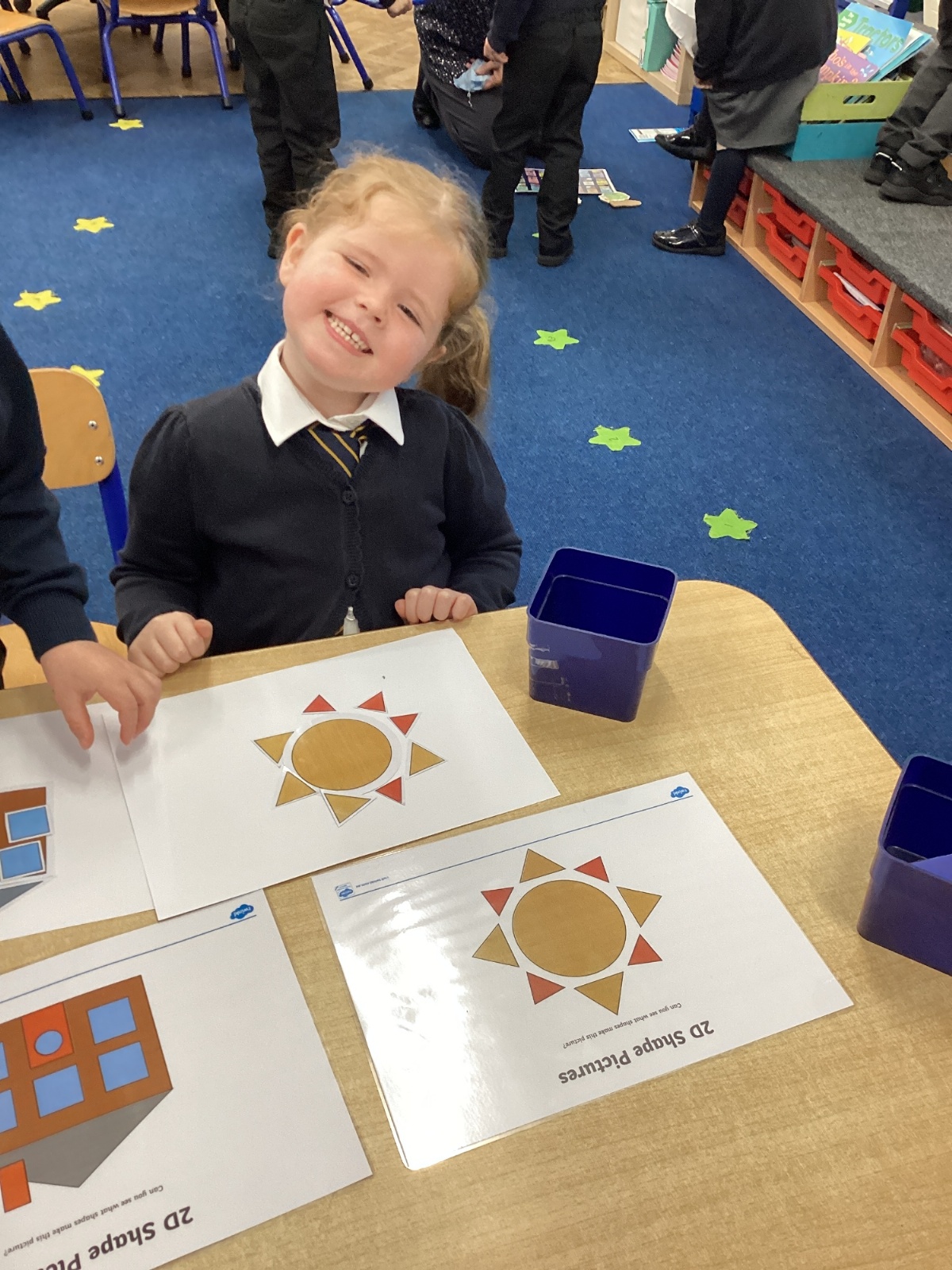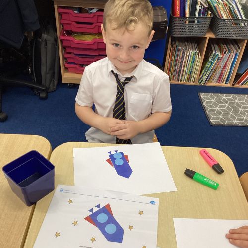 In Maths, we have been thinking about the properties of shapes. We used excellent observation skills and recreated our own shape pictures using 2D shapes.