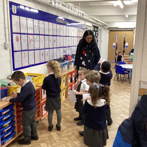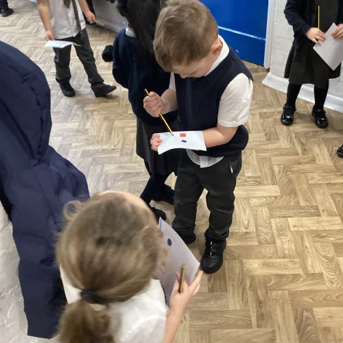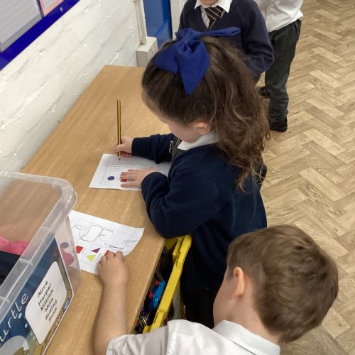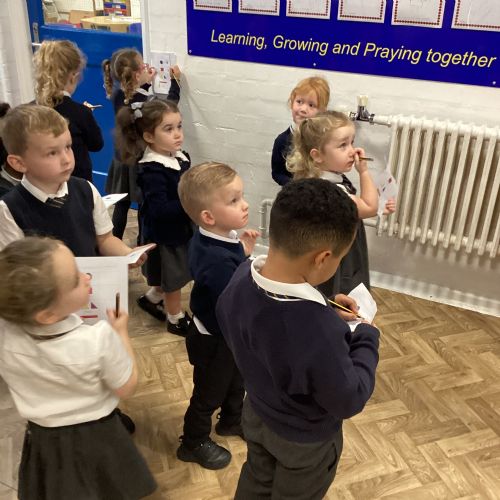 We went on a shape hunt around our school. We spotted lots of different shapes in our environment and marked them off on our shape tick list.