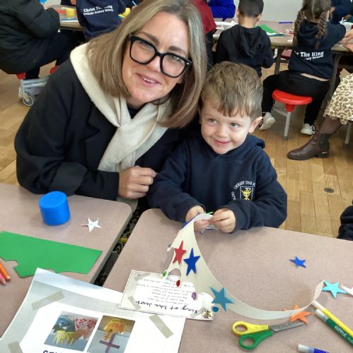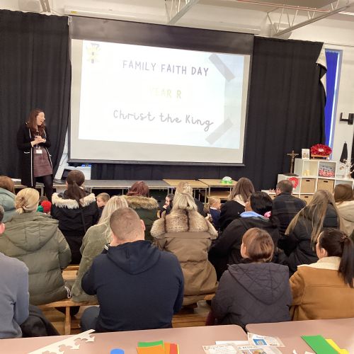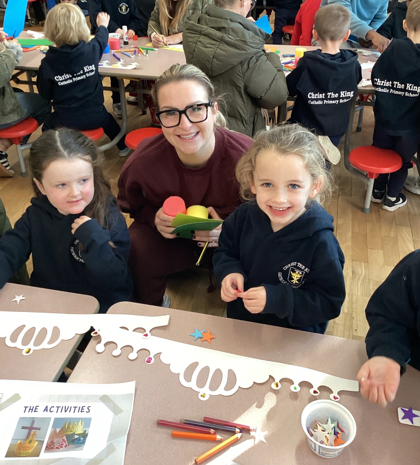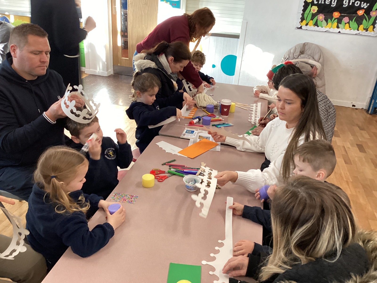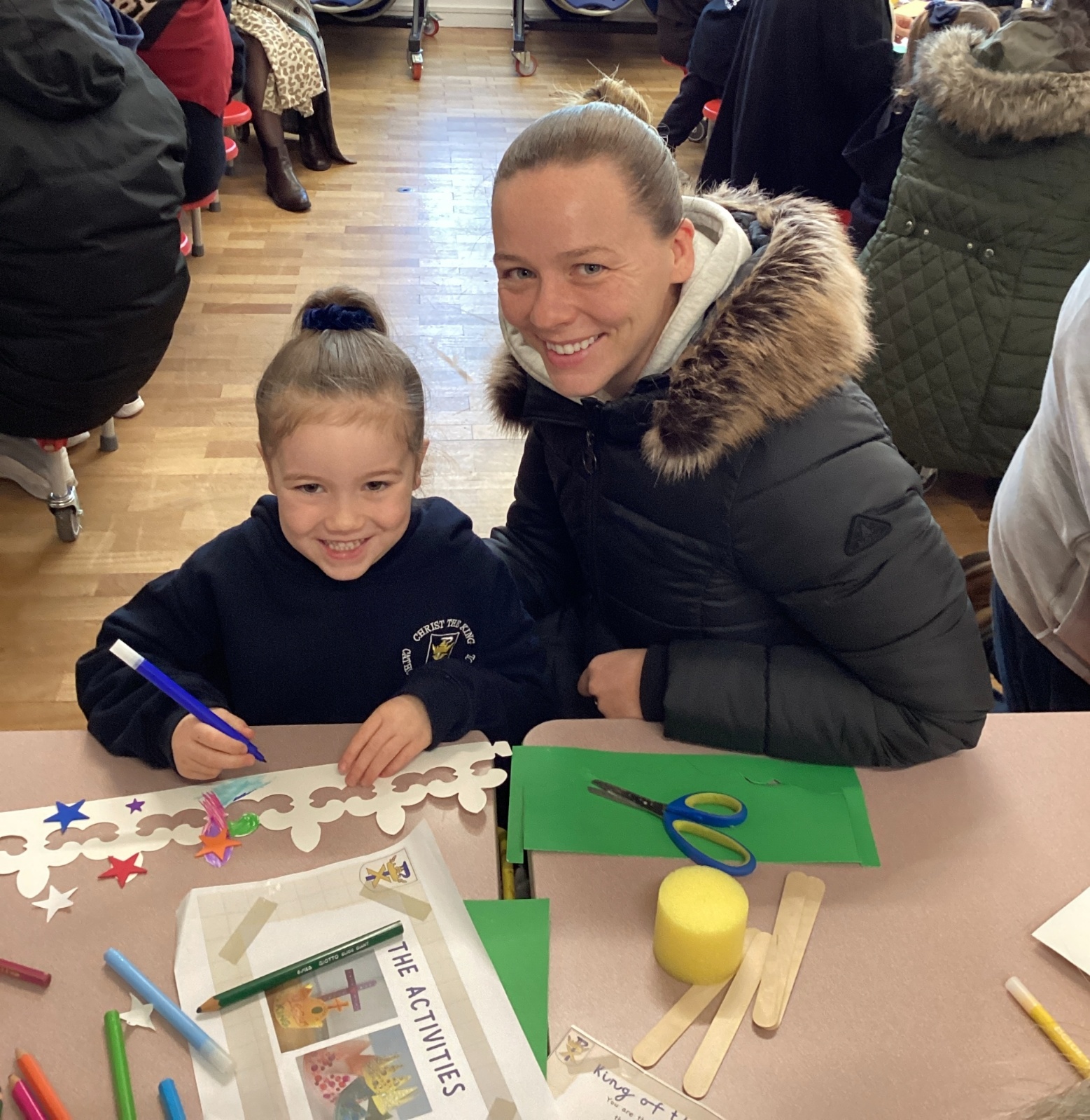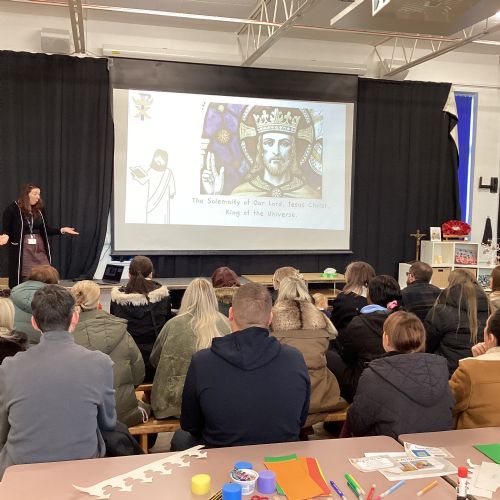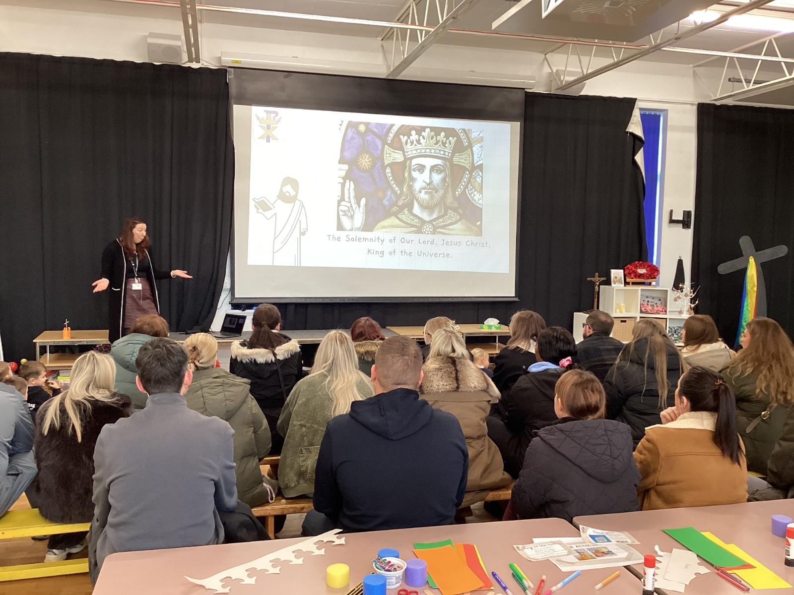 We invited our families in for a Family Faith Day. We celebrated the Feast of Christ the King and had a prayer time and reflection about Jesus as our King. We then made crowns and crown statues.
