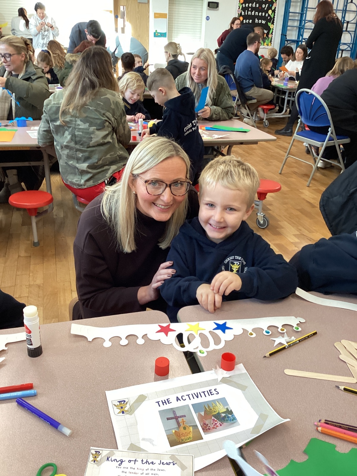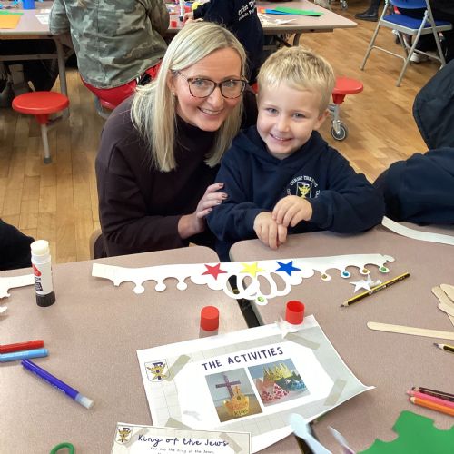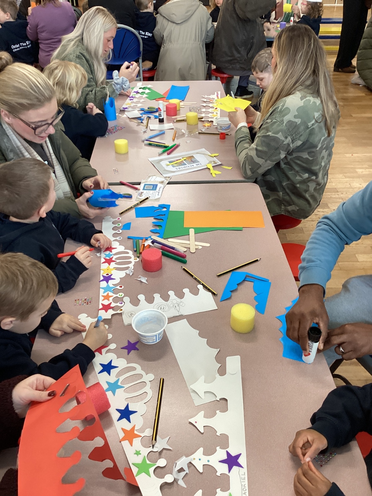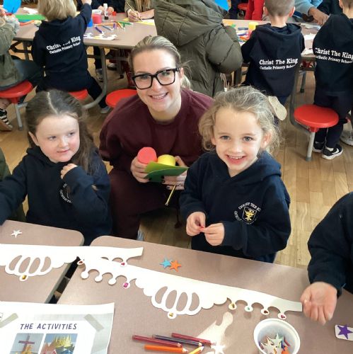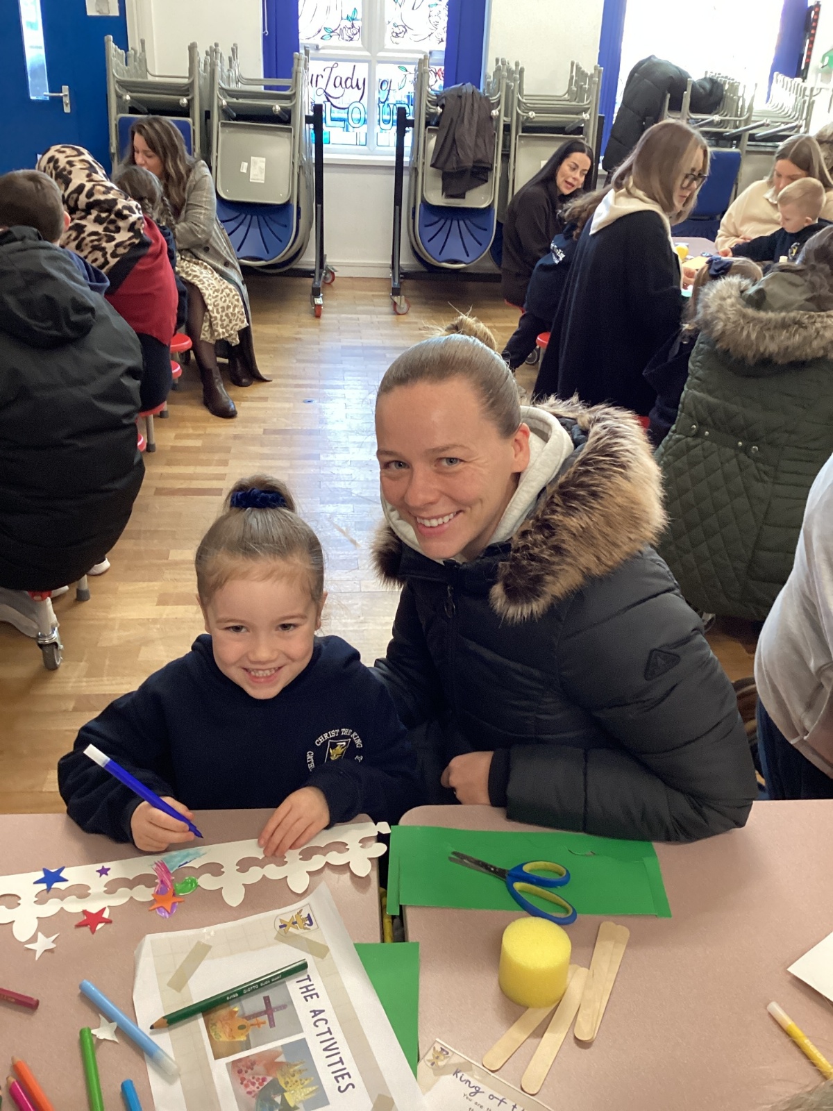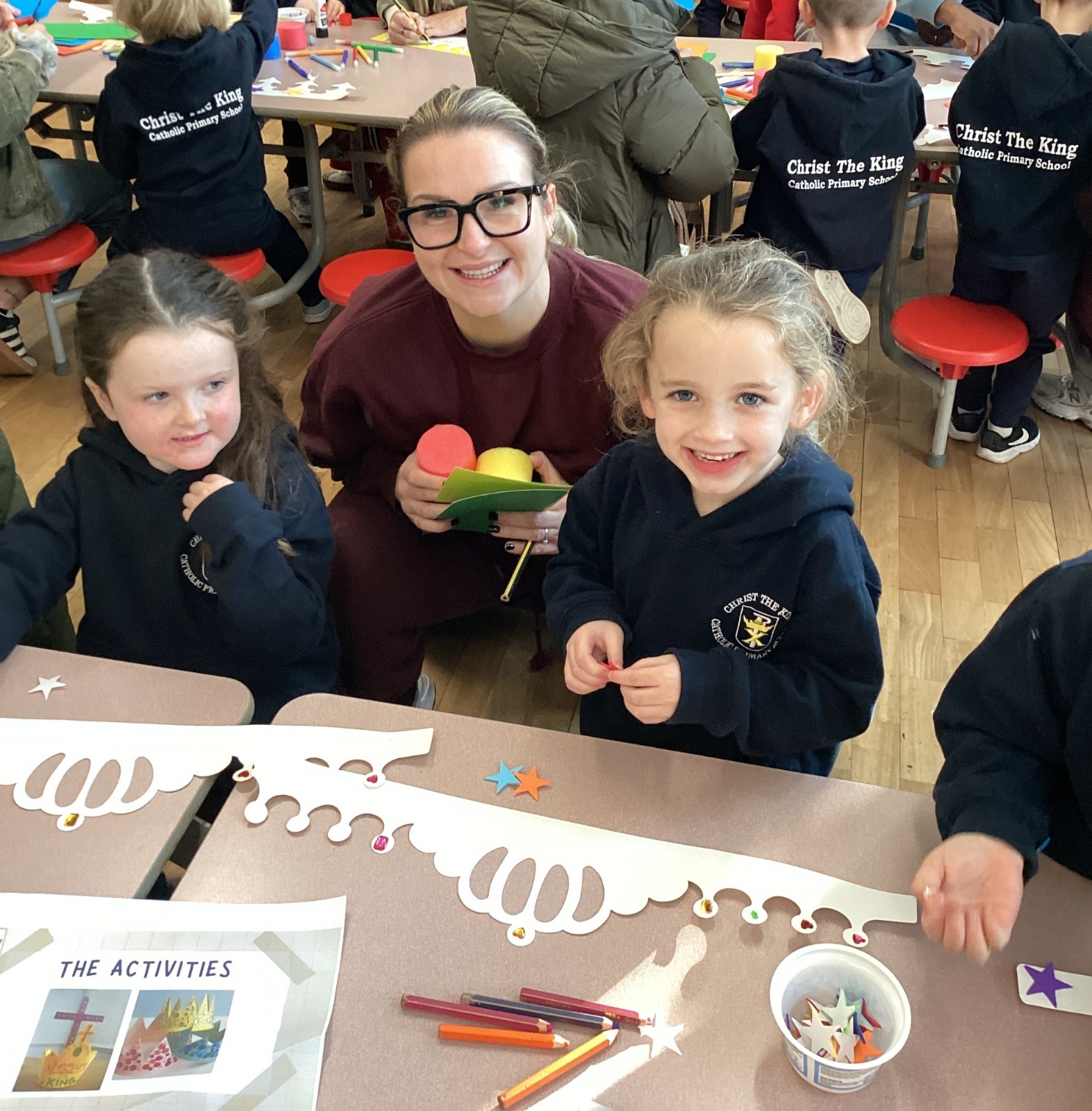 We invited our families in for a Family Faith Day. We celebrated the Feast of Christ the King and had a prayer time and reflection about Jesus as our King. We then made crowns and crown statues.