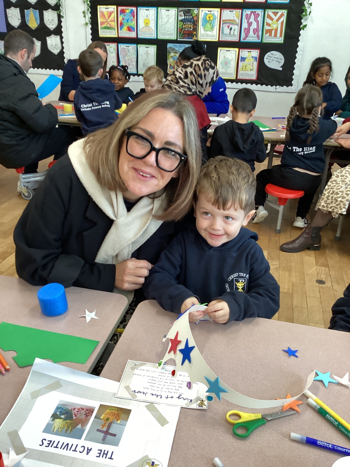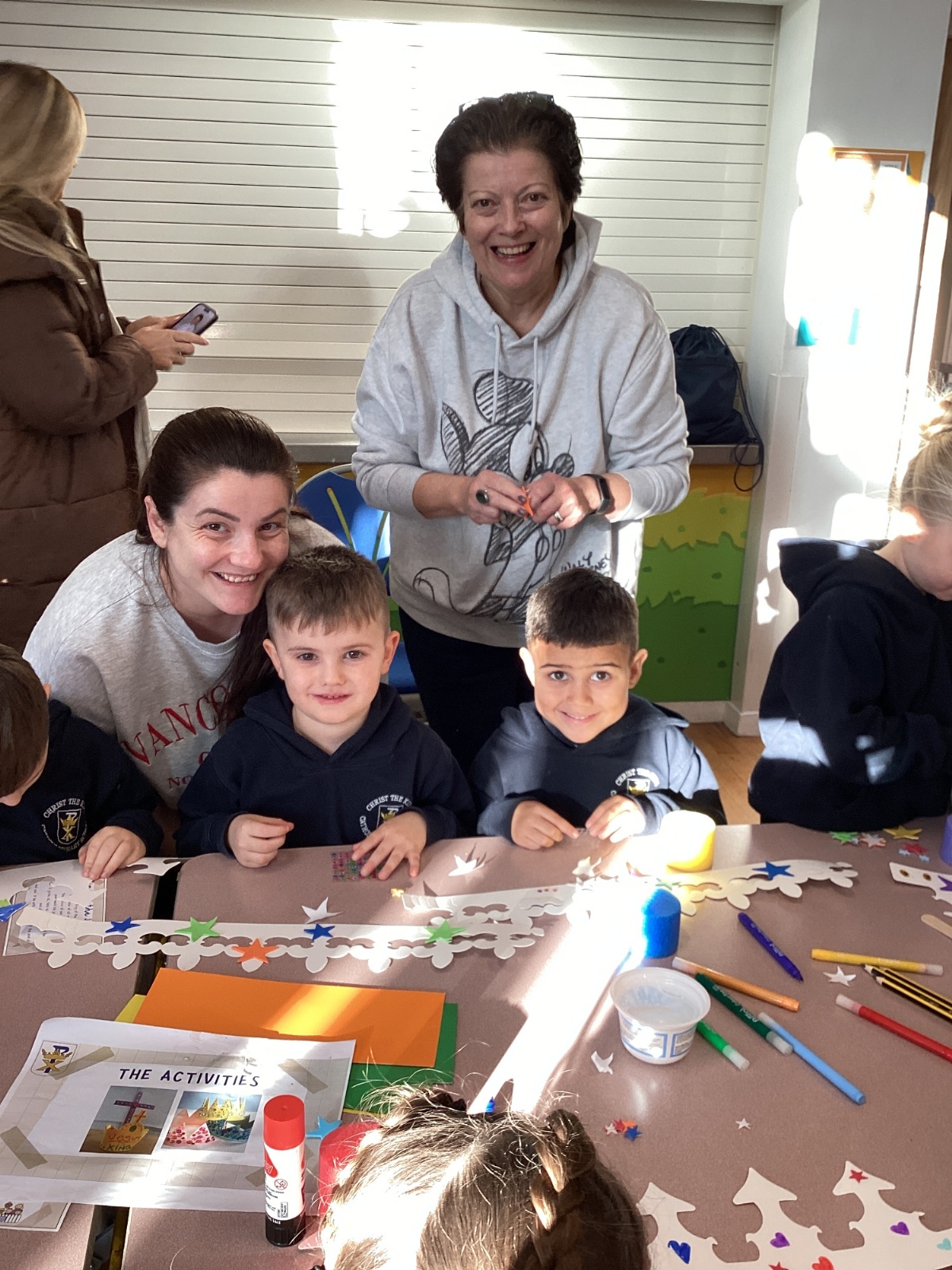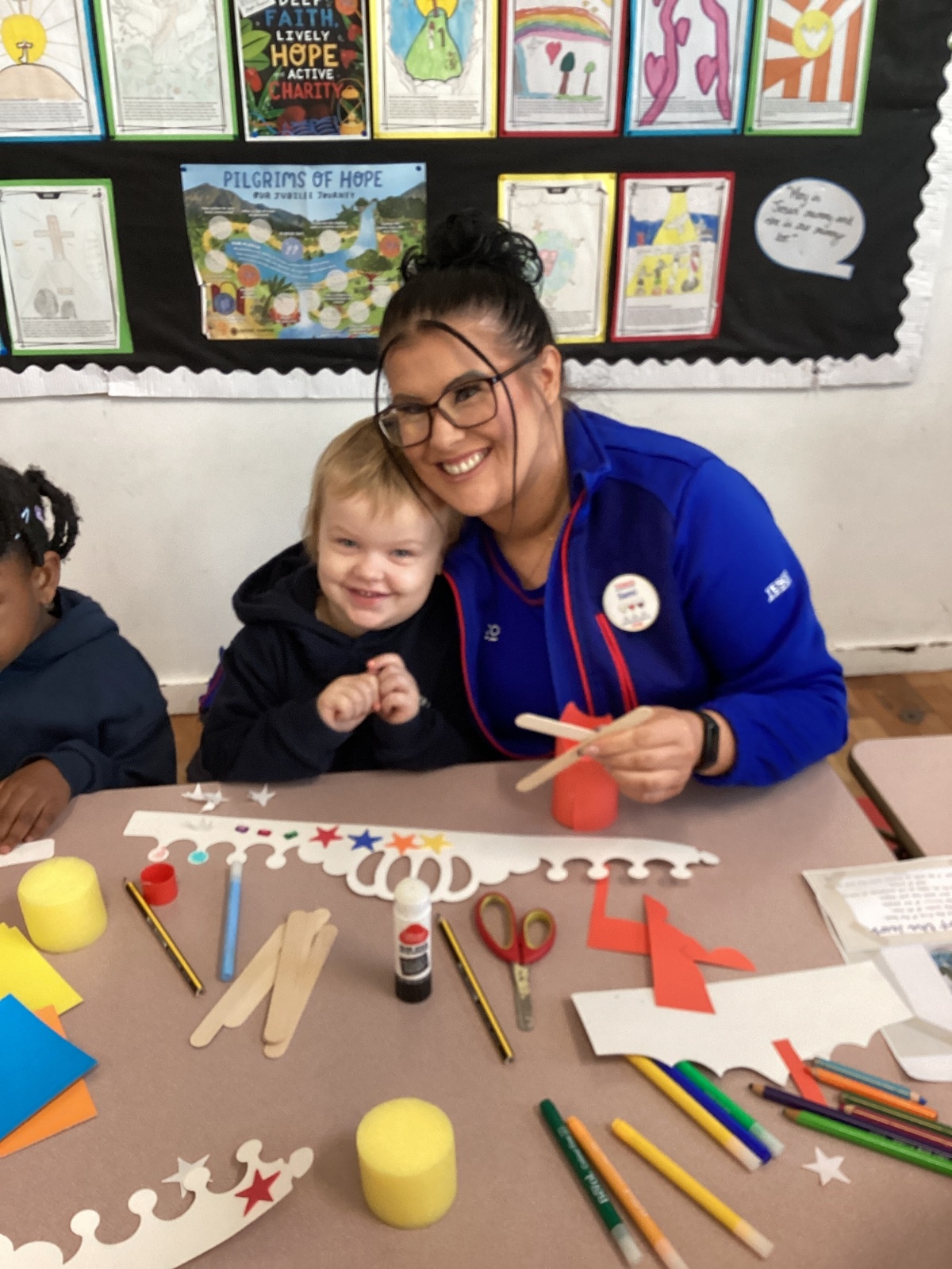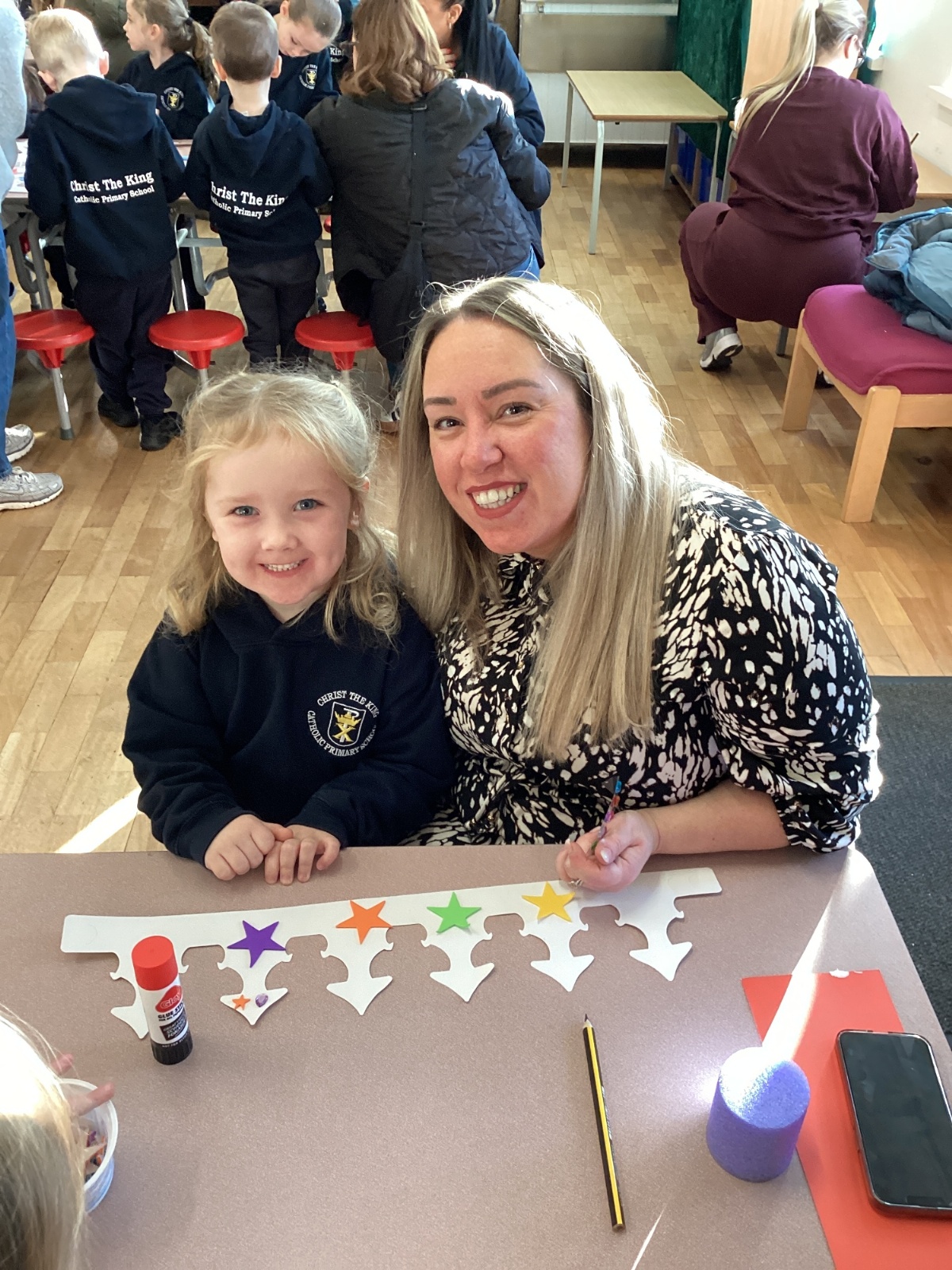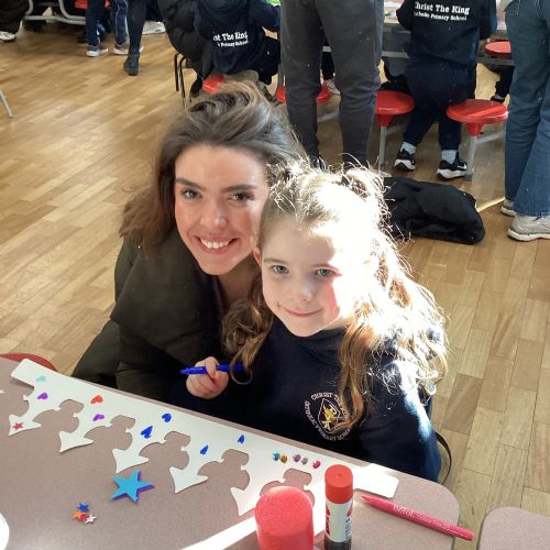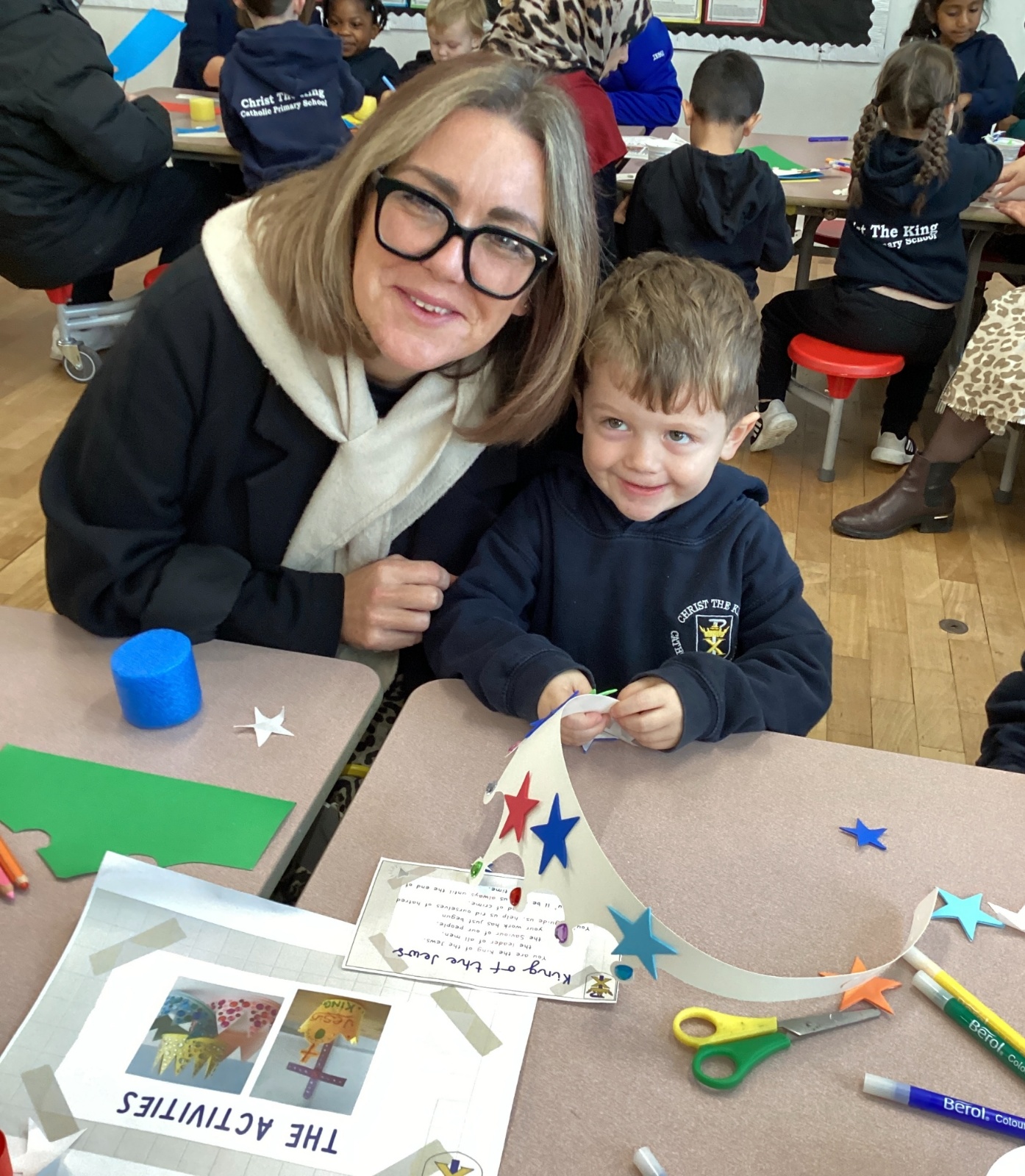 We invited our families in for a Family Faith Day. We celebrated the Feast of Christ the King and had a prayer time and reflection about Jesus as our King. We then made crowns and crown statues.